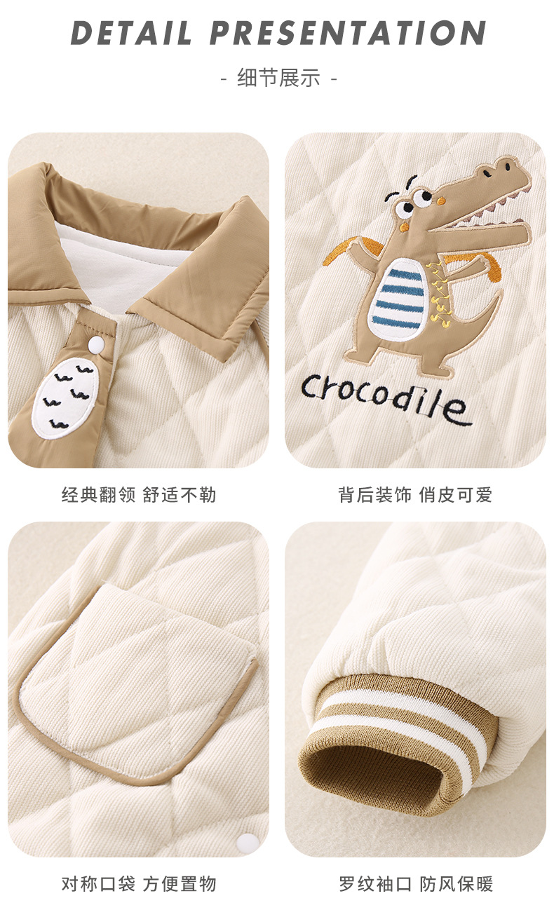 男宝宝秋冬外穿爬服儿童a类夹棉卡通恐龙连体衣婴儿衣服棉衣棉服