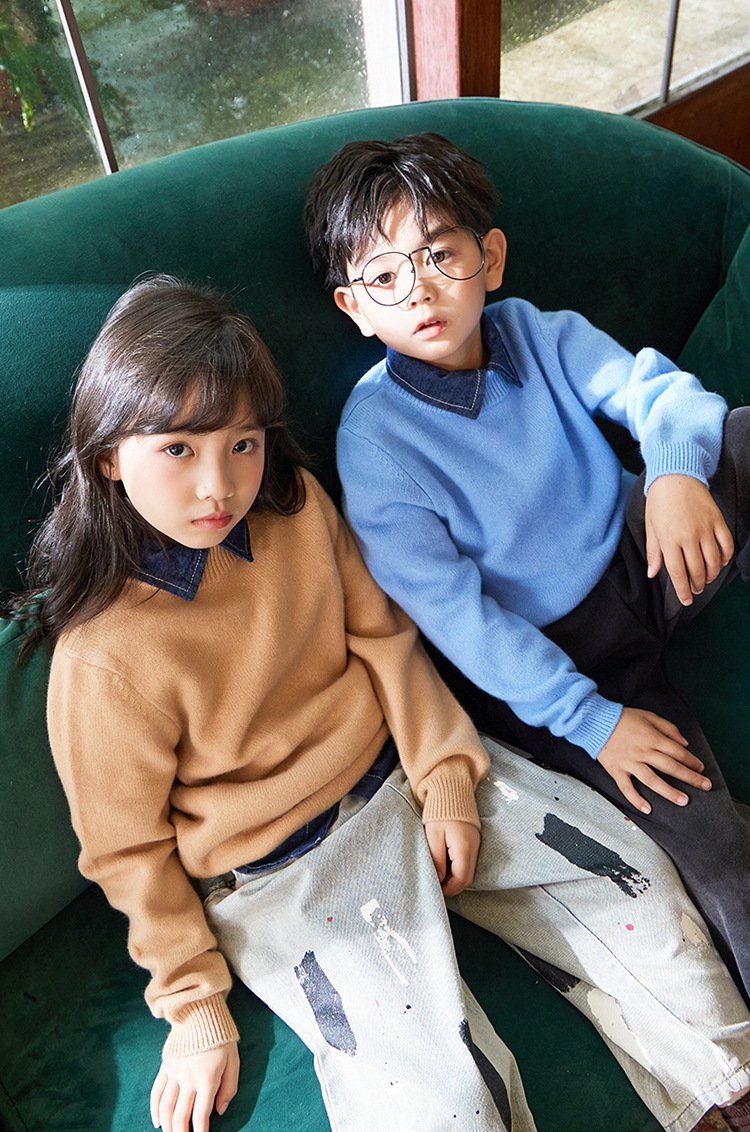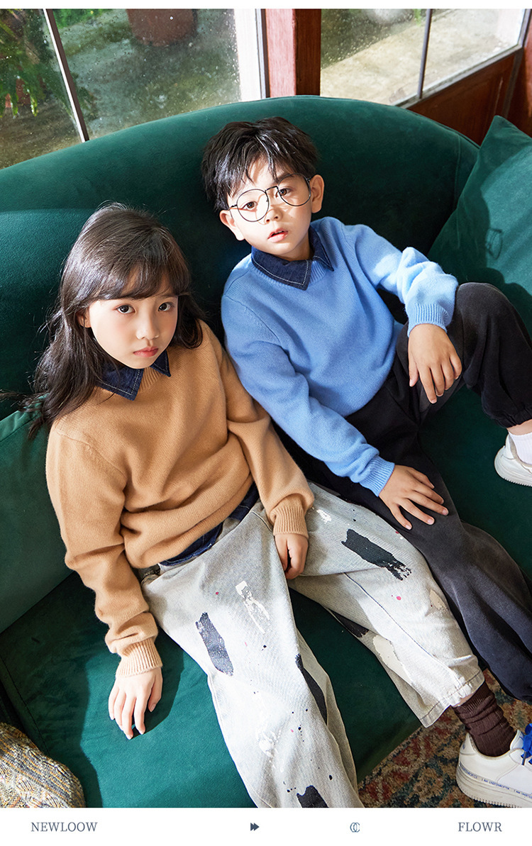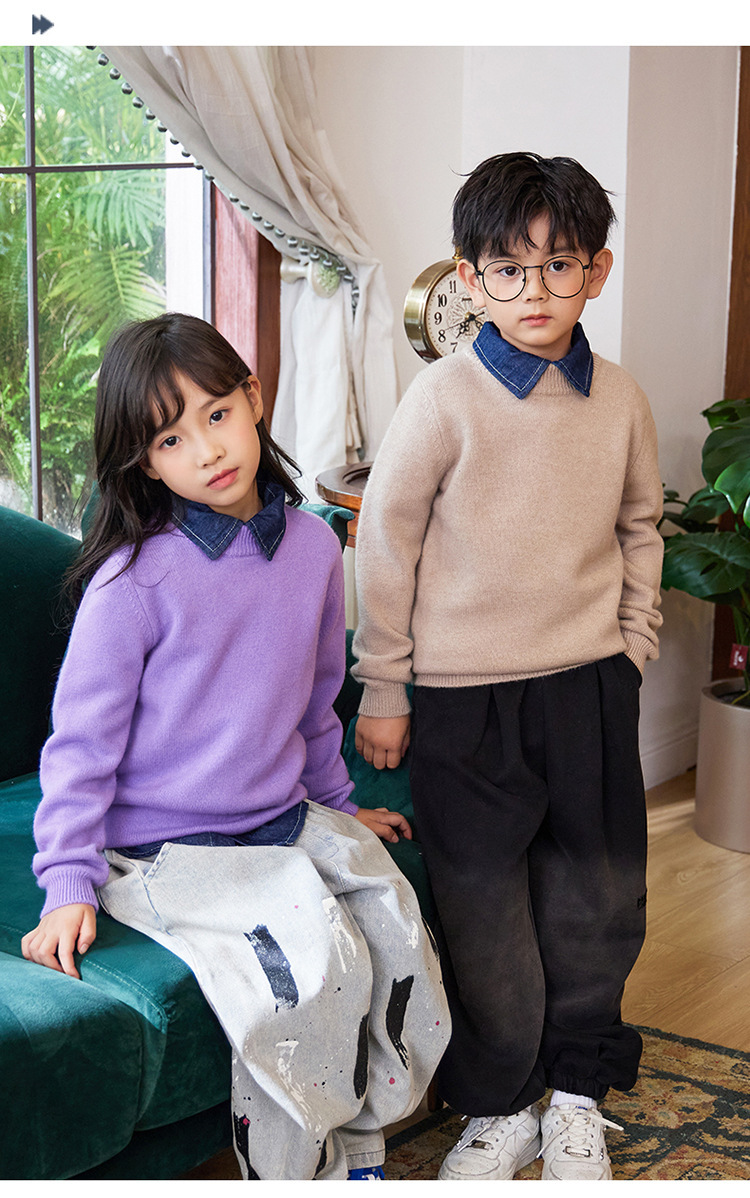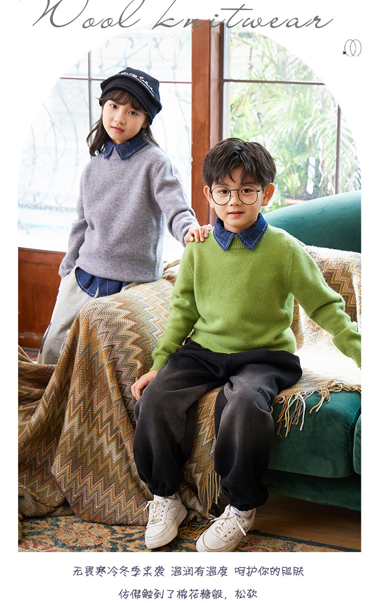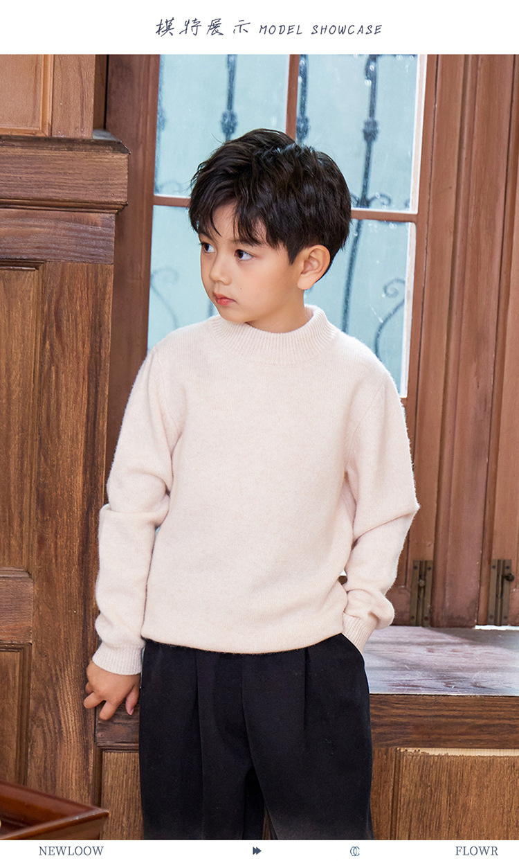 남학생과 여학생을위한 하이 퀄리티 어린이 순수 울 스웨터 아기의 중간 및 큰 어린이를위한 절반 높이 풀오버 베이스 스웨터스토어 가기
