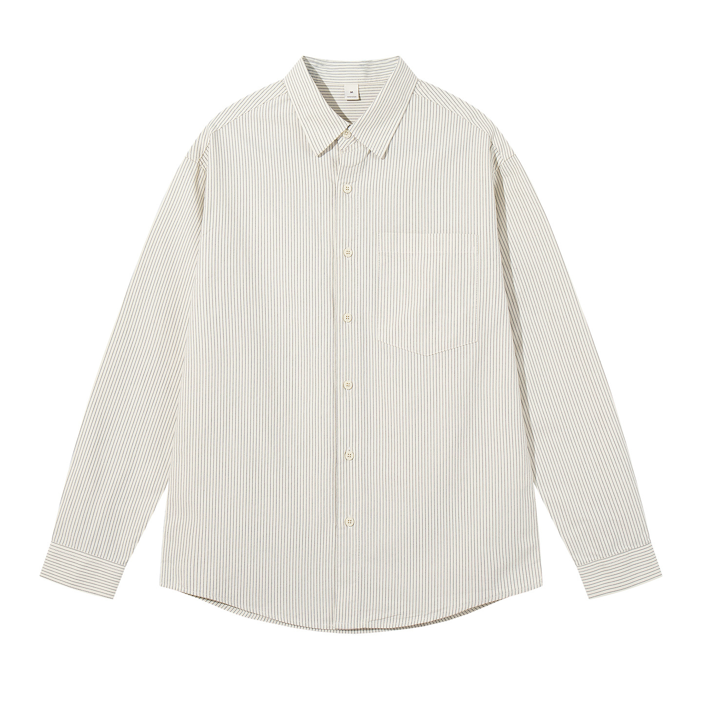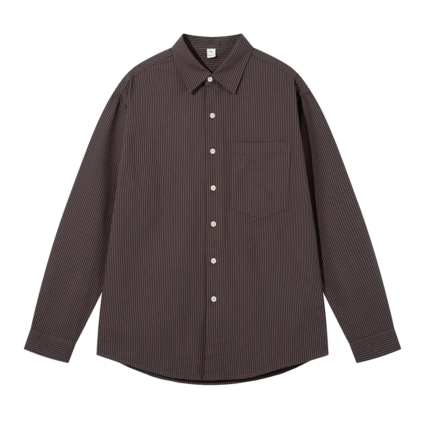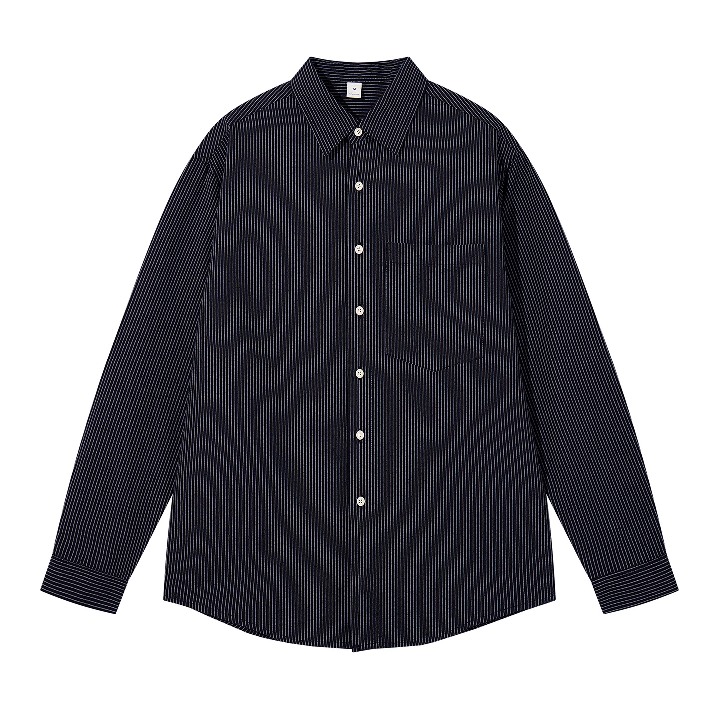 마이 갈렌 간단한 핀스트라이프 포켓 셔츠 남자 긴팔 캐주얼 가을 일본 느슨한 남자 셔츠