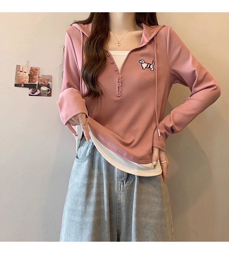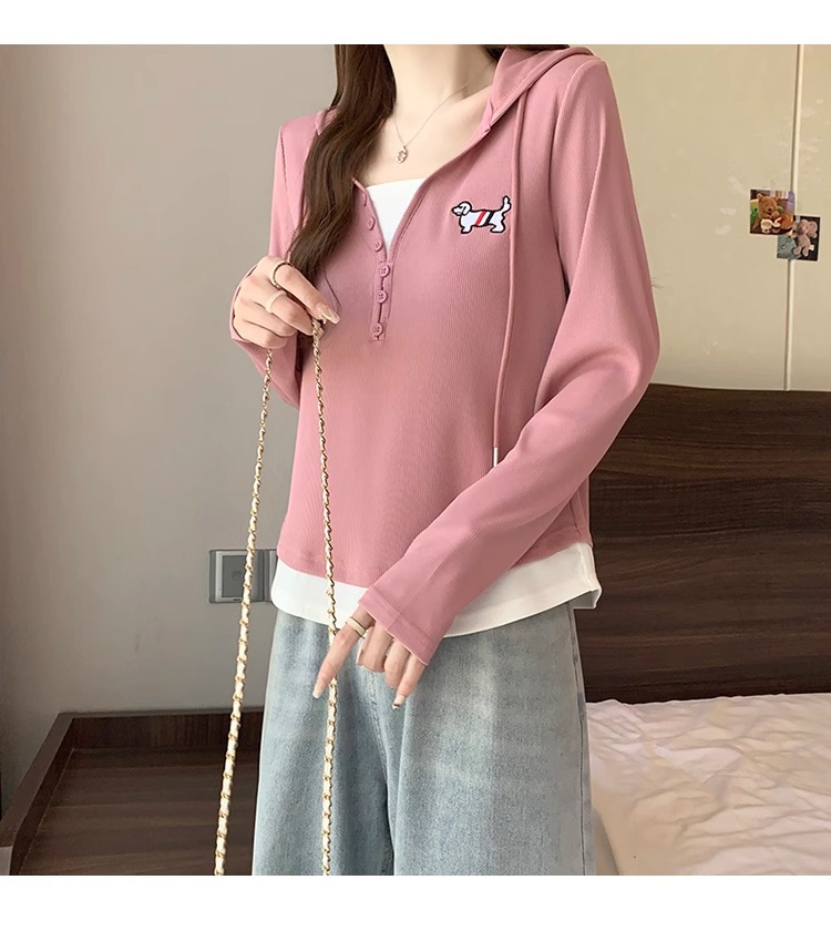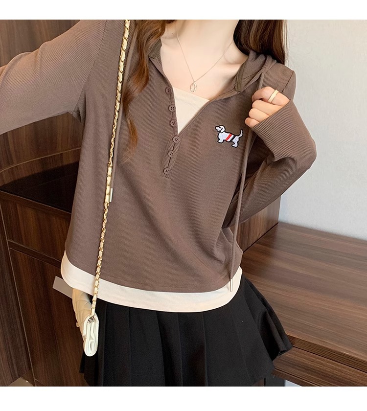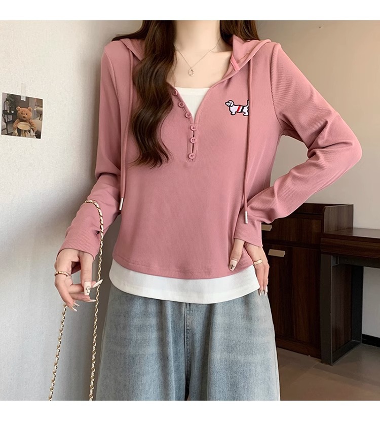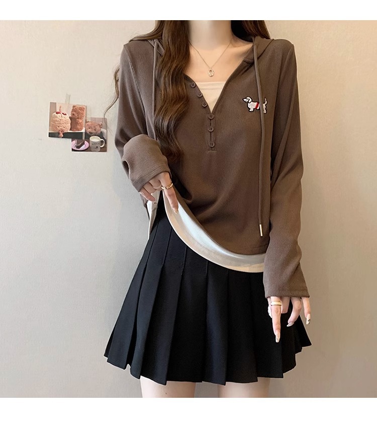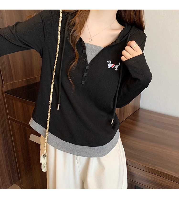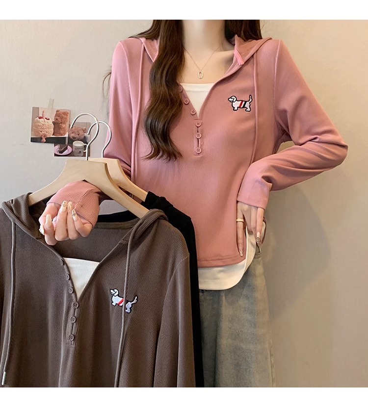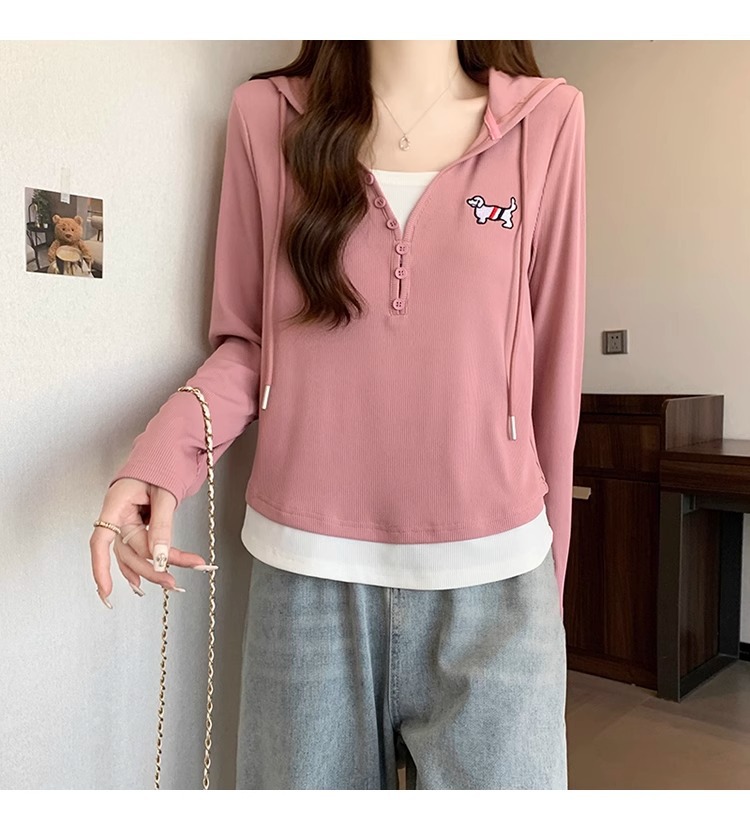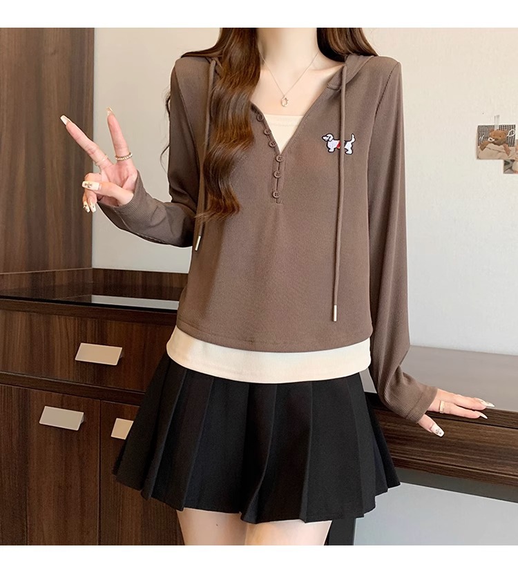 가짜 투피스 후드 긴팔 티셔츠 여성용 가을 플러스 사이즈 통통녀 세련된 작은 셔츠 슬림 불규칙한 스웨터 1.00 kg-150.00 kg스토어 가기