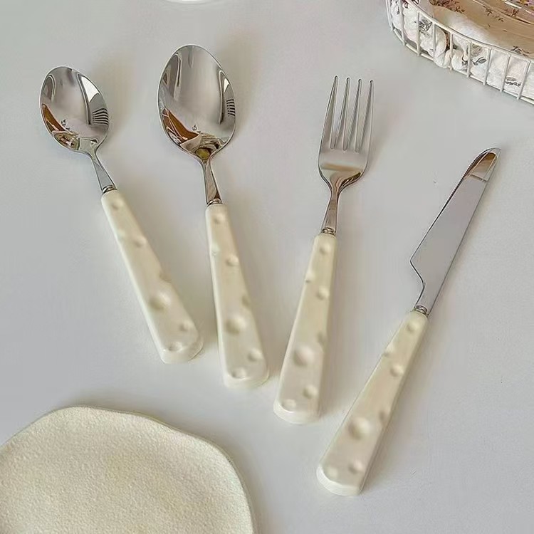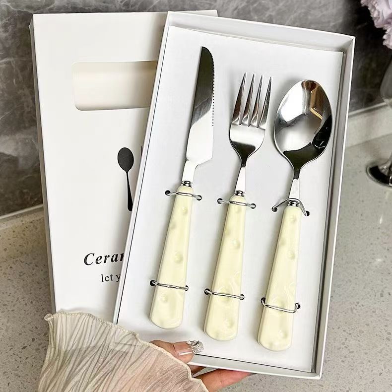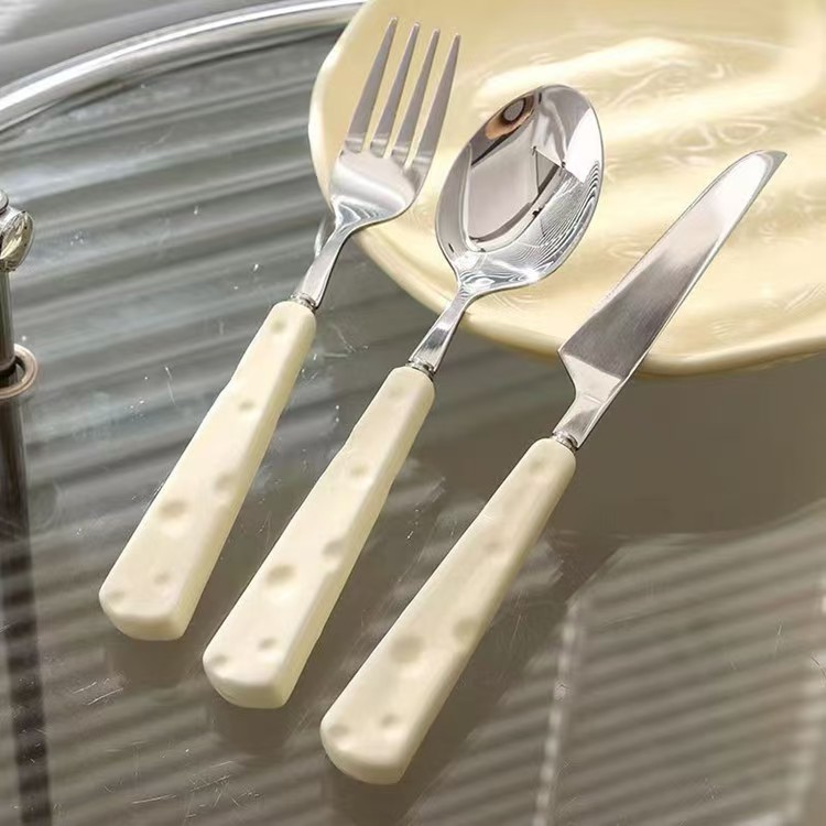 Ins 치즈 스푼 포크 젓가락 3 종 세트 학생 어린이 휴대용 식기 웨스턴 스테이크 나이프, 포크 및 스푼 세트