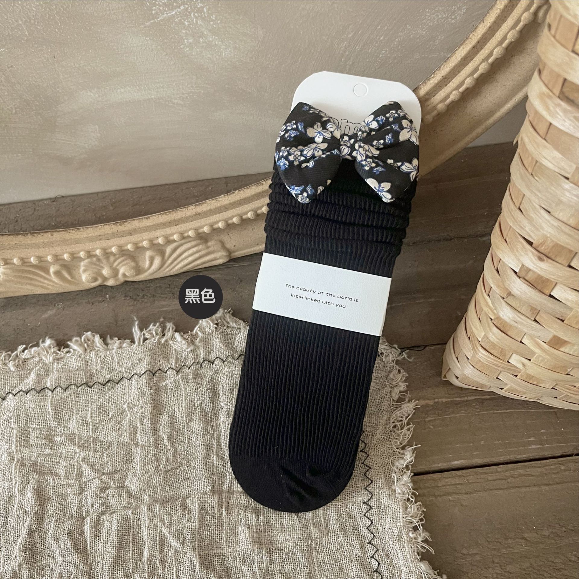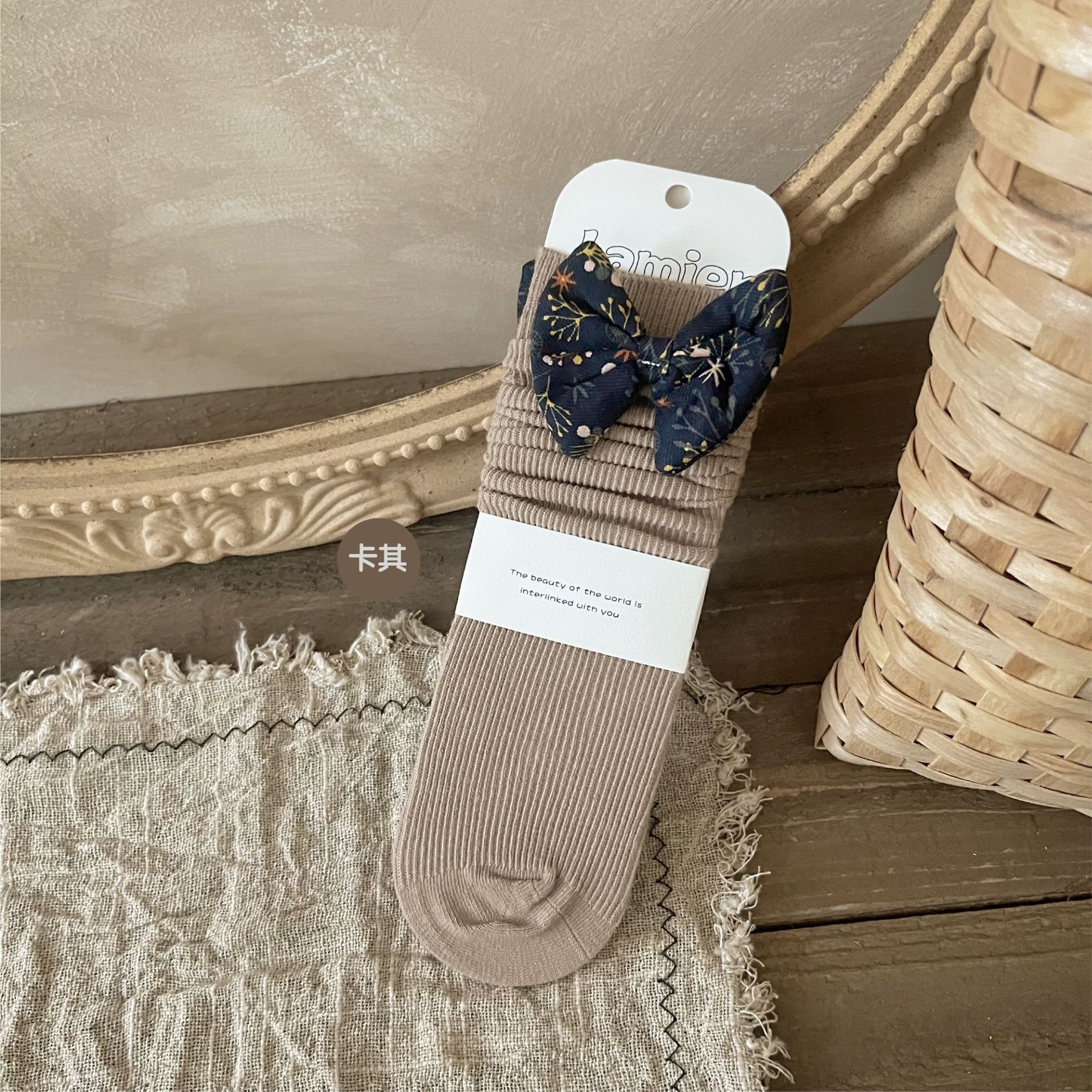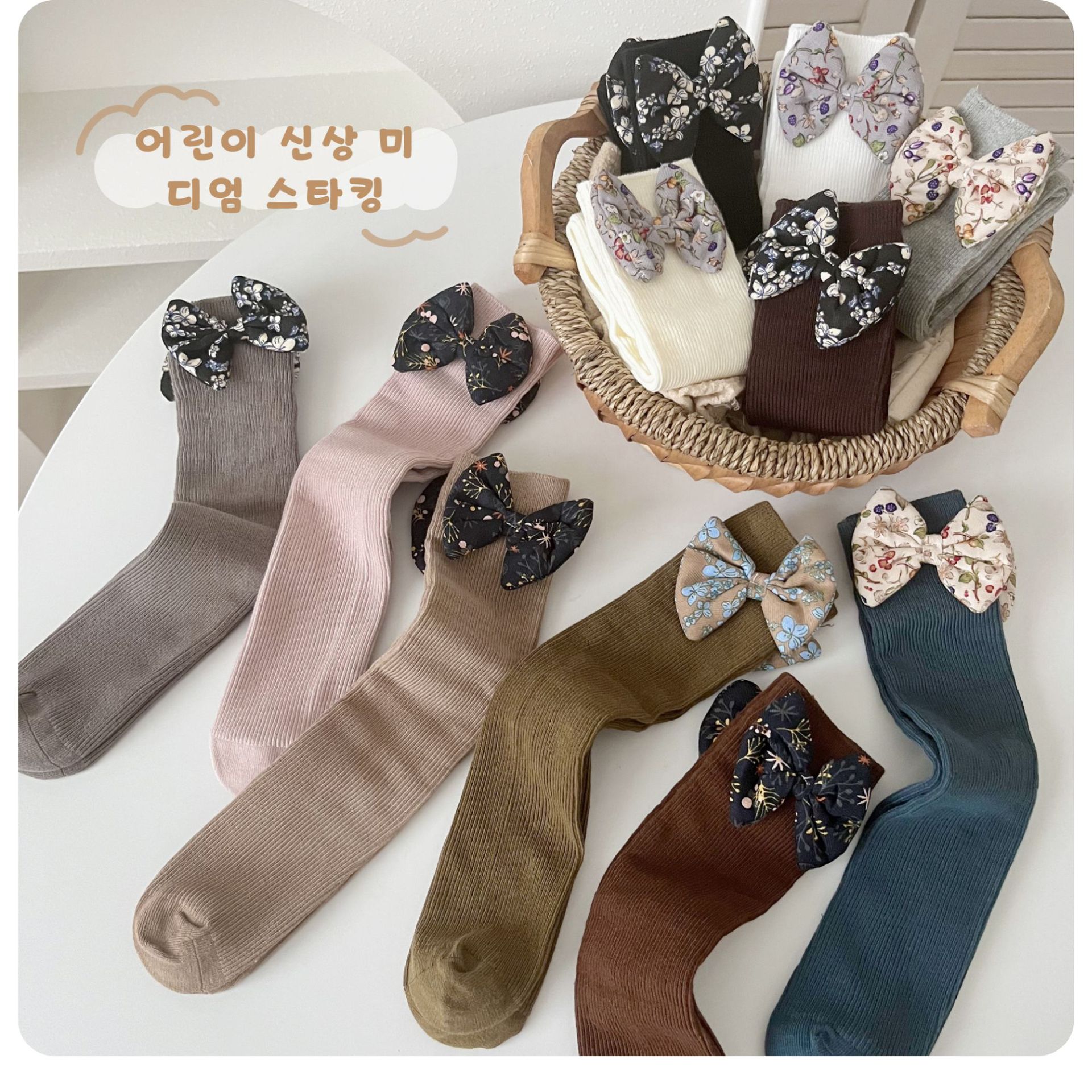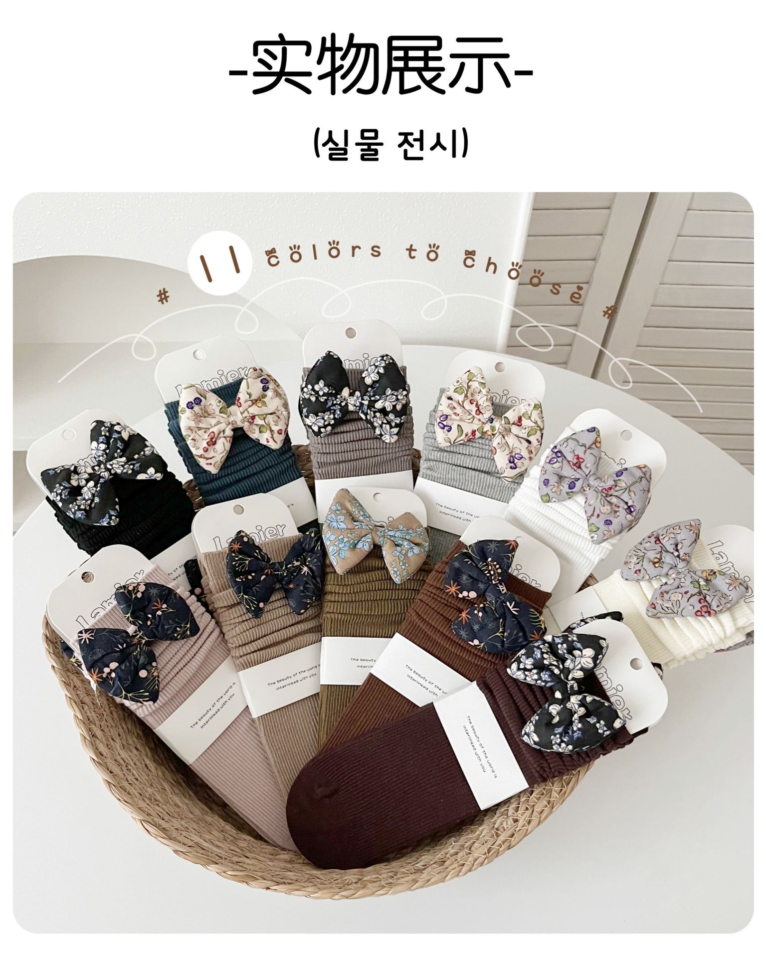 24 가을 새로운 어린이 양말 아기 일본 활 빗질면 튜브 양말 공주 바람 더미 양말스토어 가기