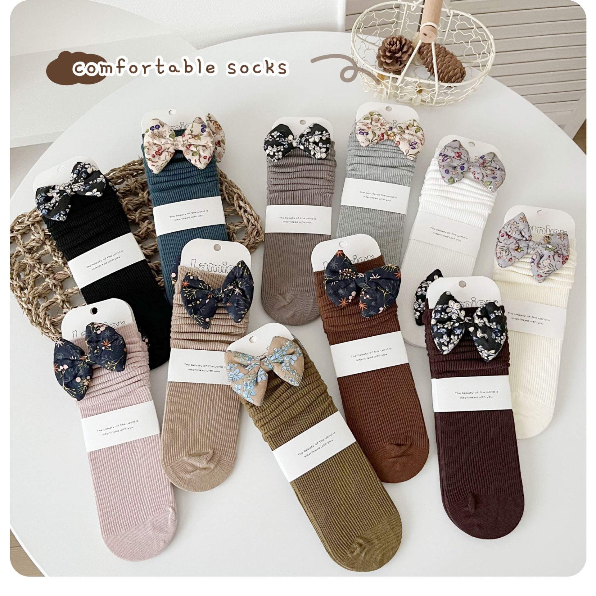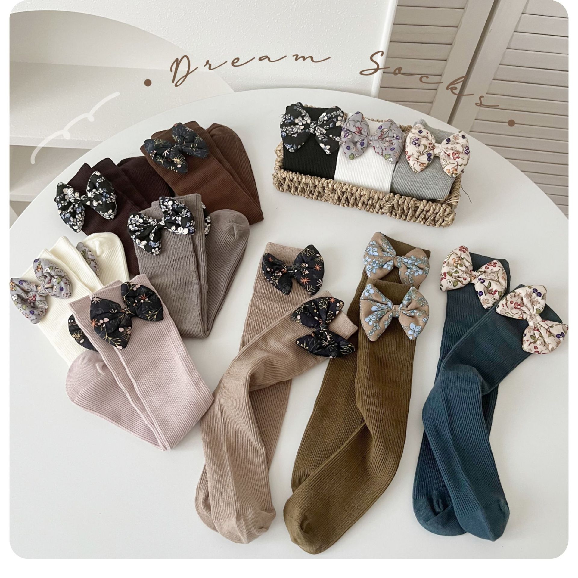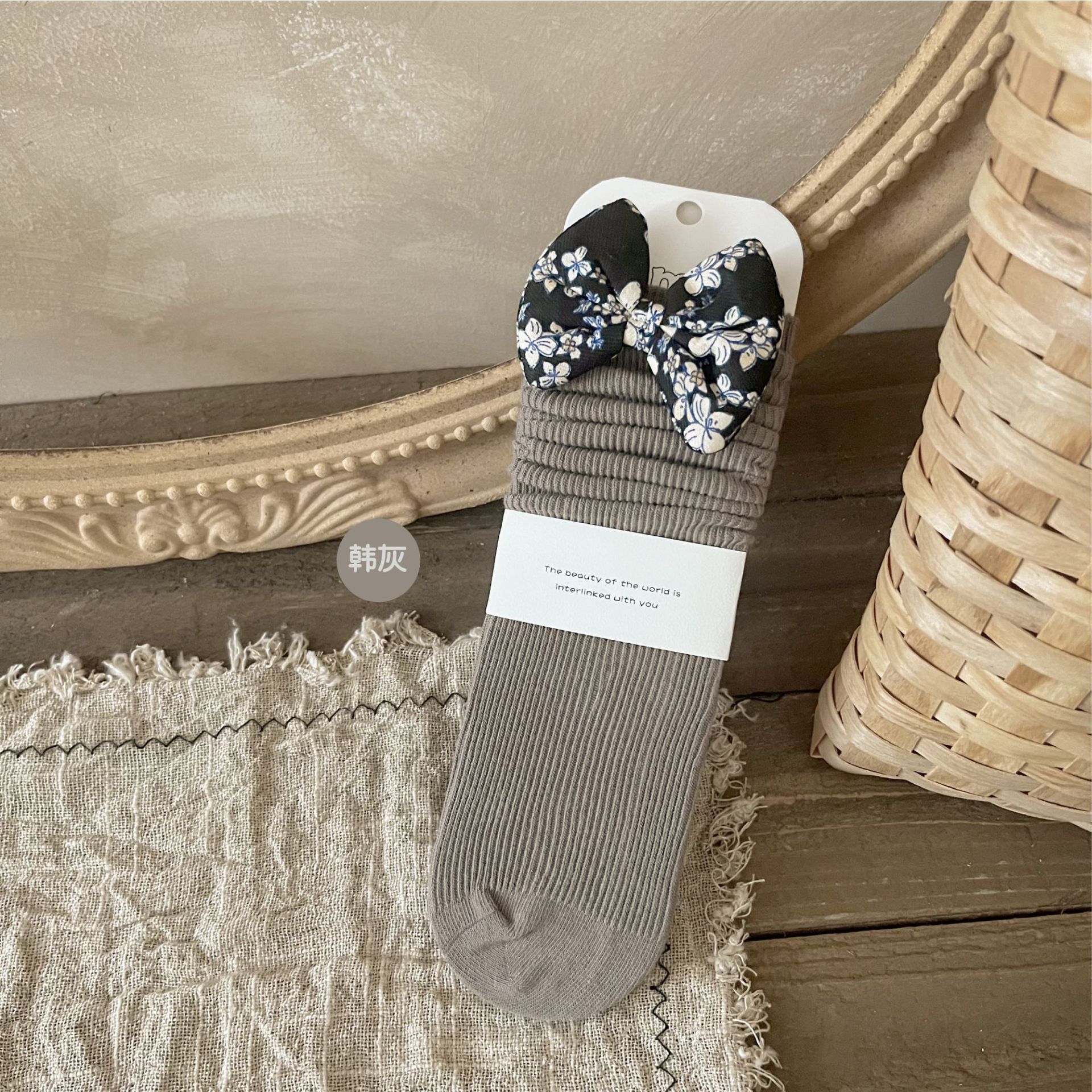 24 가을 새로운 어린이 양말 아기 일본 활 빗질면 튜브 양말 공주 바람 더미 양말스토어 가기