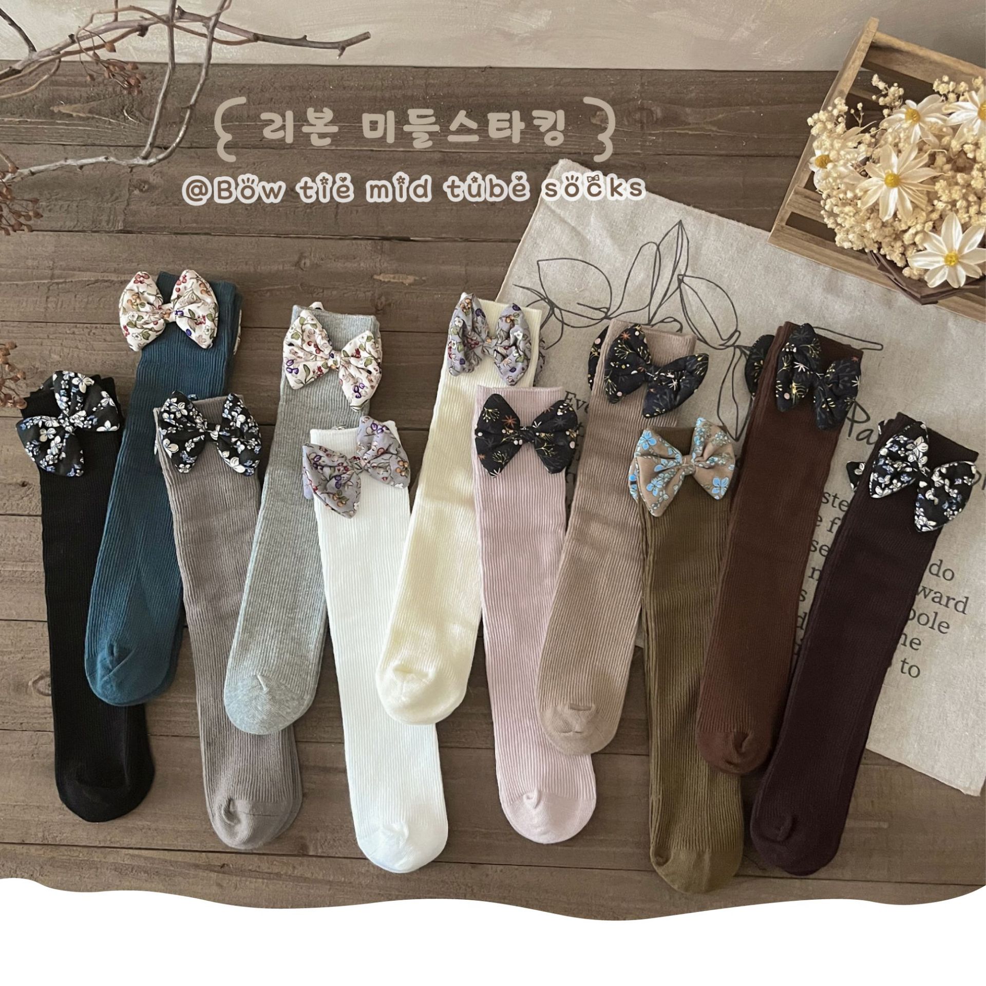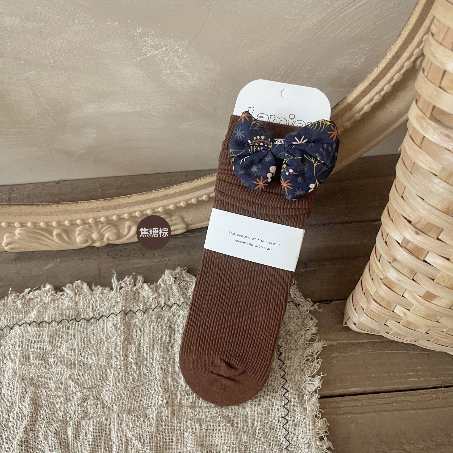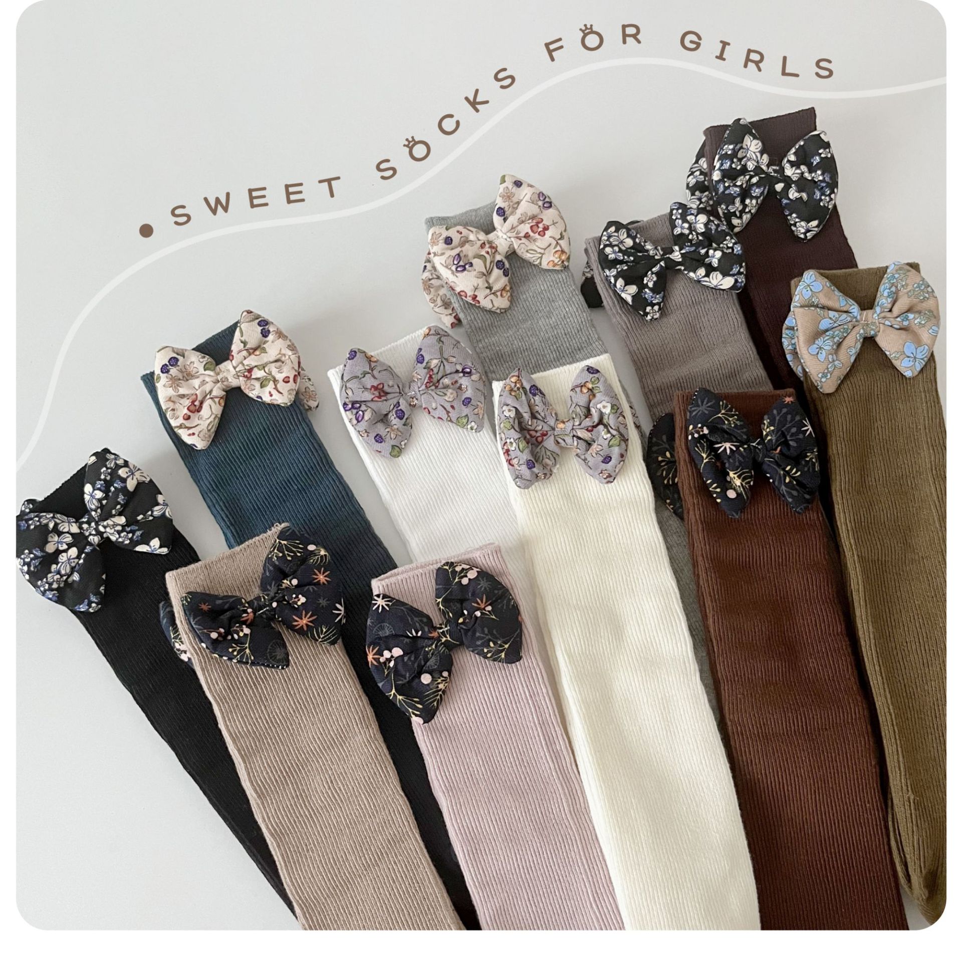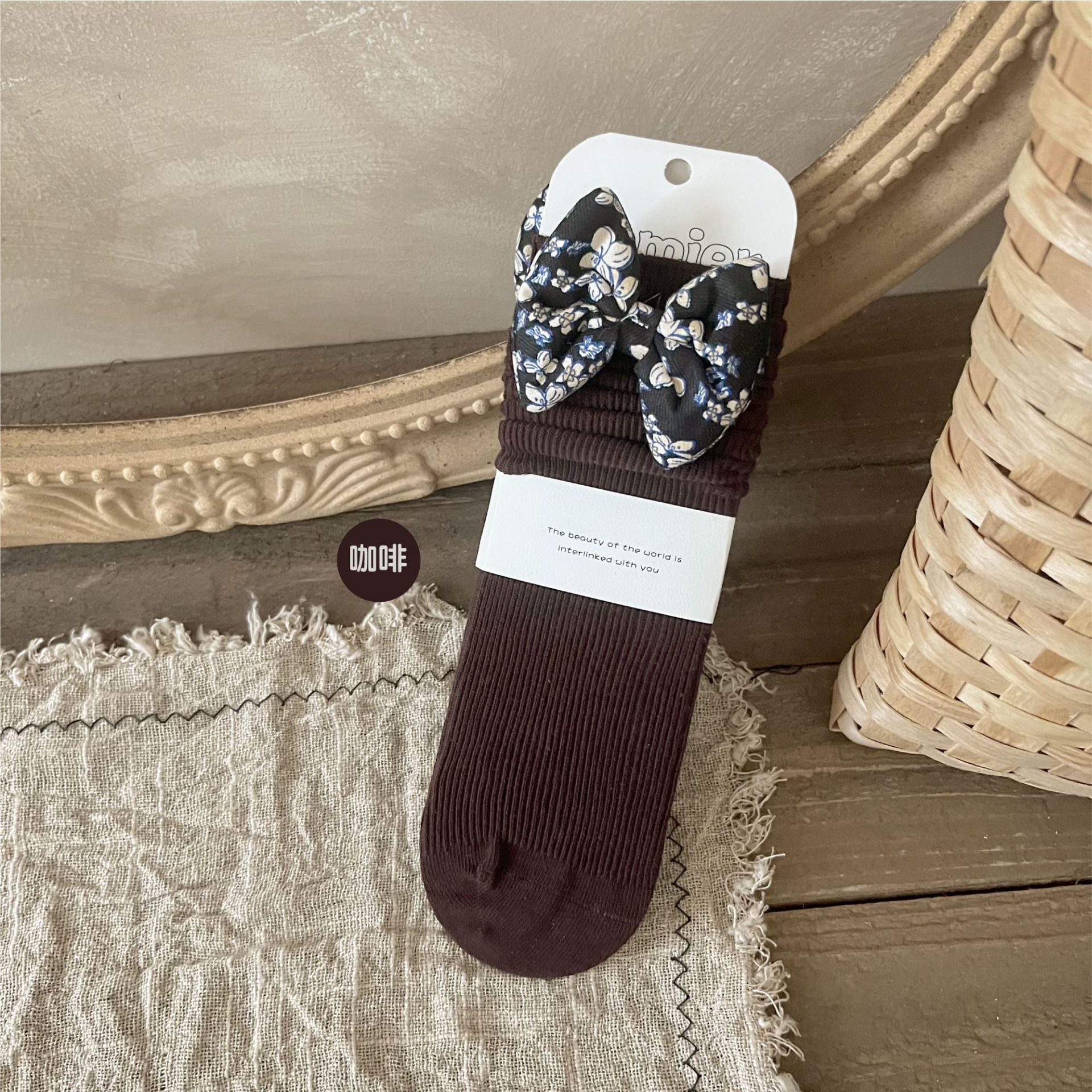 24 가을 새로운 어린이 양말 아기 일본 활 빗질면 튜브 양말 공주 바람 더미 양말스토어 가기