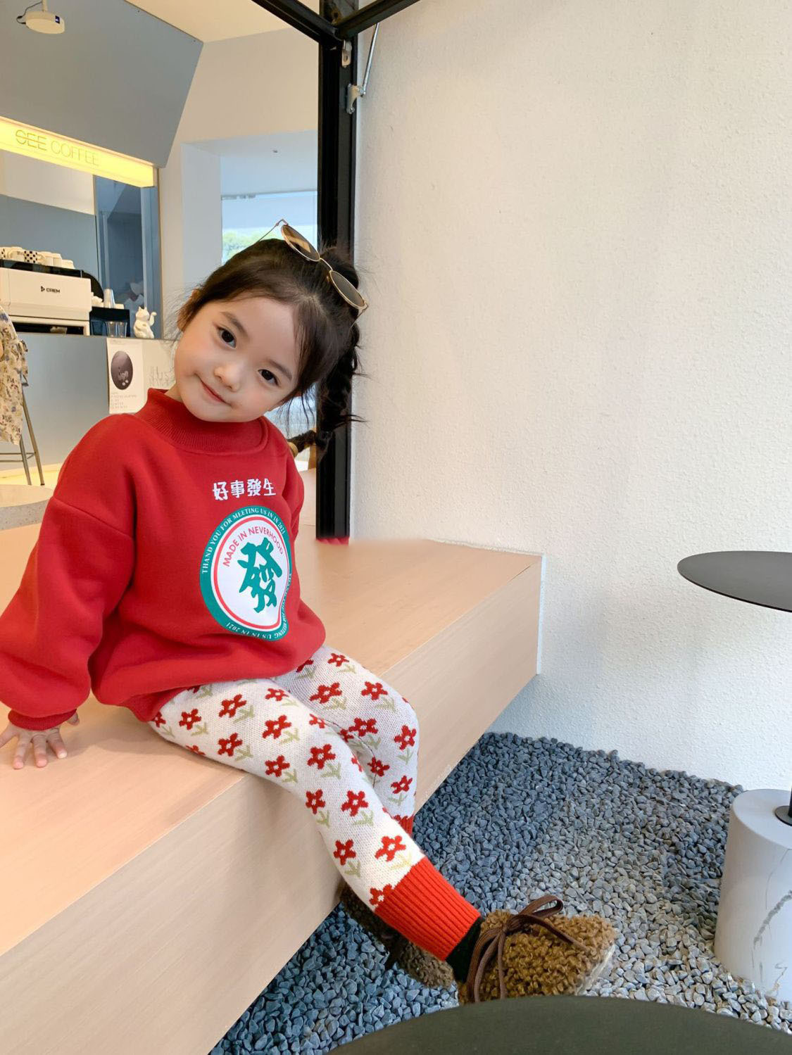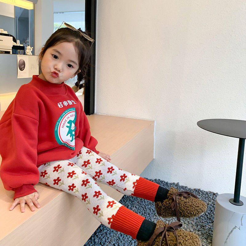 모리 아동복 소녀 니트 두꺼운 레깅스 외형 꽃 봄 및 가을 새로운 큰 Pp 서양식 어린이 울 바지