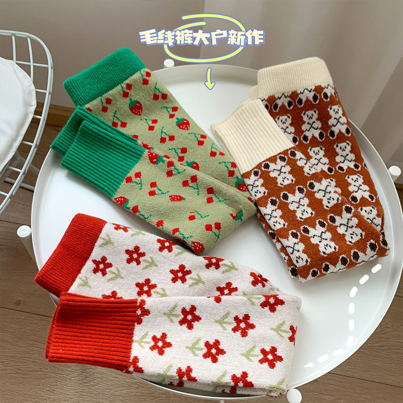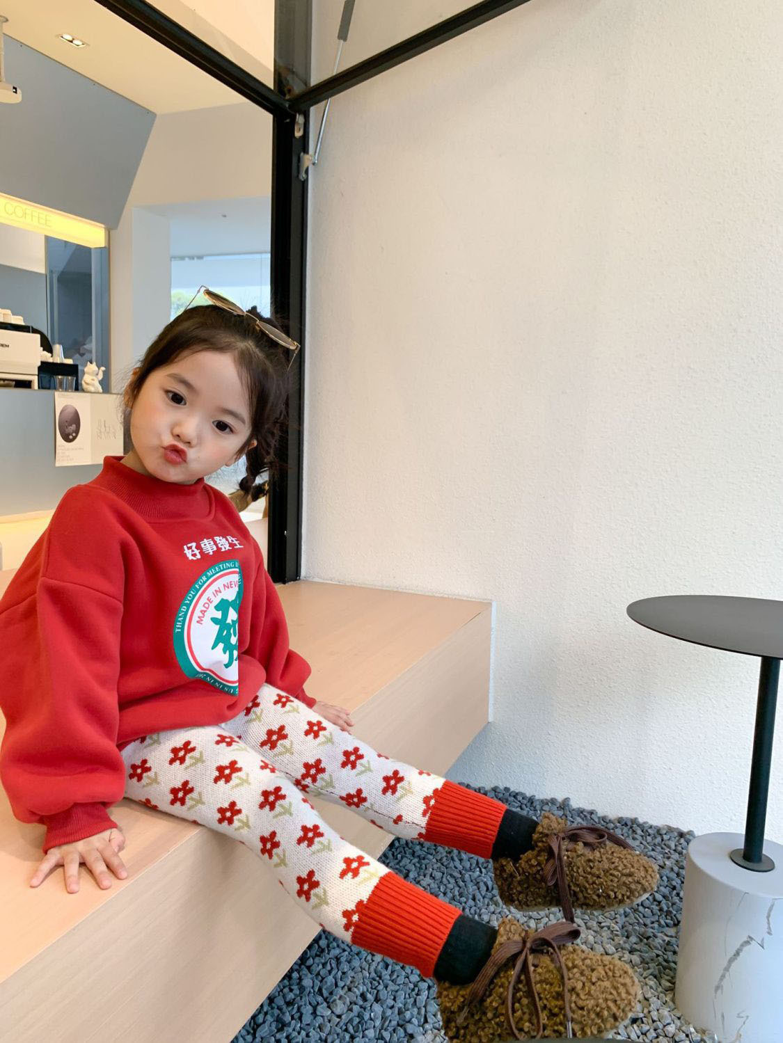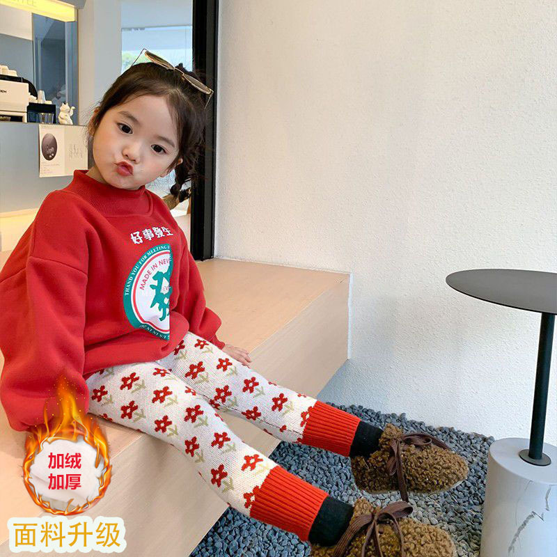 모리 아동복 소녀 니트 두꺼운 레깅스 외형 꽃 봄 및 가을 새로운 큰 Pp 서양식 어린이 울 바지스토어 가기