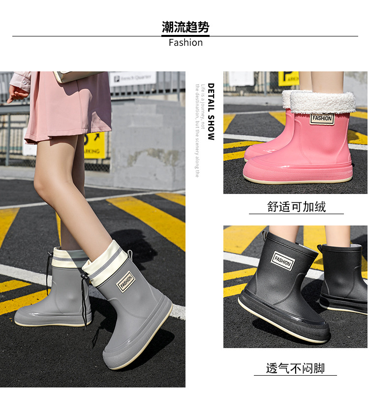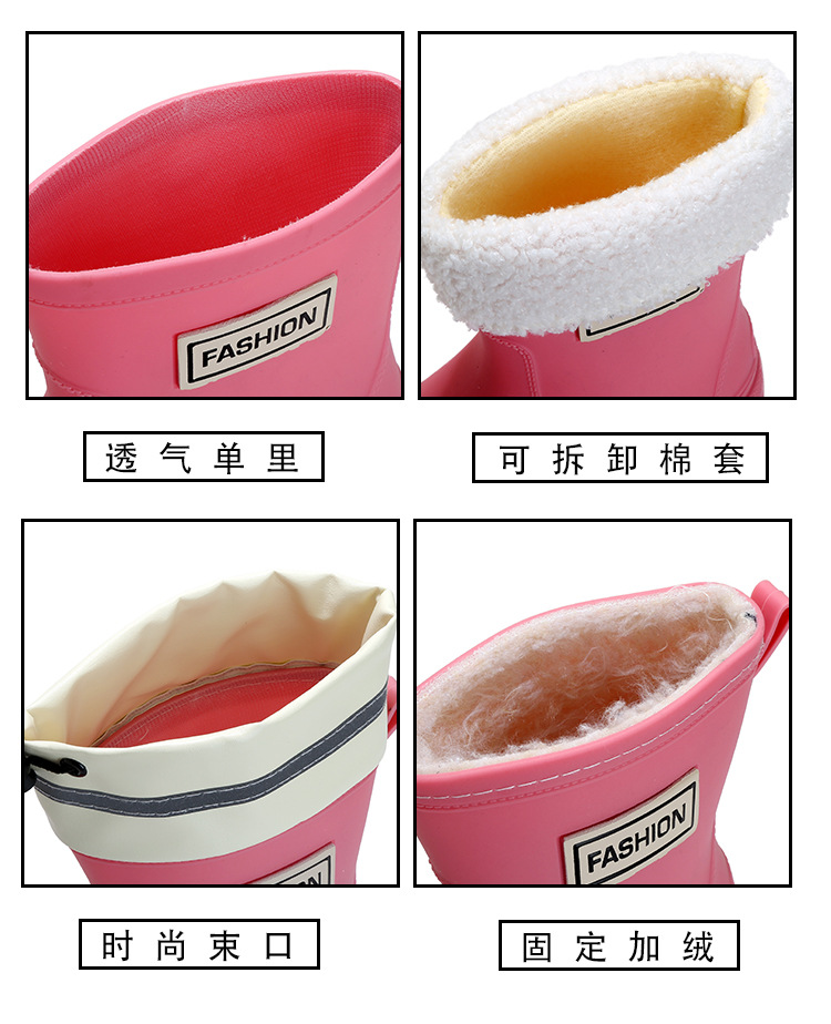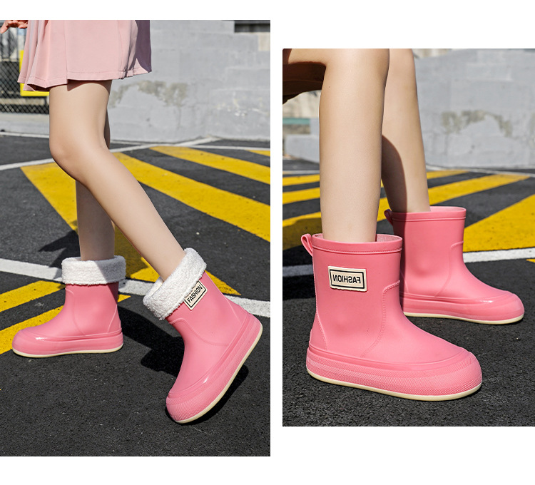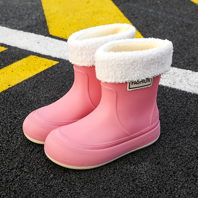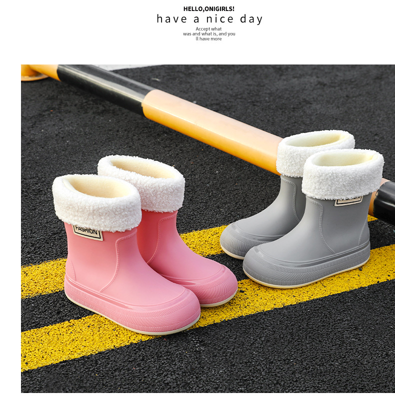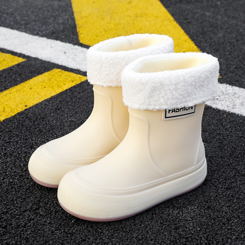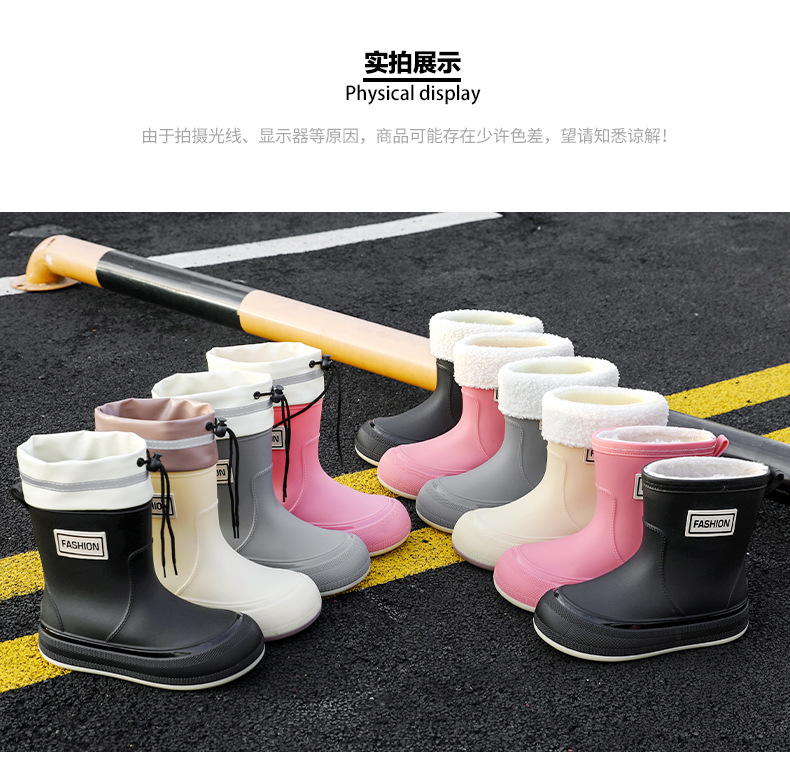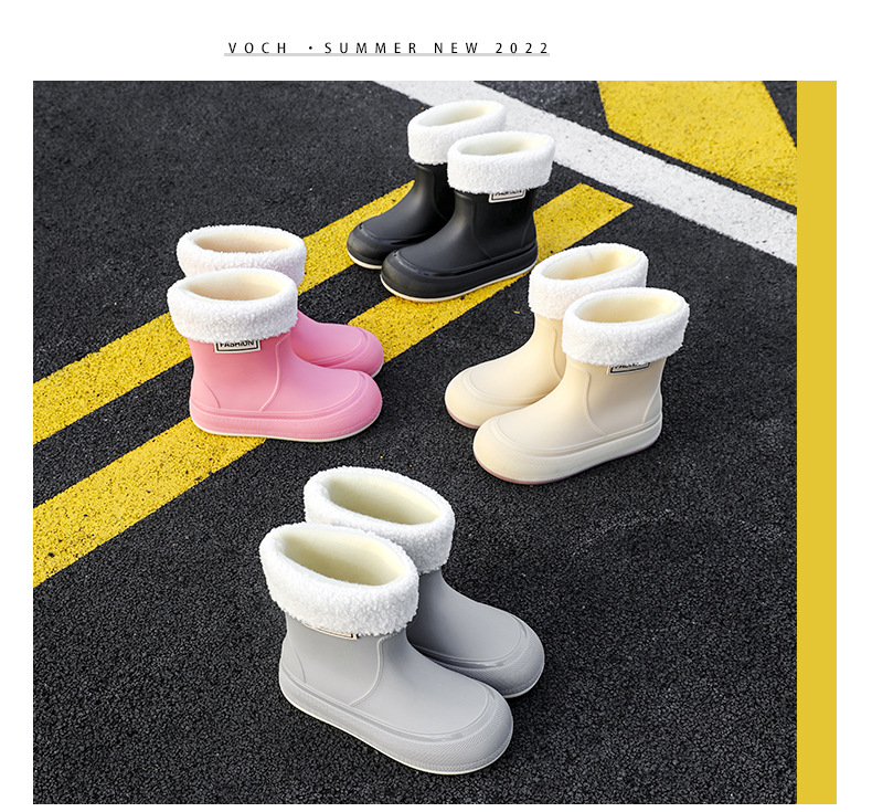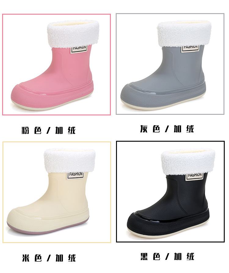 따뜻한 비 신발 여성 패션 기모 고무 신발 학생 미끄럼 방지 외부 착용 방수 거들 캠핑 워터 부츠 여성 도매