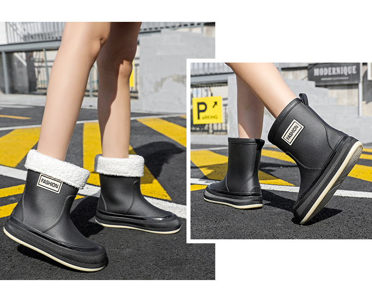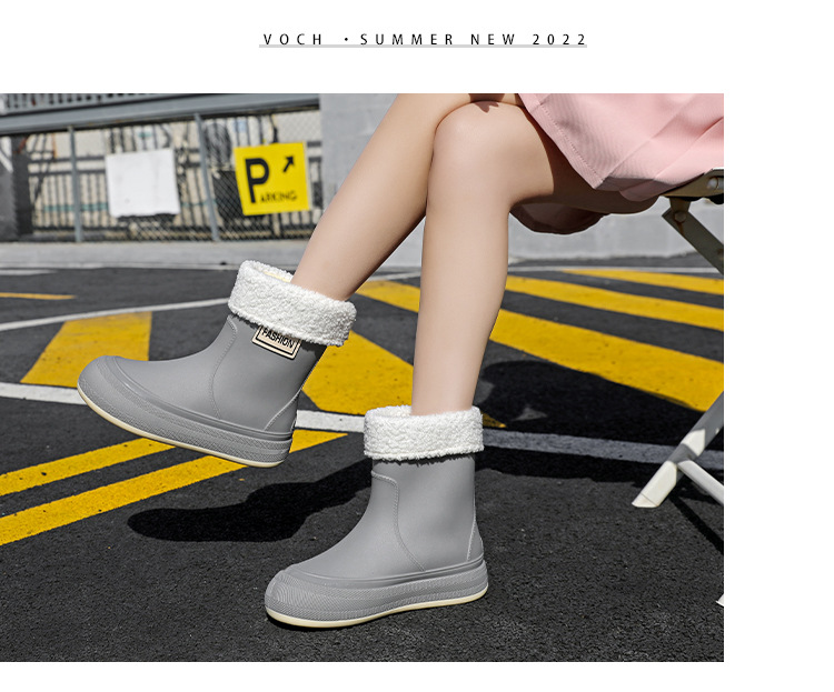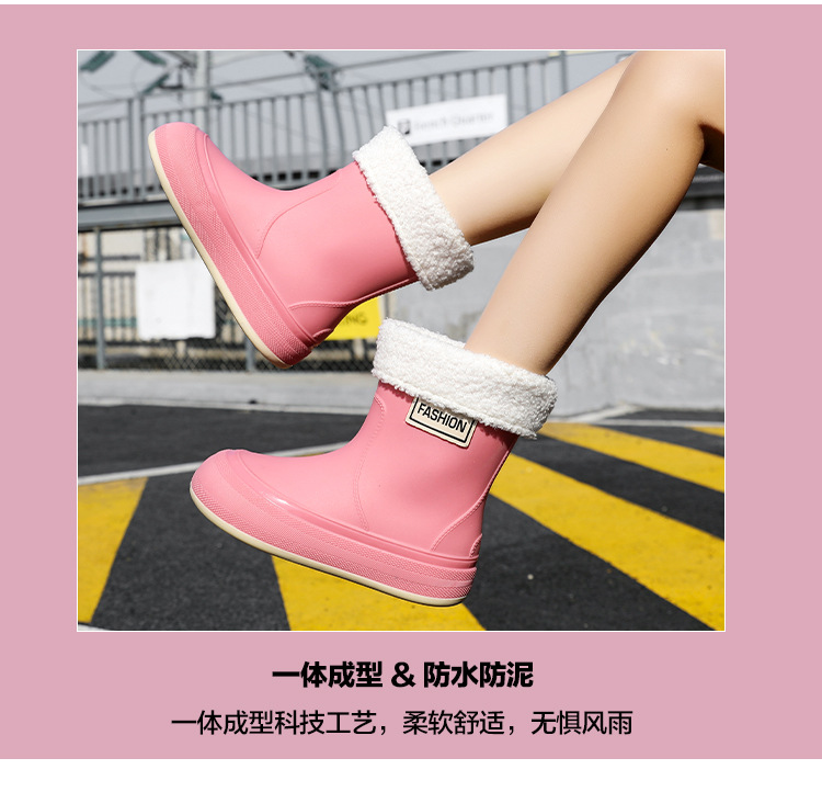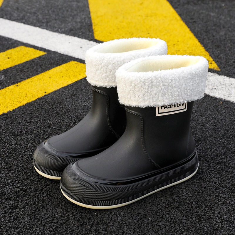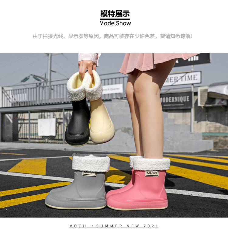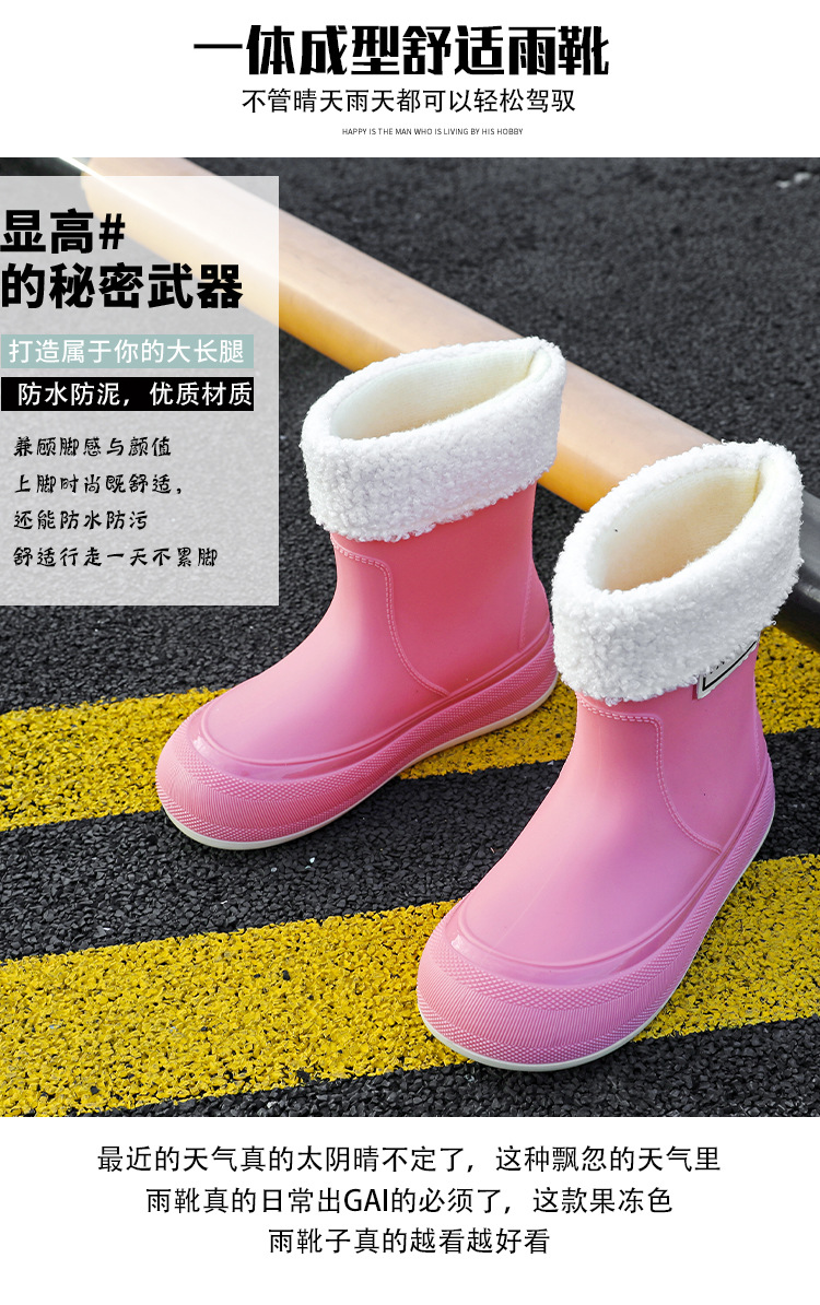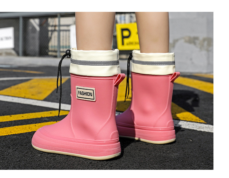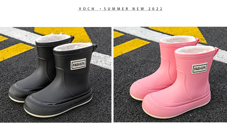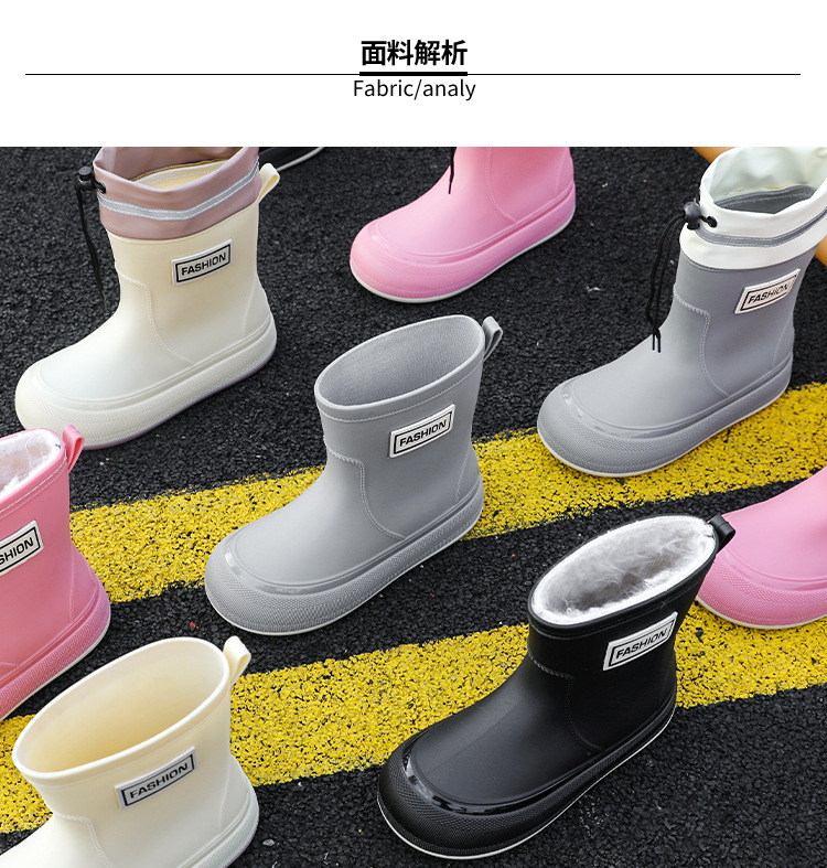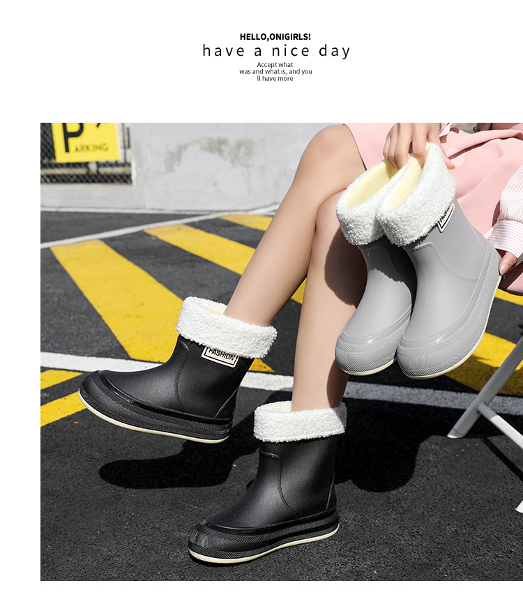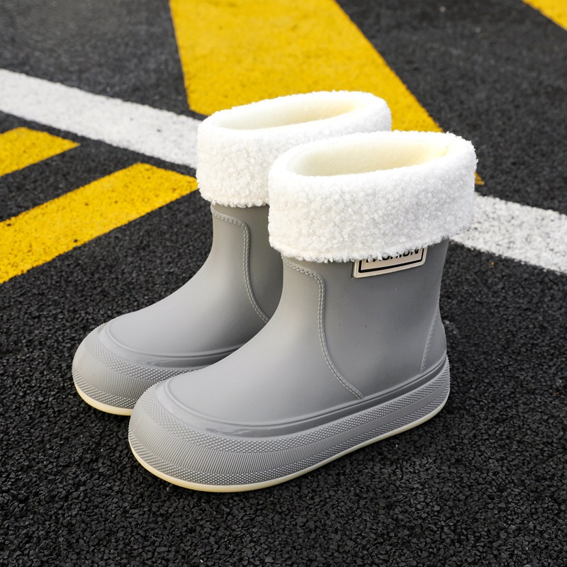 따뜻한 비 신발 여성 패션 기모 고무 신발 학생 미끄럼 방지 외부 착용 방수 거들 캠핑 워터 부츠 여성 도매