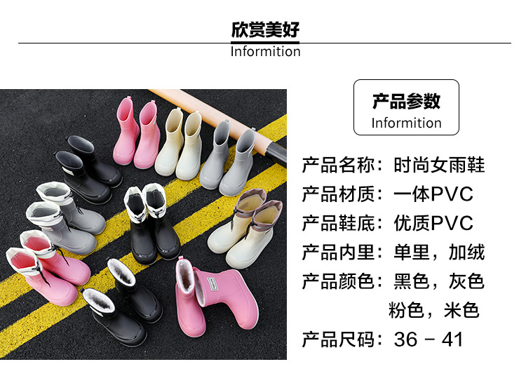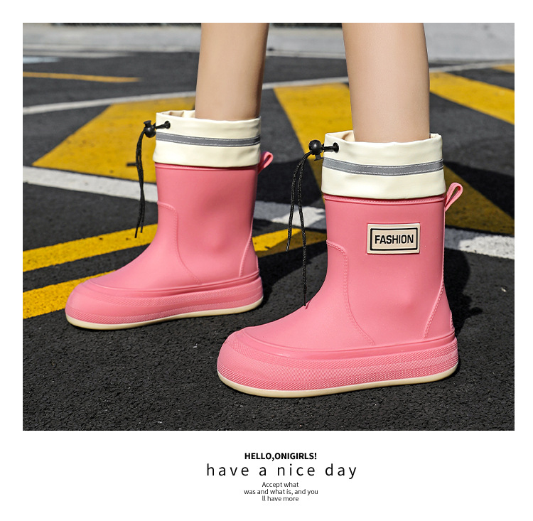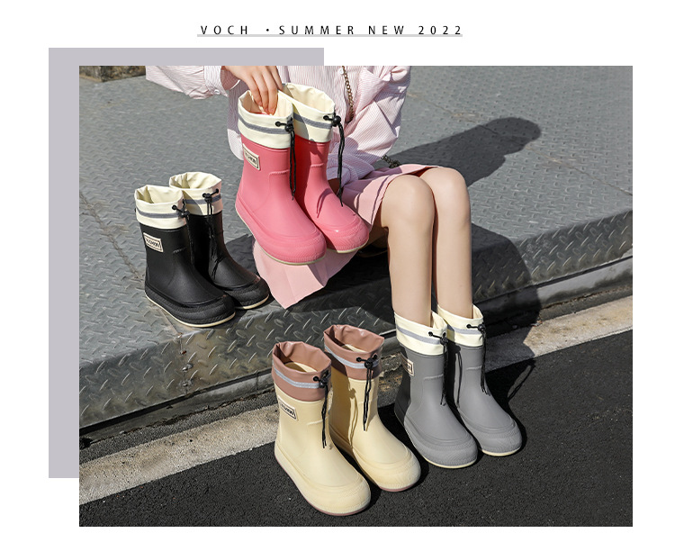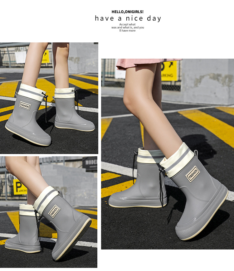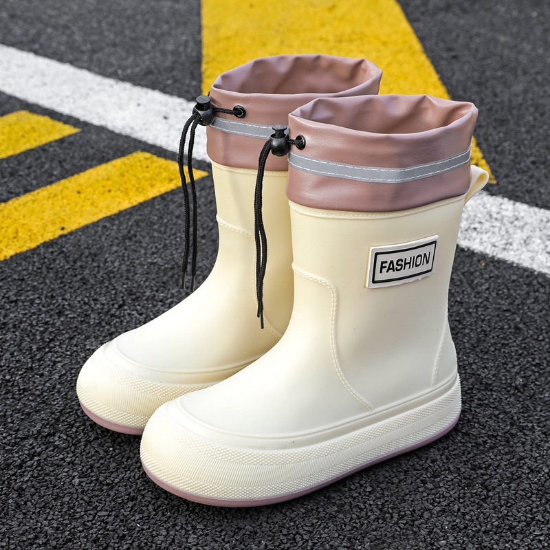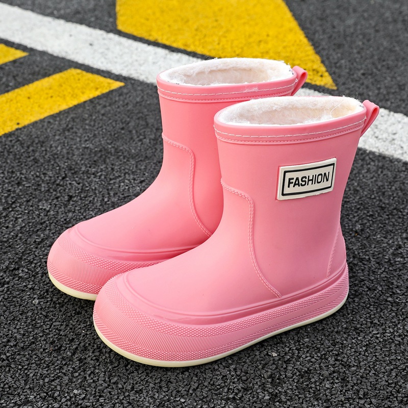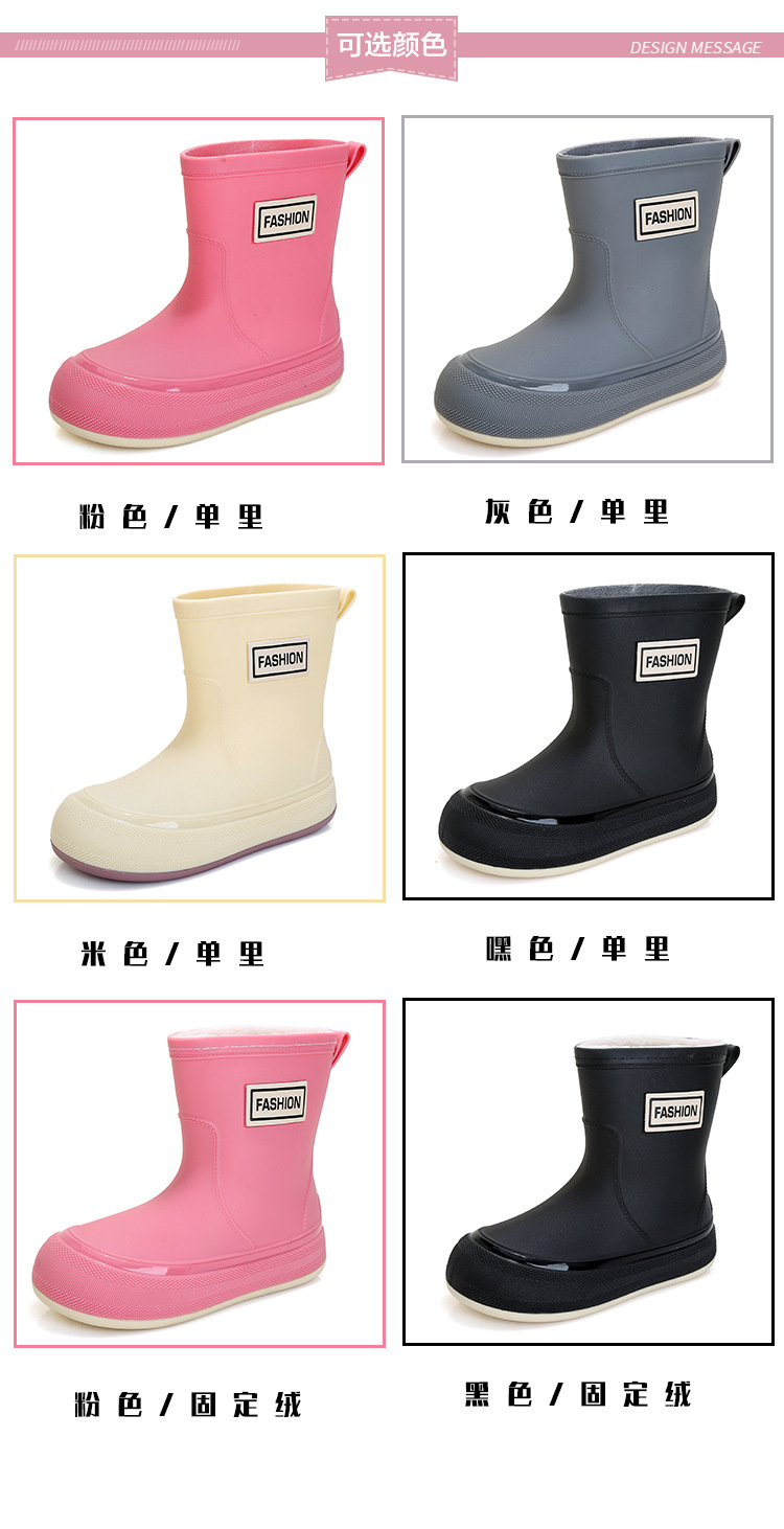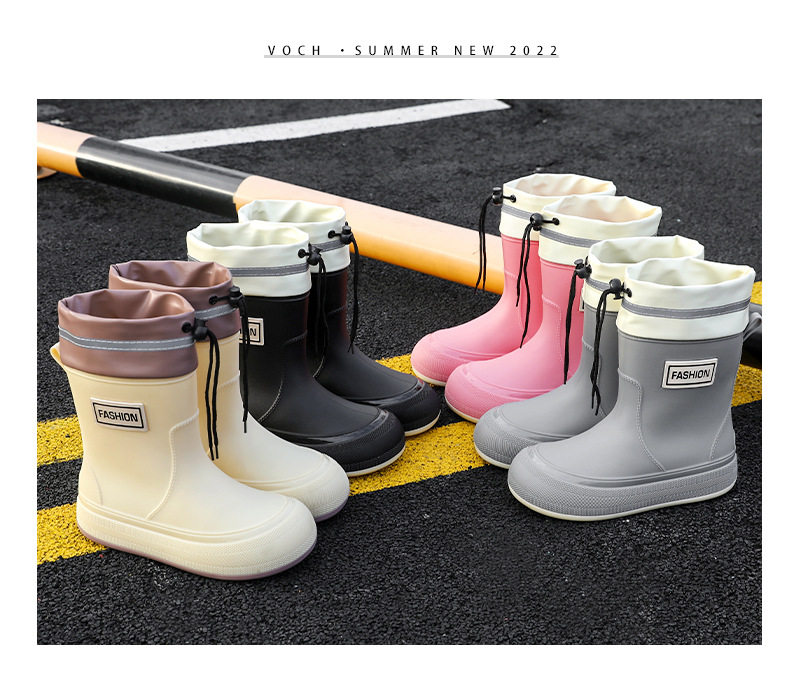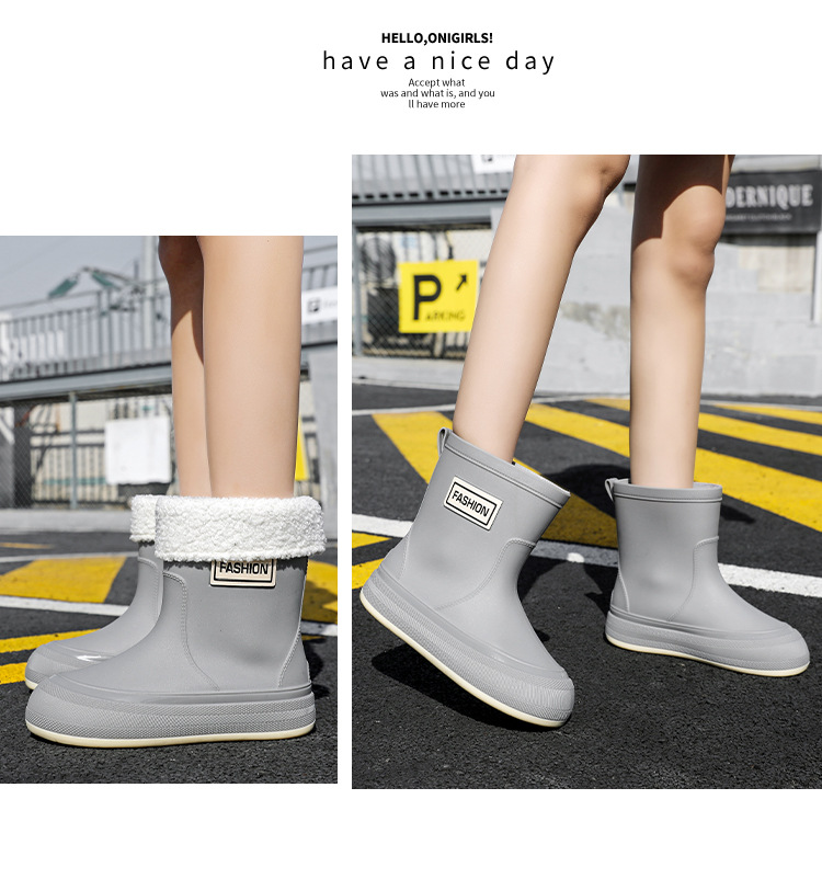 따뜻한 비 신발 여성 패션 기모 고무 신발 학생 미끄럼 방지 외부 착용 방수 거들 캠핑 워터 부츠 여성 도매