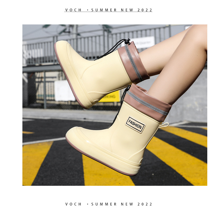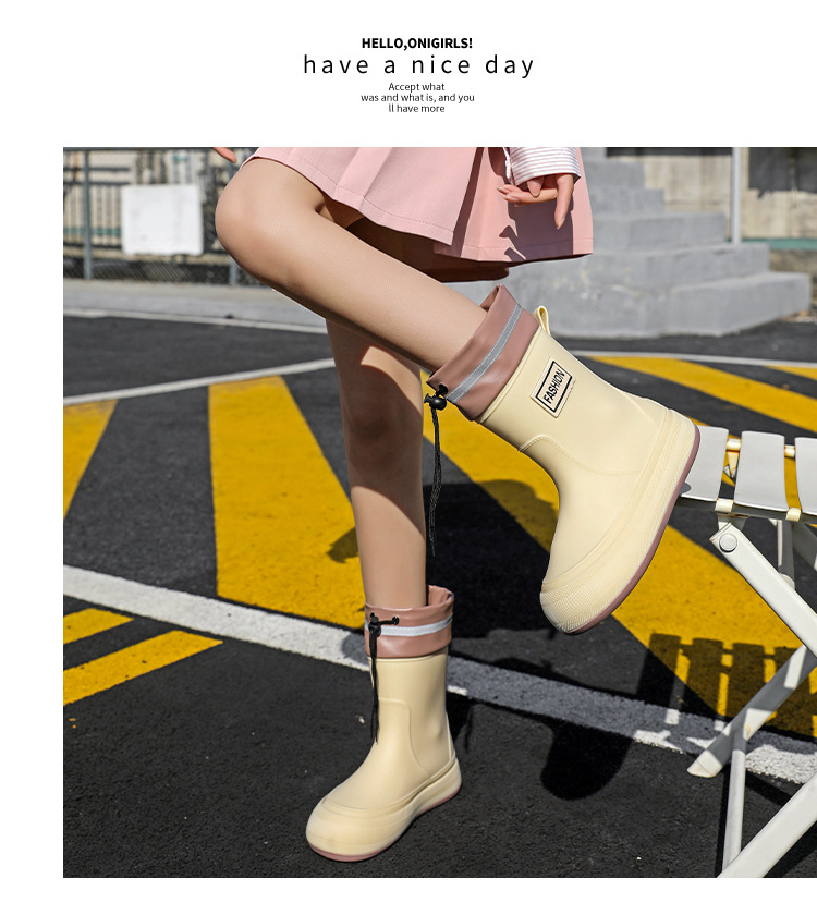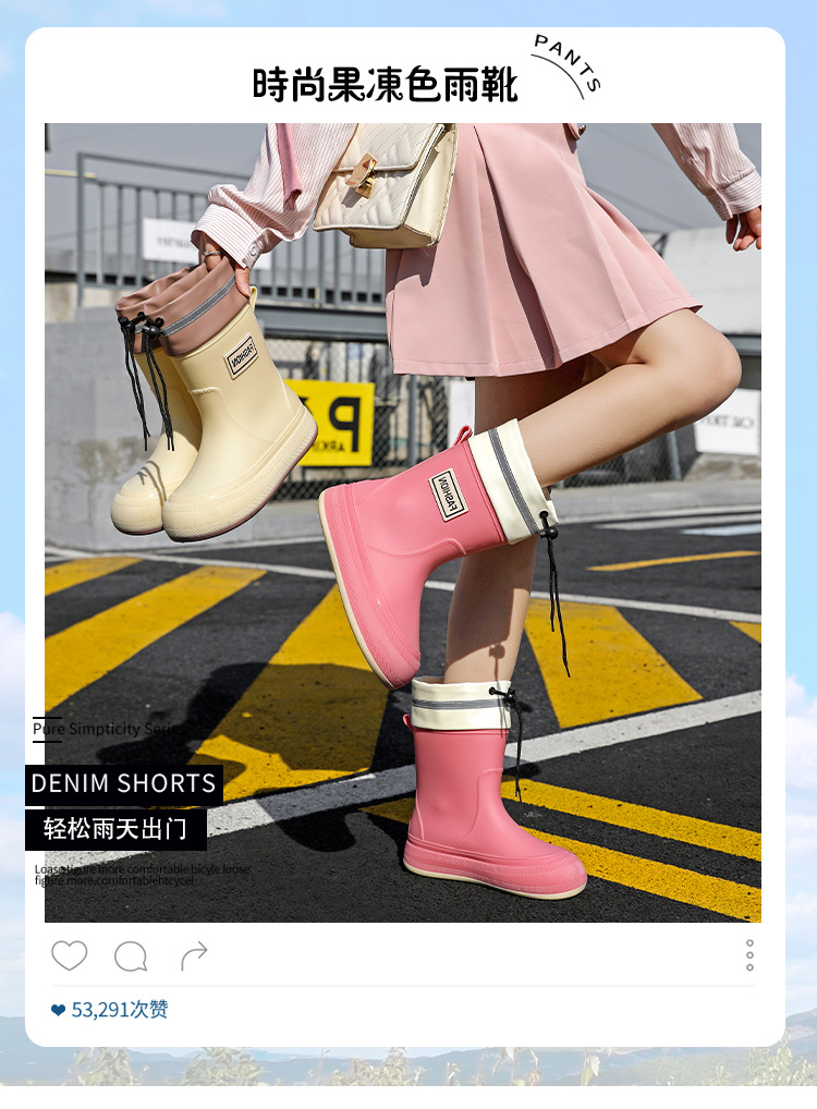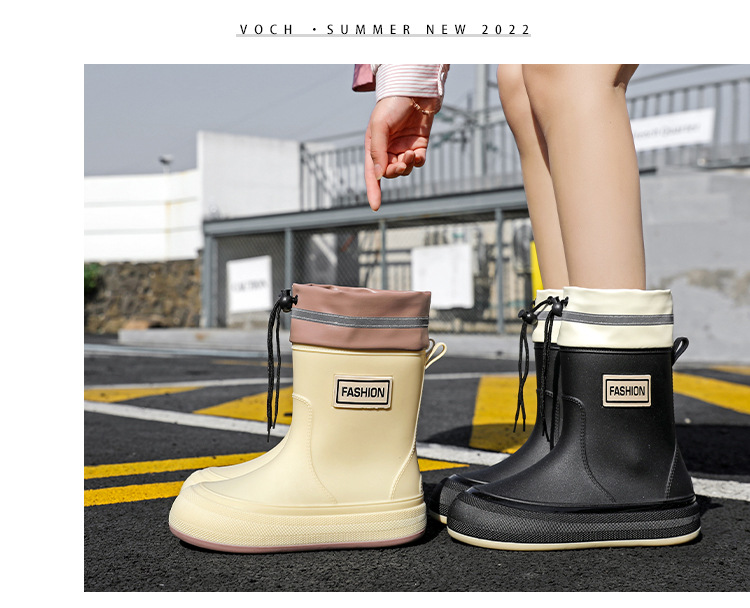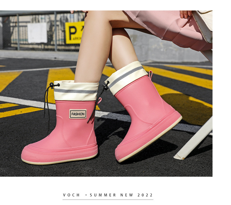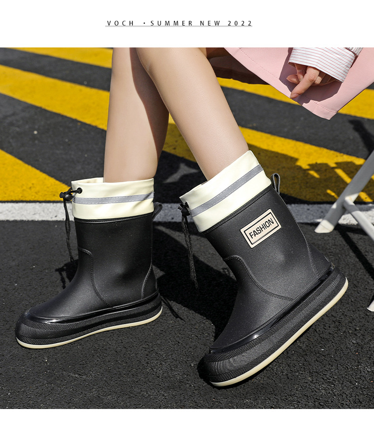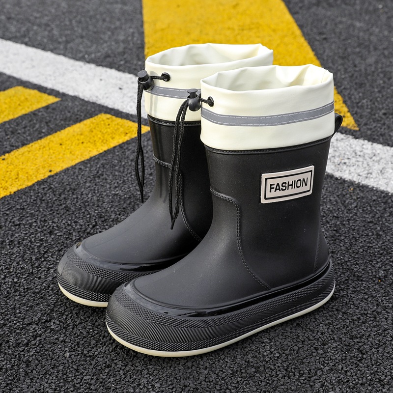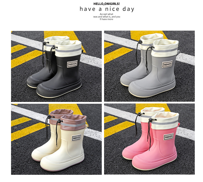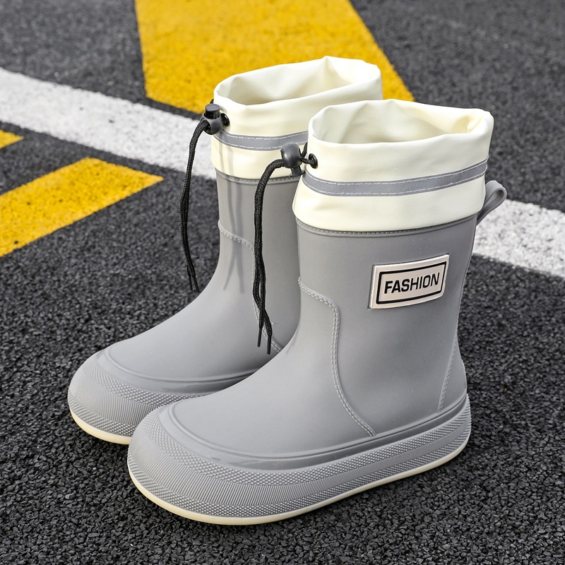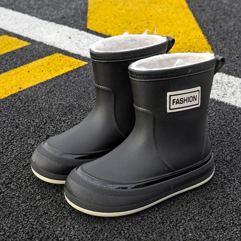 따뜻한 비 신발 여성 패션 기모 고무 신발 학생 미끄럼 방지 외부 착용 방수 거들 캠핑 워터 부츠 여성 도매