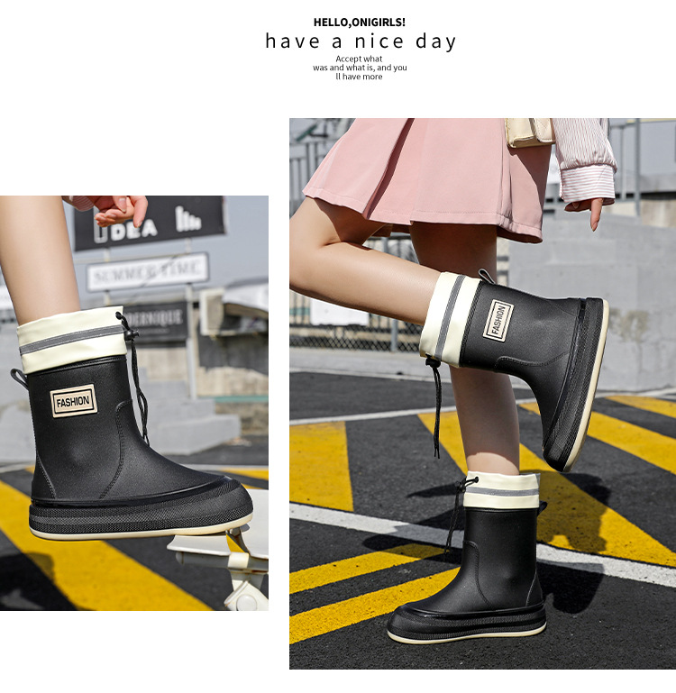 따뜻한 비 신발 여성 패션 기모 고무 신발 학생 미끄럼 방지 외부 착용 방수 거들 캠핑 워터 부츠 여성 도매스토어 가기