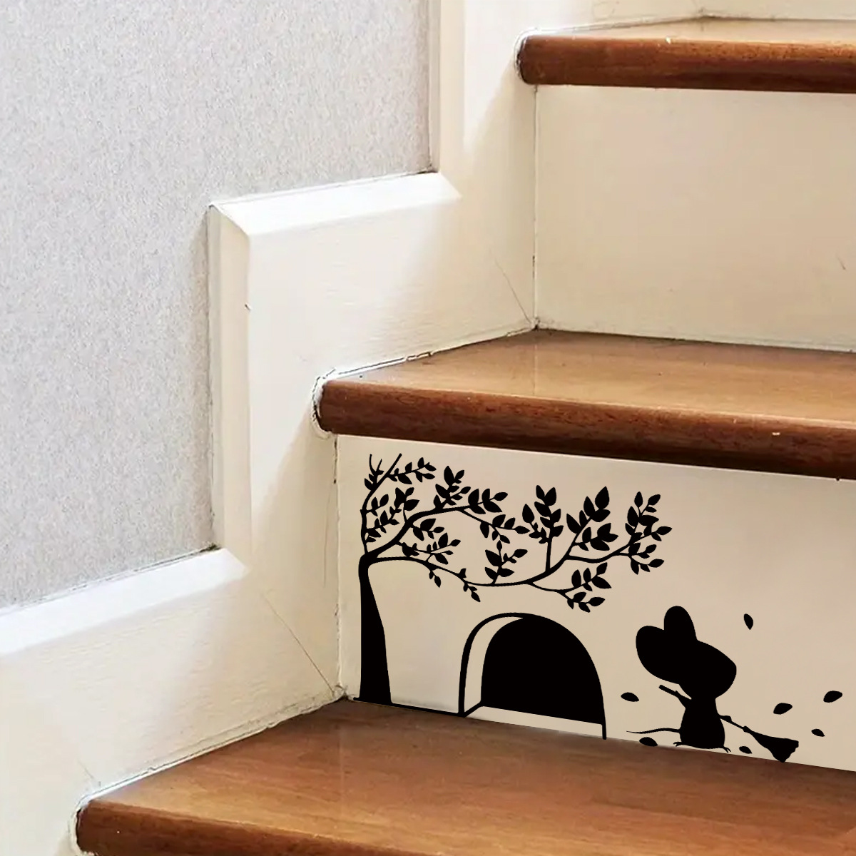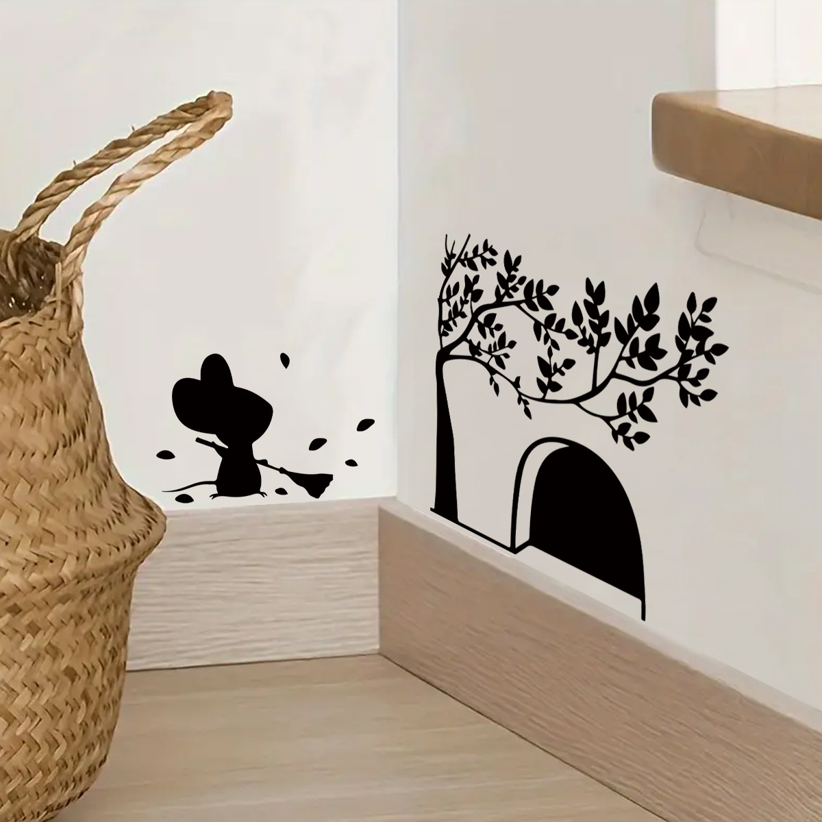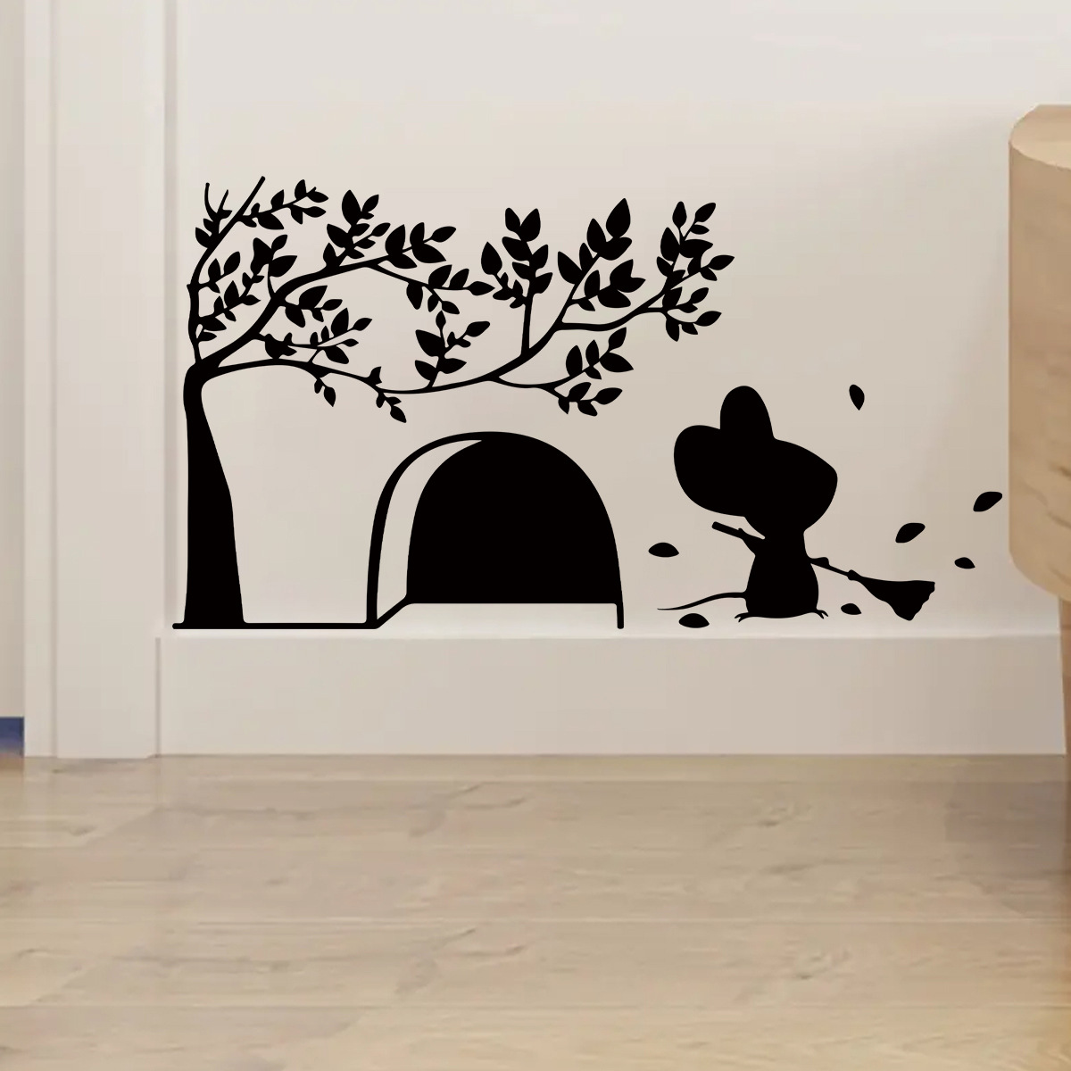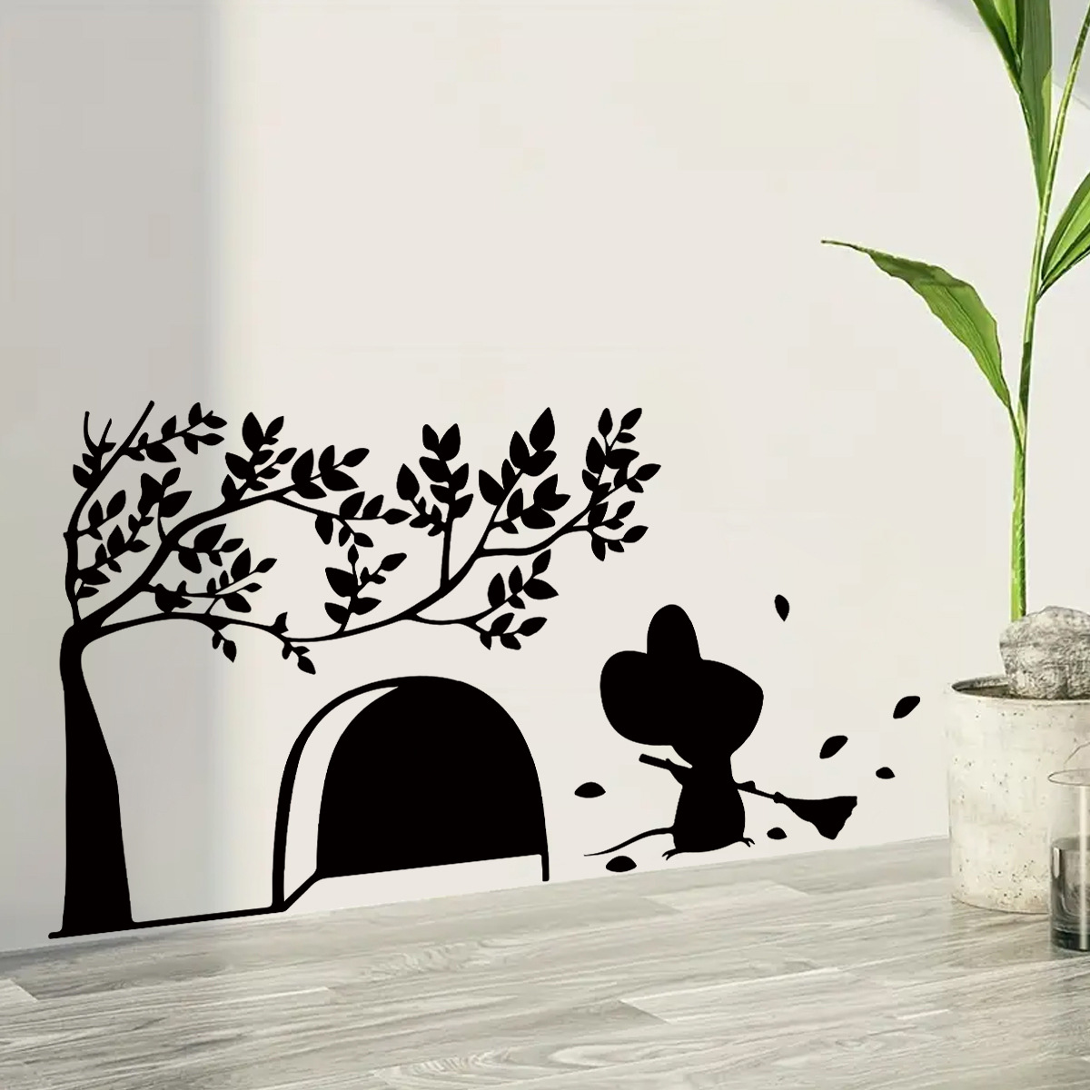 만화 크리 에이 티브 마우스 구멍 귀여운 마우스 실루엣 자체 접착 벽 스티커 룸 스커트 라인 장식 스티커 ZN0945C