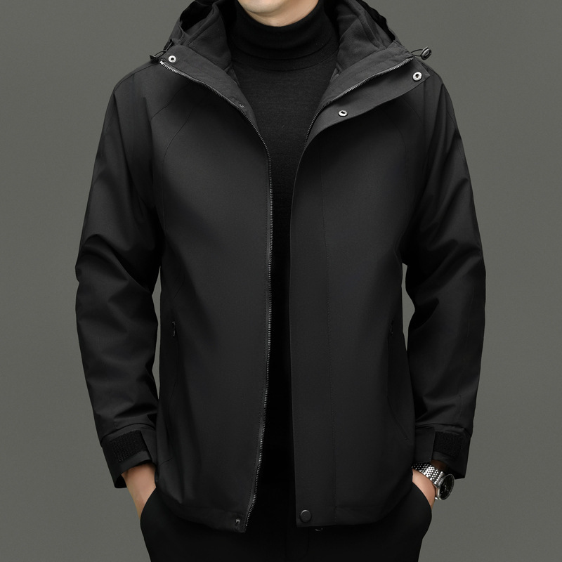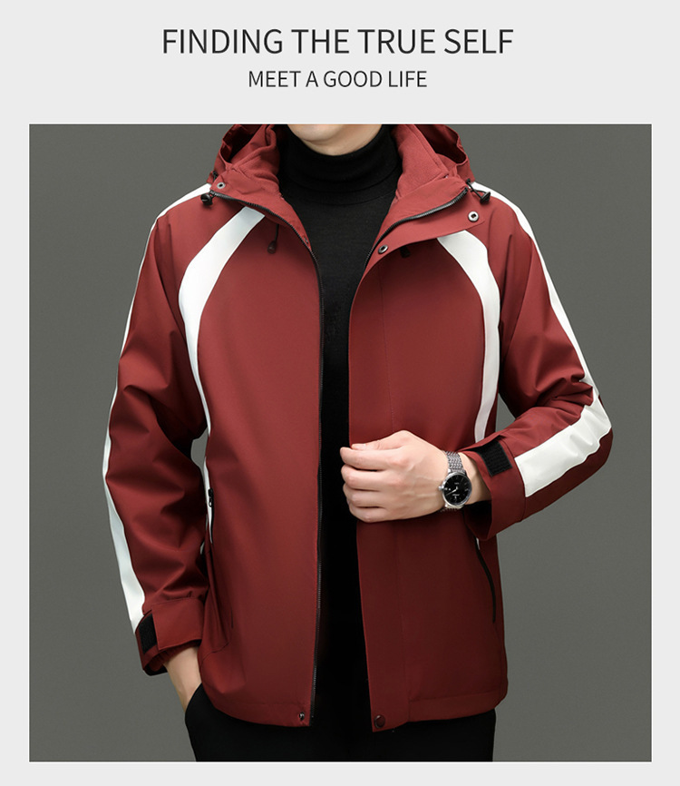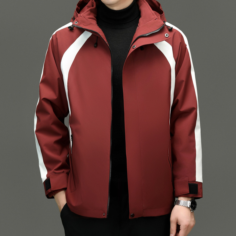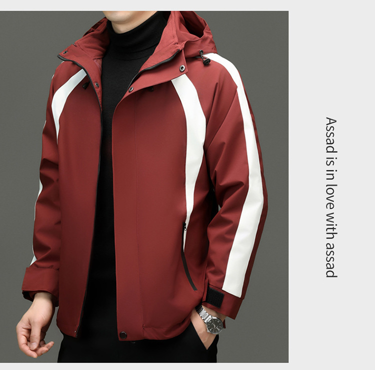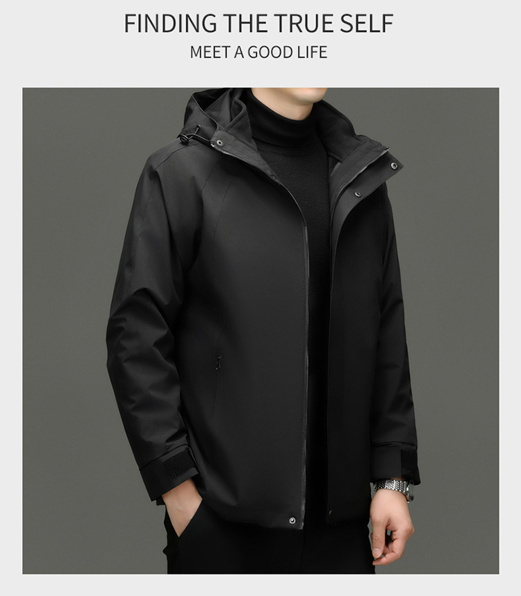 남자 자켓 후드 캐주얼 야외 중년 자켓 남자의 가을과 겨울 새로운 기모 두껍게