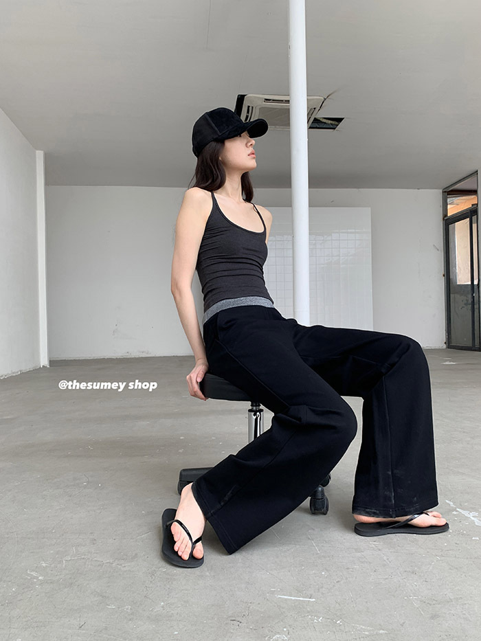 바느질 대비 색상 넓은 다리 바지 여성의 게으른 스트레이트 바지 높은 허리 좁은 캐주얼 바지 걸레 스포츠 여성 바지 한 세대 머리카락