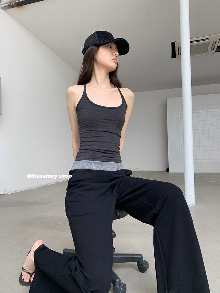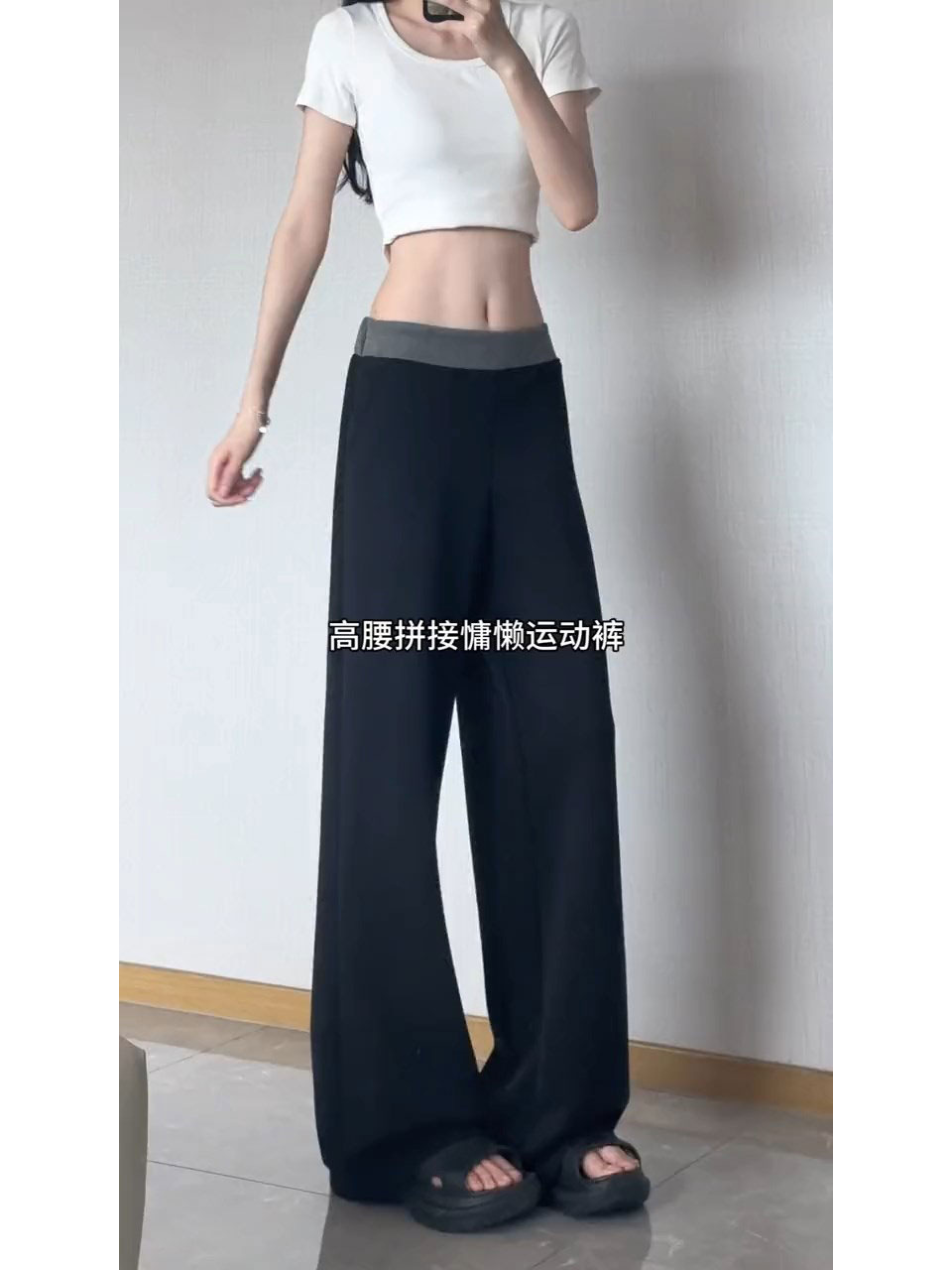 바느질 대비 색상 넓은 다리 바지 여성의 게으른 스트레이트 바지 높은 허리 좁은 캐주얼 바지 걸레 스포츠 여성 바지 한 세대 머리카락스토어 가기