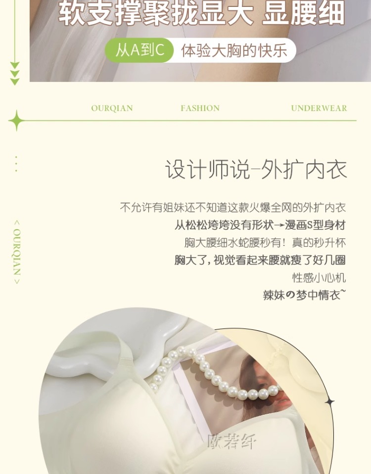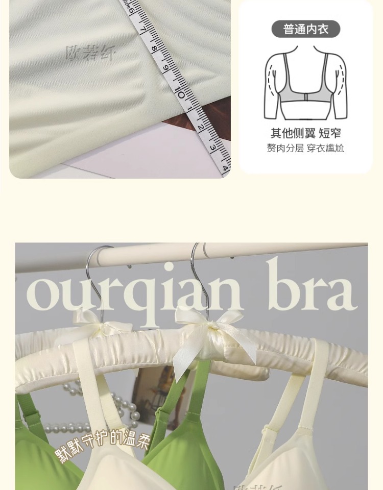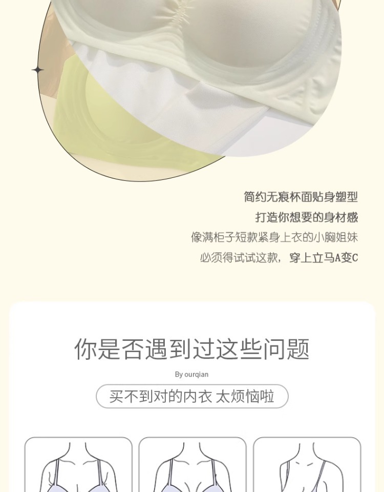 여성용 무자석 무흔적 속옷, 작은 가슴을 모아주는 여름용 외부 확장형 노와이어 처짐방지 고정형 브라