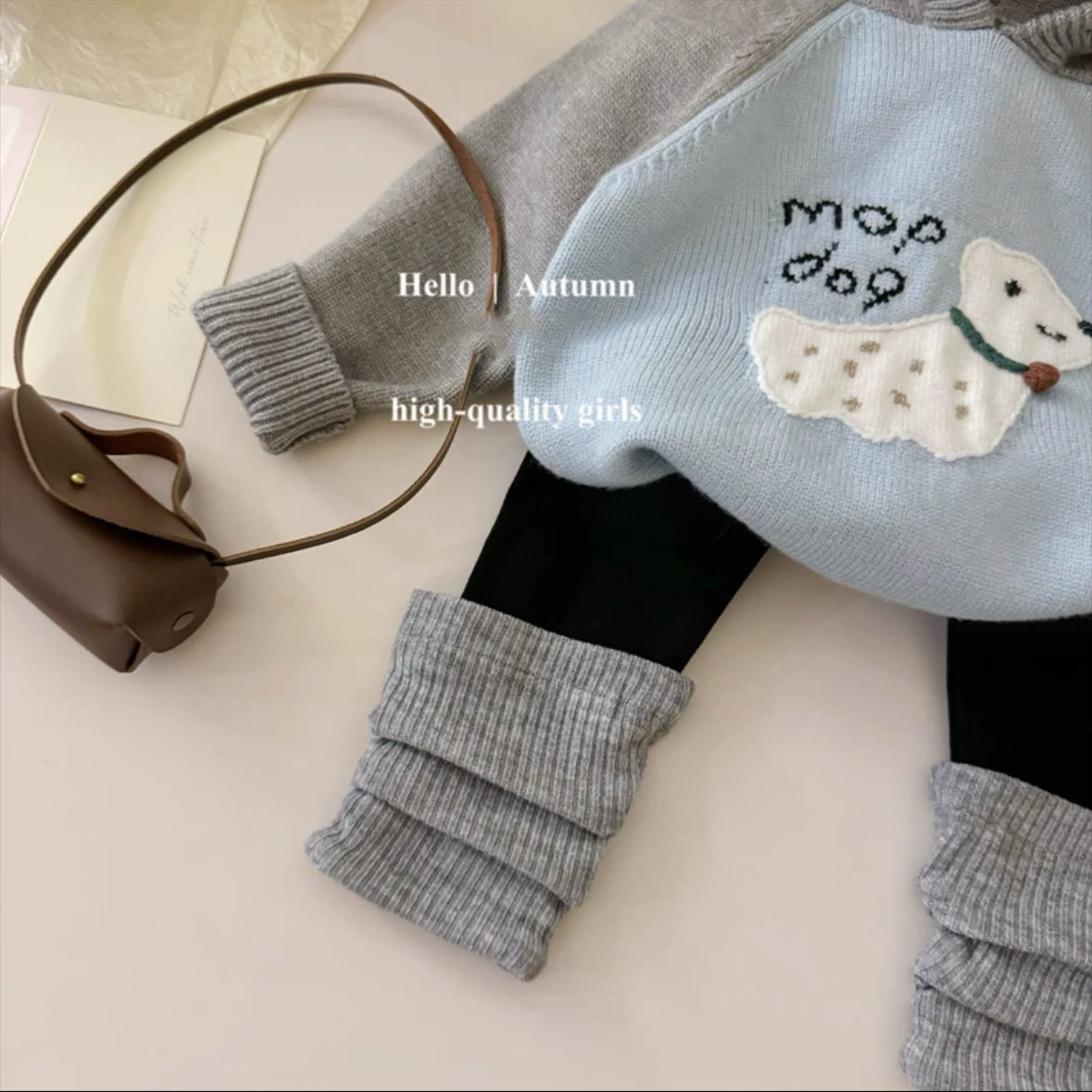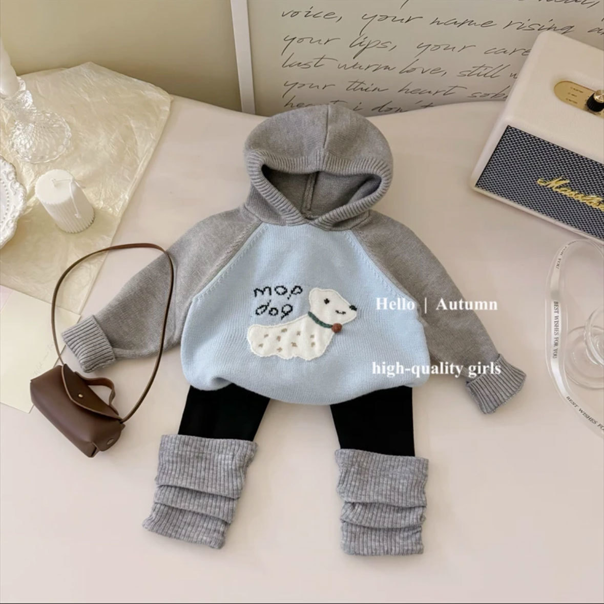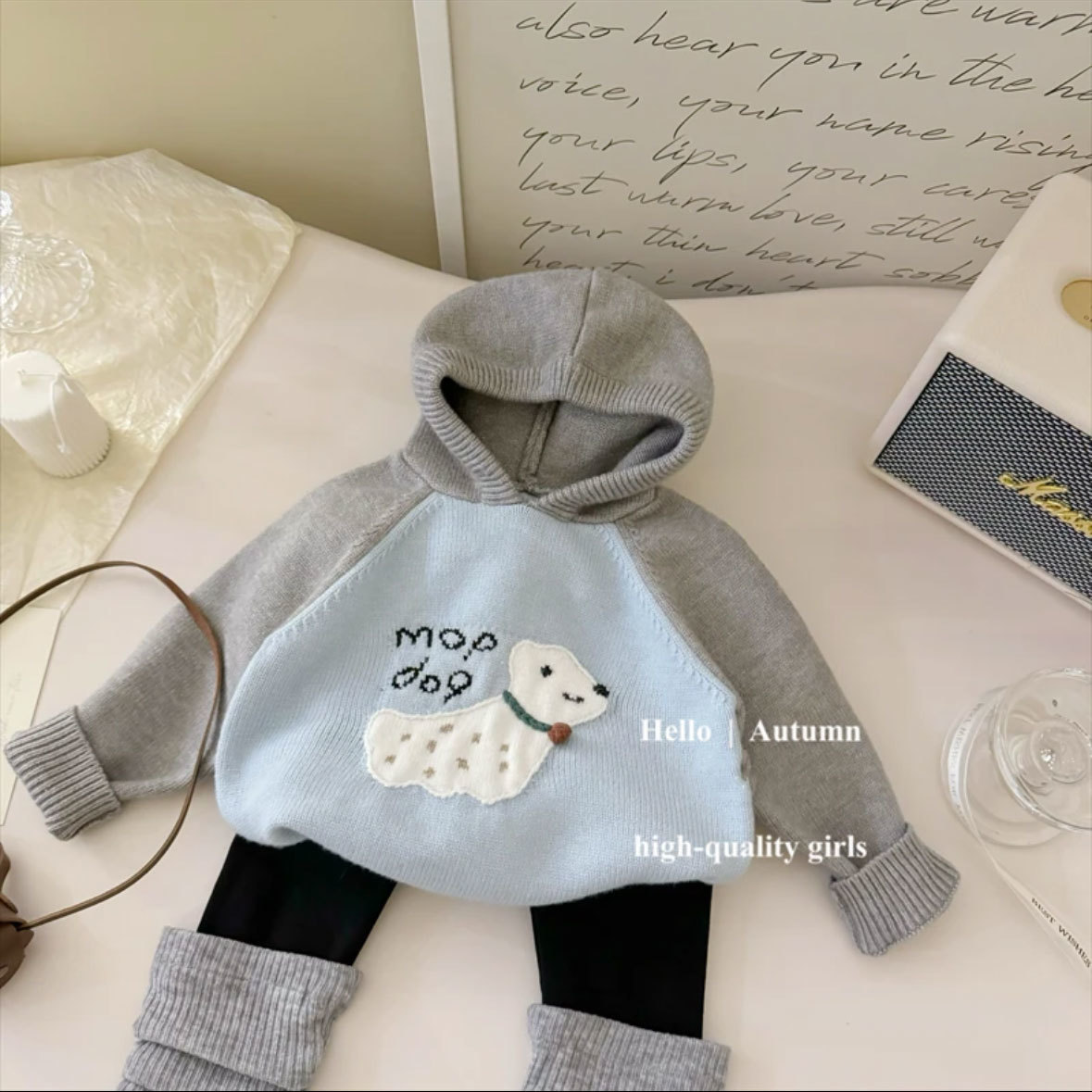 소녀의 만화 강아지 스웨터 코트 2024 가을과 겨울 새로운 서양 스타일 귀여운 아기 대비 컬러 풀오버 니트 탑스토어 가기