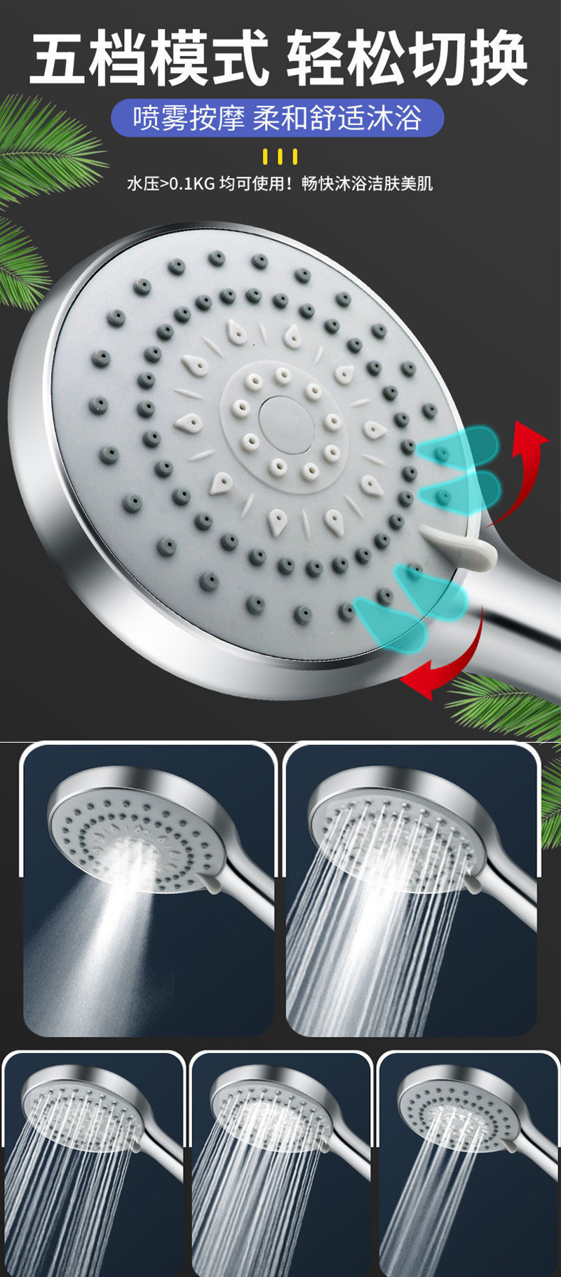 • 전기도금된 은 5단 대형 샤워기 + 은색 펀치 없는 알루미늄 베이스