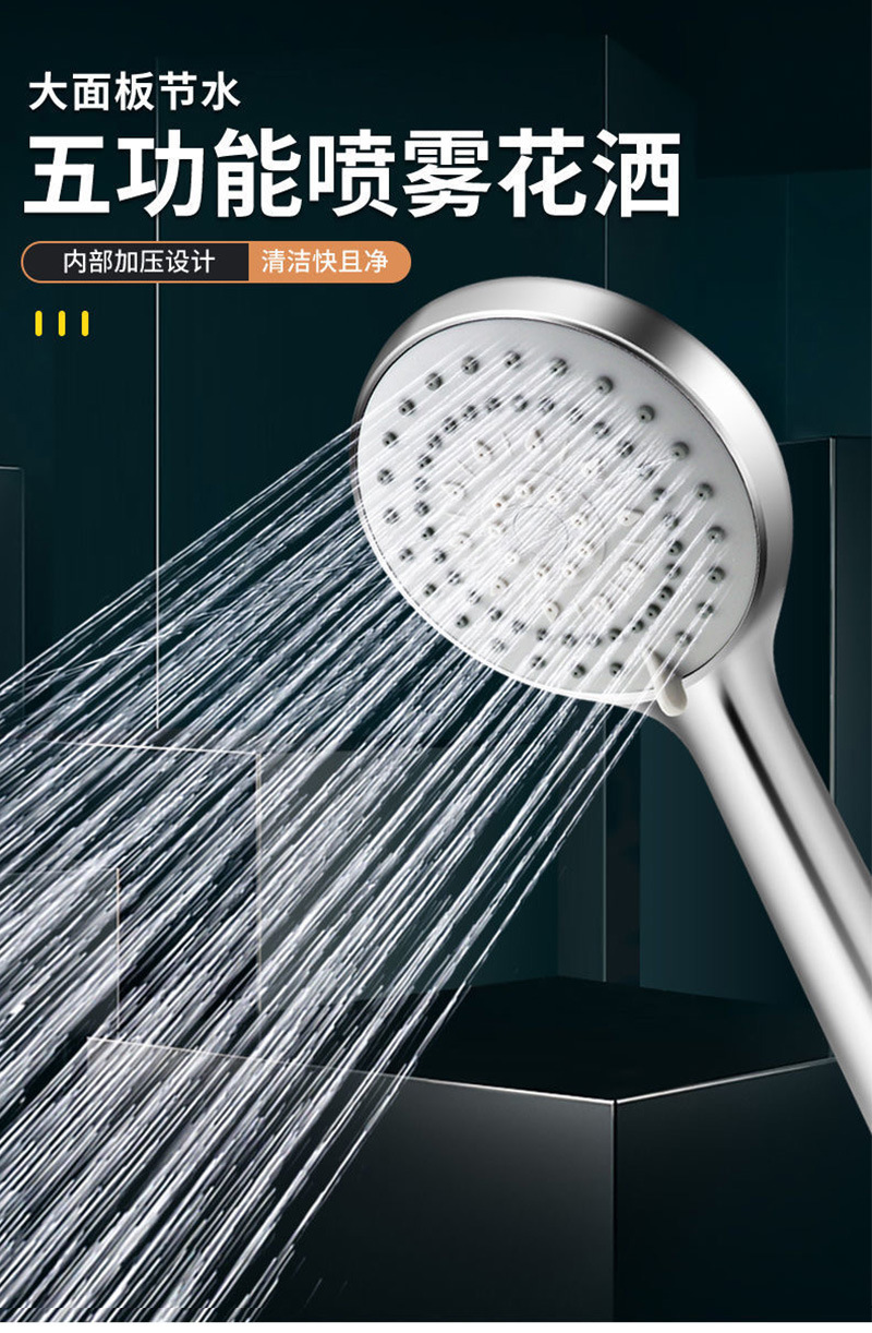 • 전기도금된 은 5단 대형 샤워 + 실버 ABS 펀치 프리 브래킷