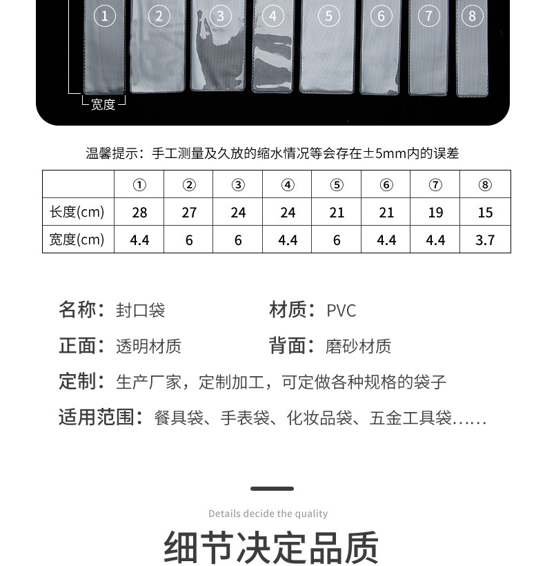 PVC 밀봉 포켓 플라스틱 자체 밀봉 가방 긴 포장 가방 화장품 브러시 시계 가방 밀봉 식기 방진 보관 가방