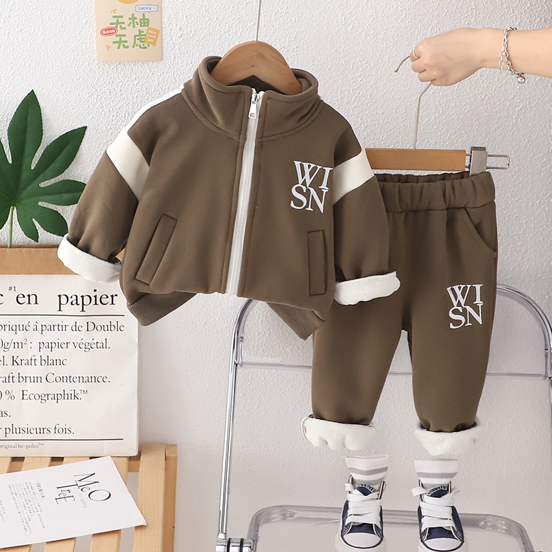 어린이 아동복 소년 세트 2024 가을과 겨울 새 편지 지퍼 스포츠웨어 투피스 세트 아기 어린 소년스토어 가기