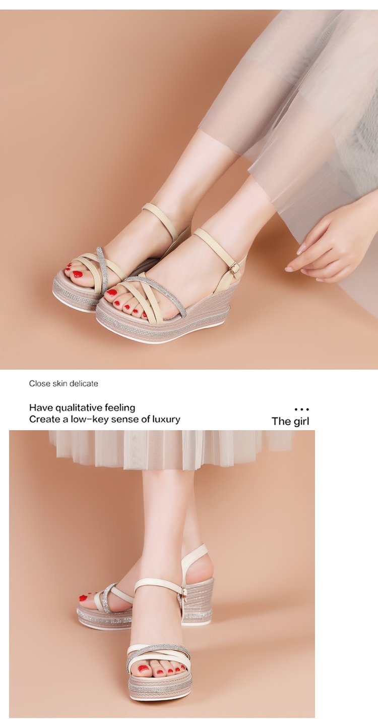 아름다운 웨지 샌들 여성 2024 년 여름 패션 캐주얼 올 매치 아우터 두꺼운 밑창 미끄럼 방지 하이힐 로마 샌들