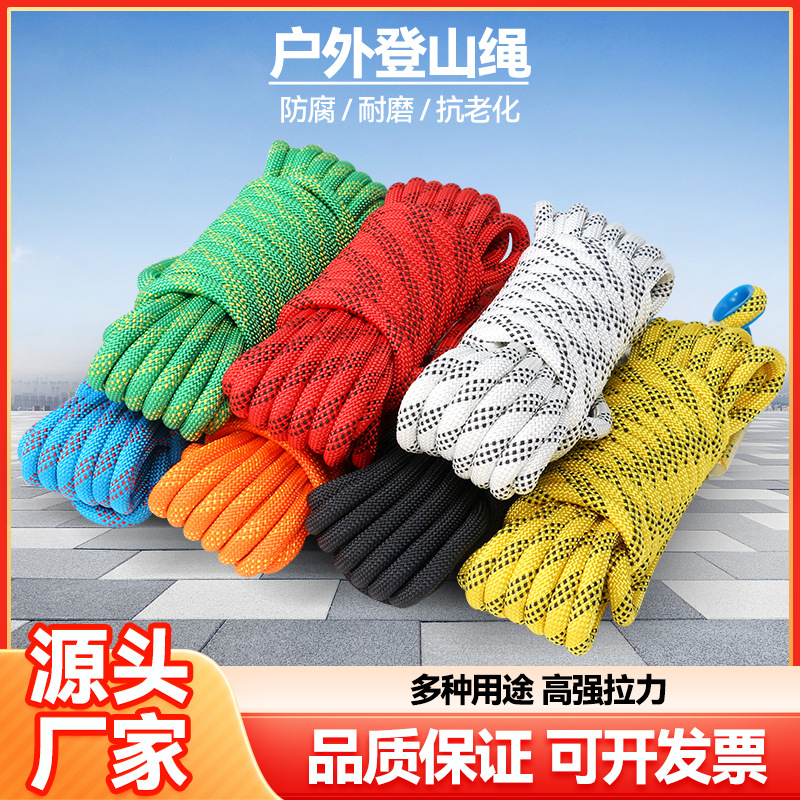 야외 등반 로프 등반 밧줄 정적 로프 야외 더블 훅 컬러 폴리에스테르 로프 높은 고도 안전 로프스토어 가기