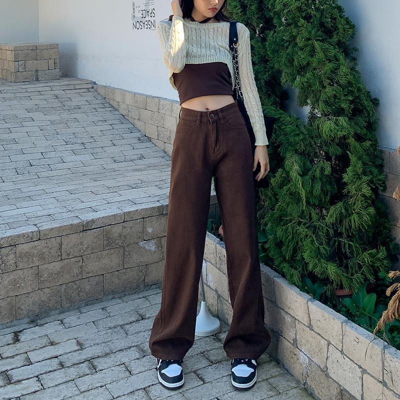 검은 회색 넓은 다리 청바지 여성의 2024 년 봄과 여름 새로운 슬리밍 높은 허리 투약 느슨한 스트레이트 바지 바지스토어 가기