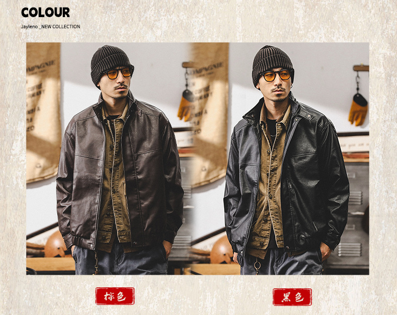 Maillard 빈티지 오토바이 가죽 자켓 남성 가을 패션 브랜드 느슨한 느슨한 승마 남성 캐주얼 작업복 재킷스토어 가기