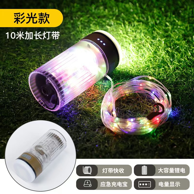 새로운 분위기 LED 캠핑 라이트 USB 충전식 야외 텐트 다채로운 문자열 라이트 스토리지 캠핑 라이트
