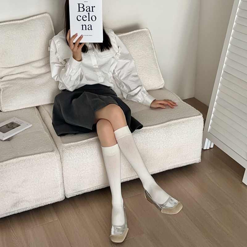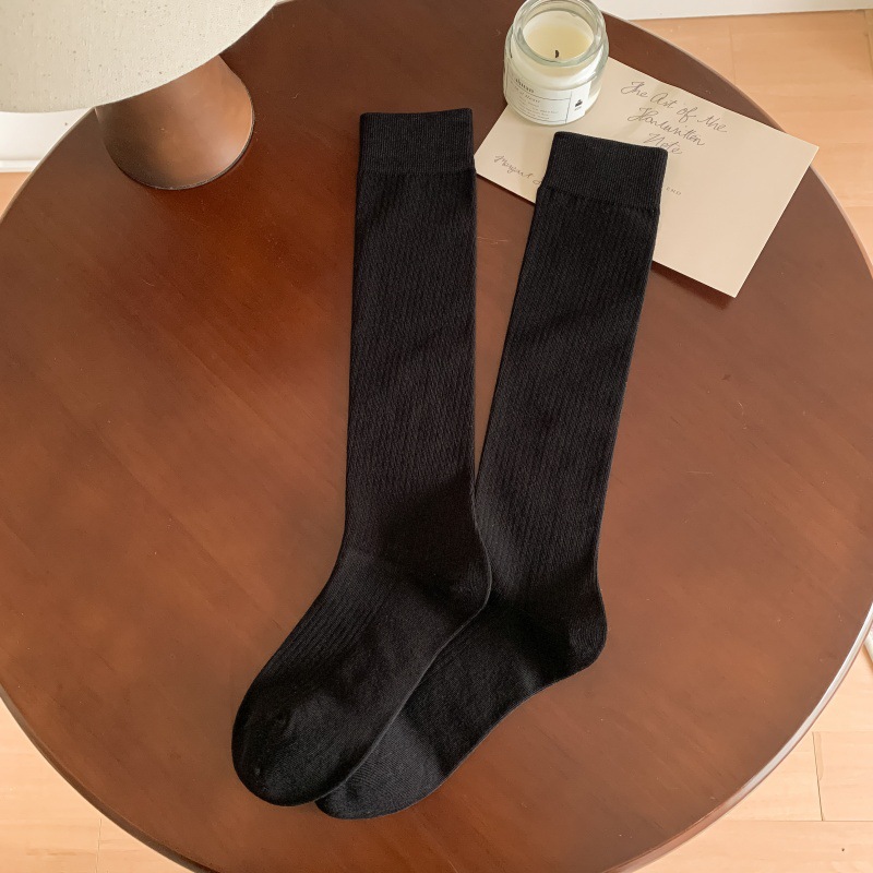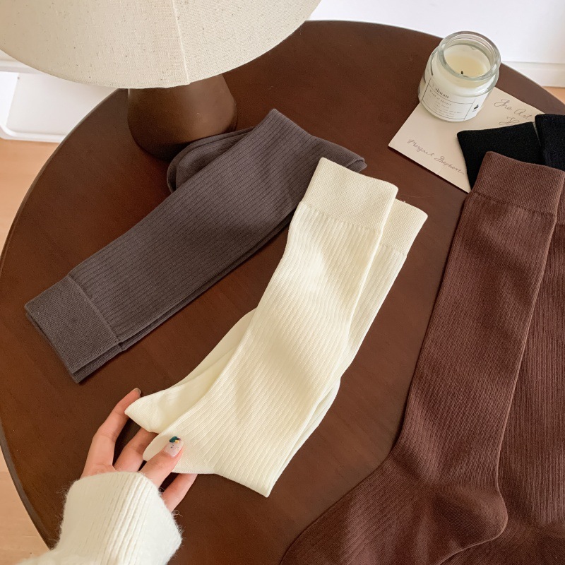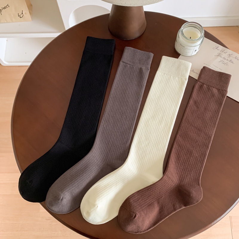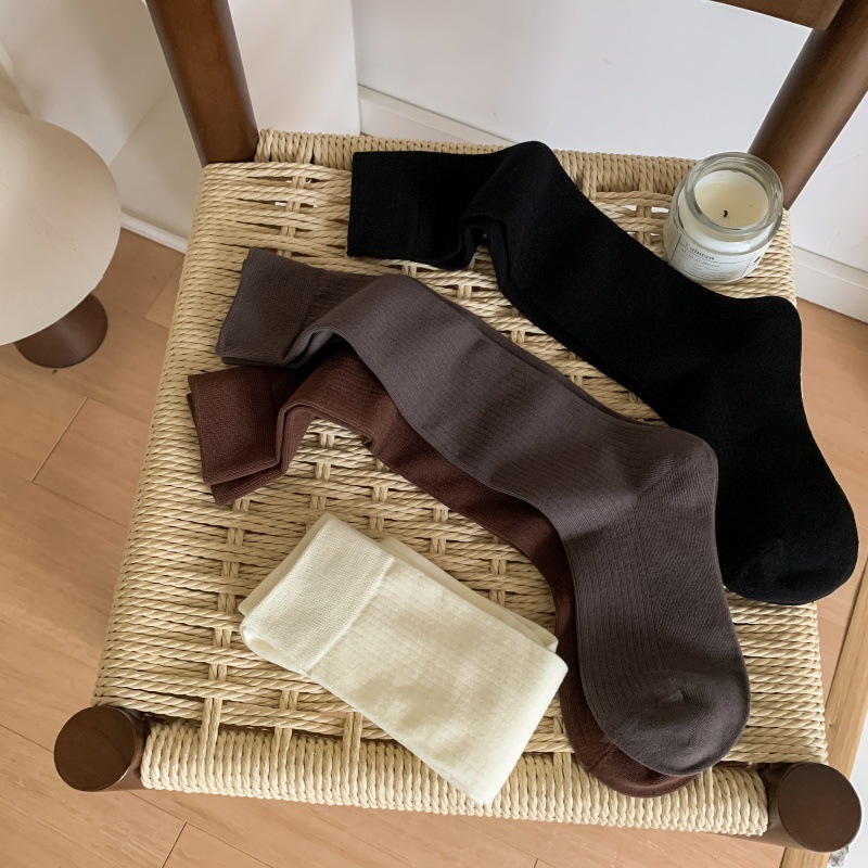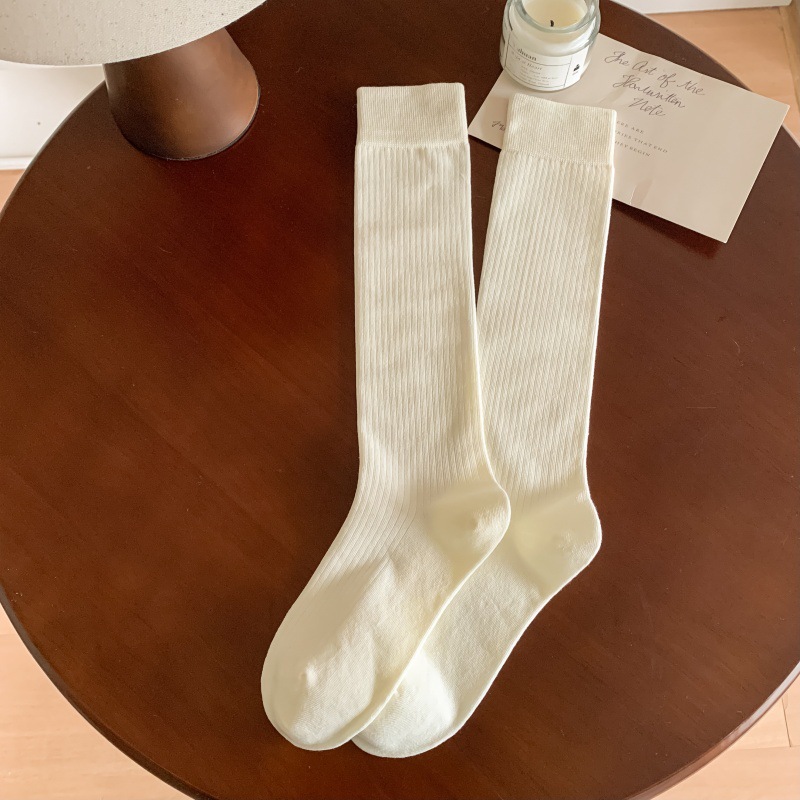 모조 더블 바늘 안티 필링 샌딩 양 우유 차 스타일 빗 코튼 한국식 고층 JK 양말 여성용 슬리밍 롱 양말