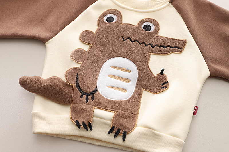 아기 기모 만화 늦은 가을 세트 2024 가을과 겨울 새로운 소년과 소녀 따뜻한 데이비드 긴 소매 투피스 세트 조수