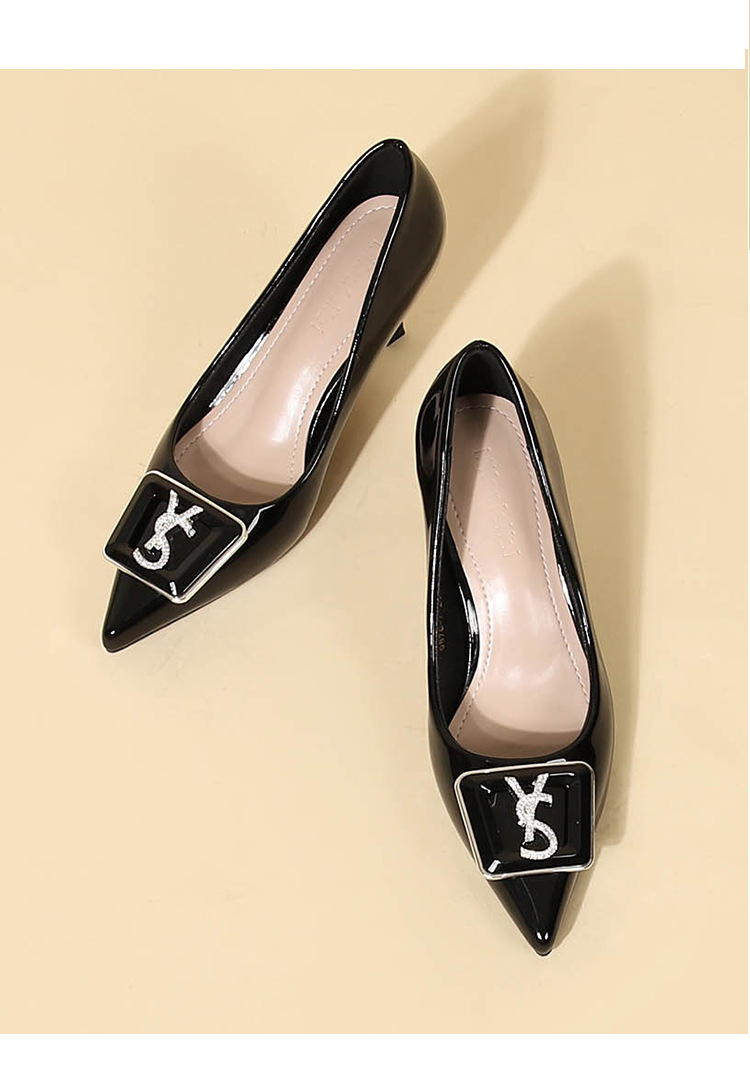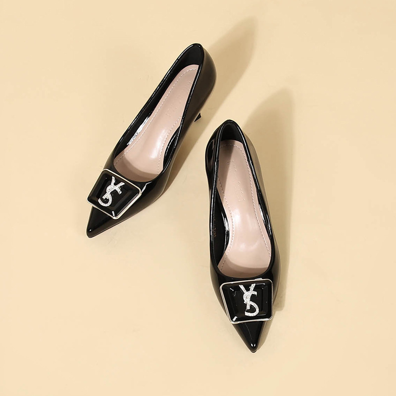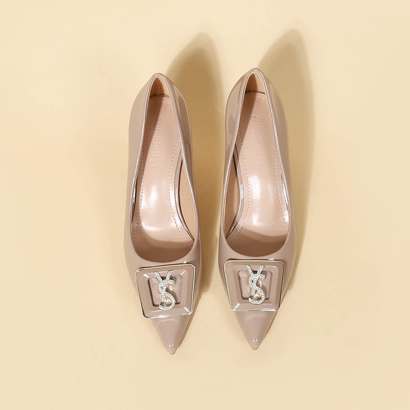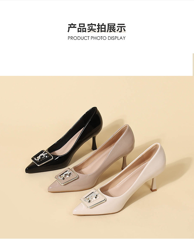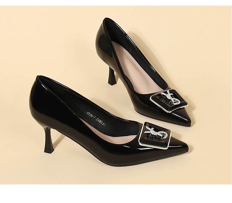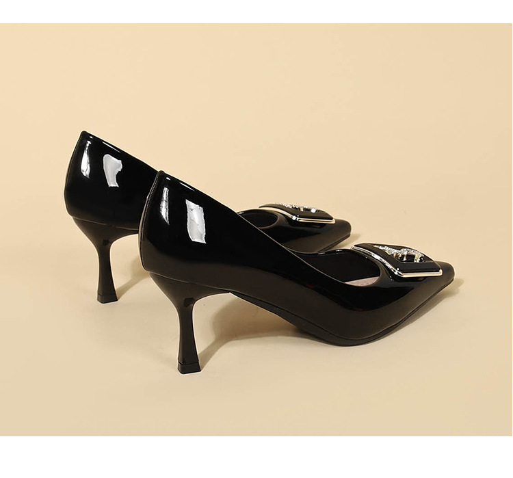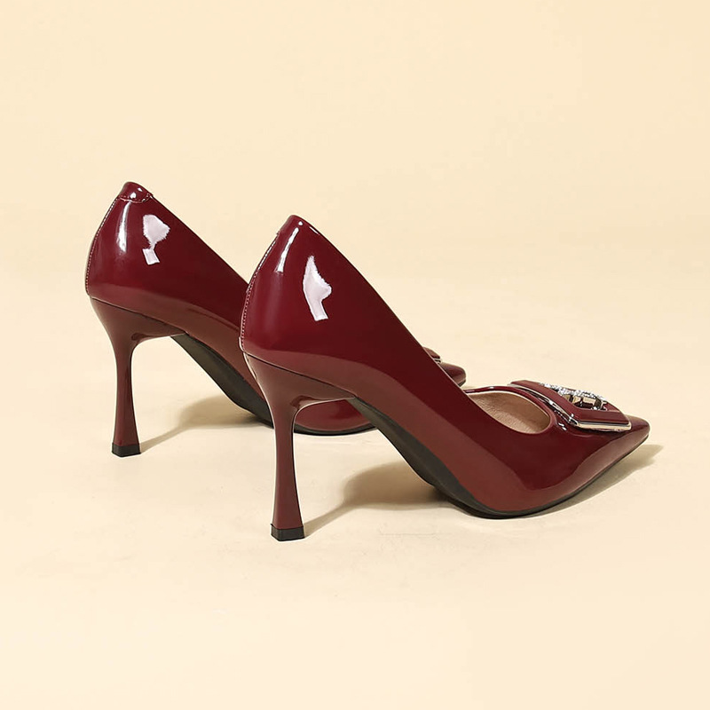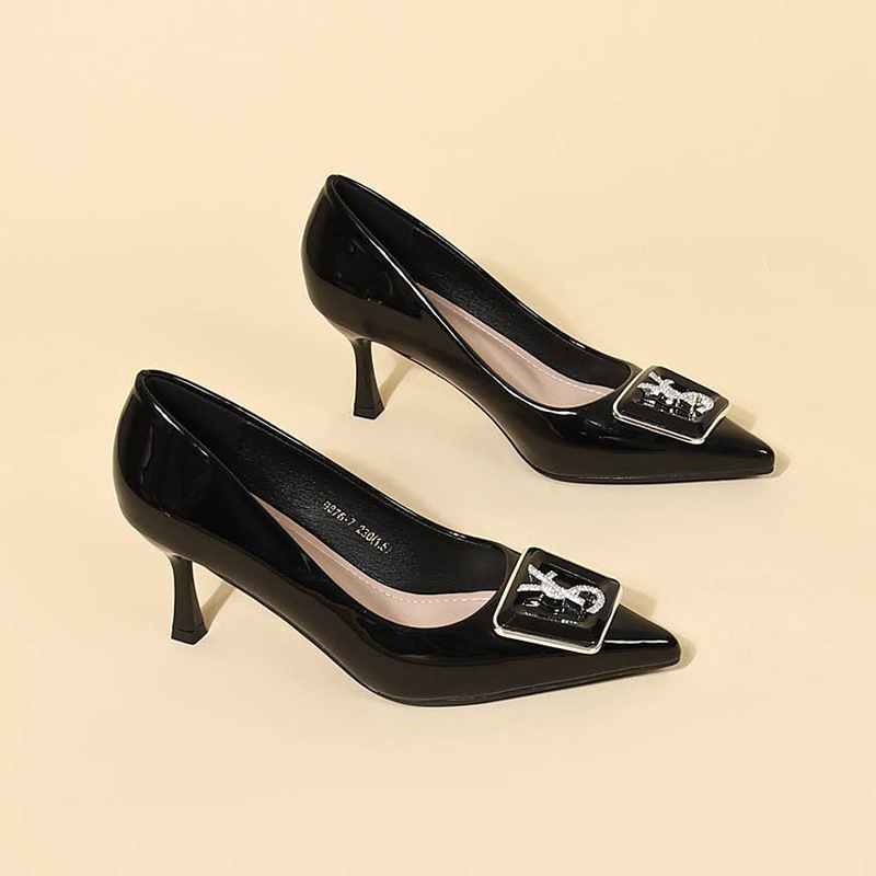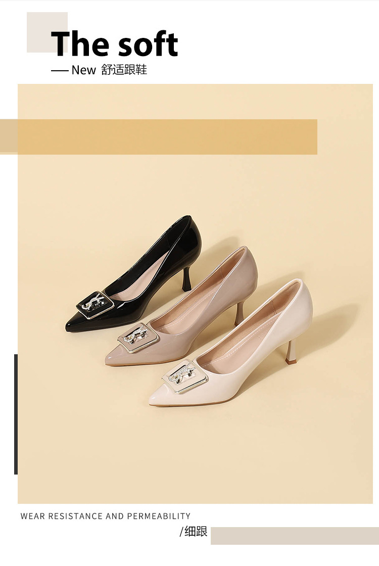 9cm 하이힐 여성용 스틸레토 힐 2025 봄과 가을 새로운 특허 가죽 포인팅 신발 전문 작업 신발 신발스토어 가기