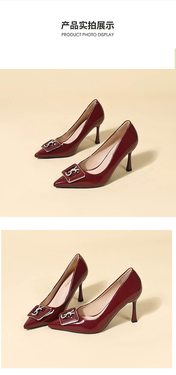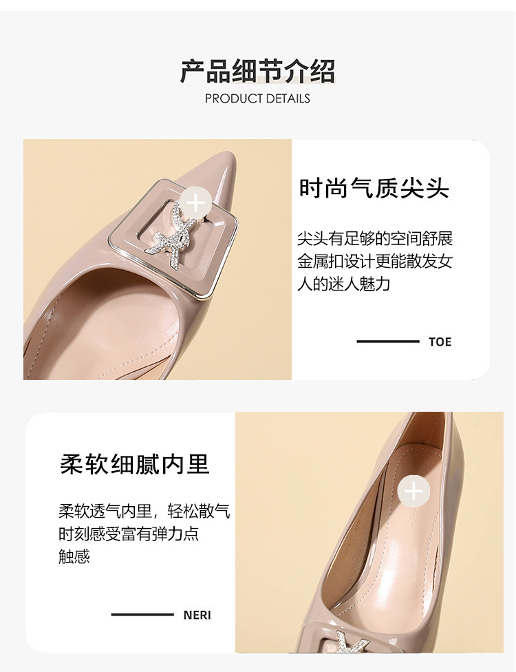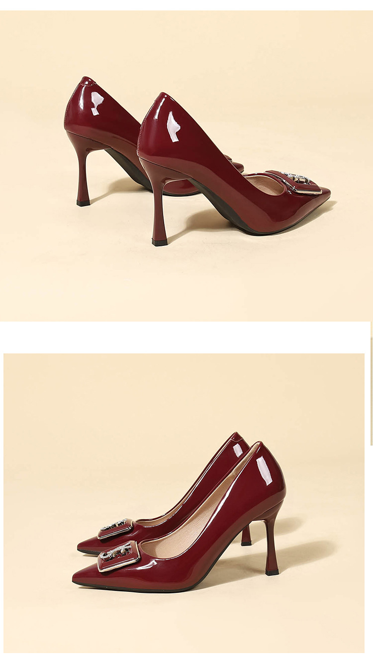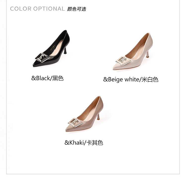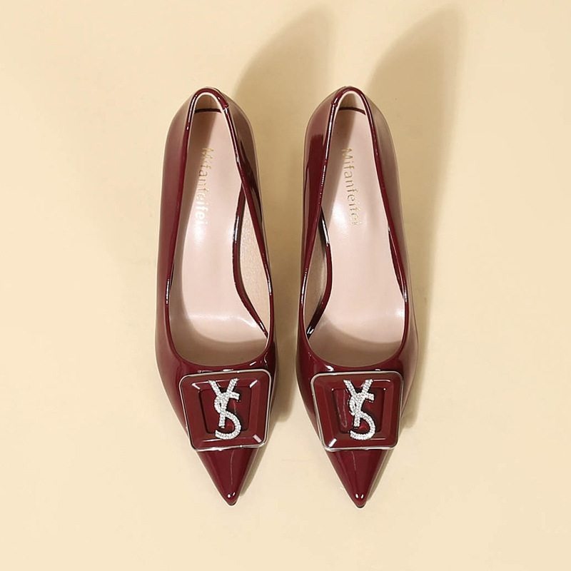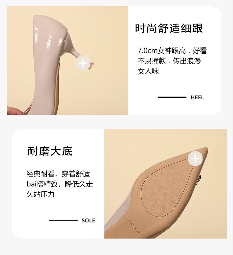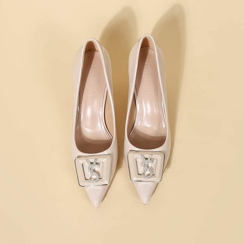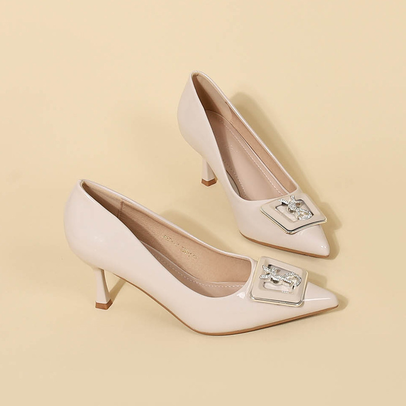 9cm 하이힐 여성용 스틸레토 힐 2025 봄과 가을 새로운 특허 가죽 포인팅 신발 전문 작업 신발 신발스토어 가기