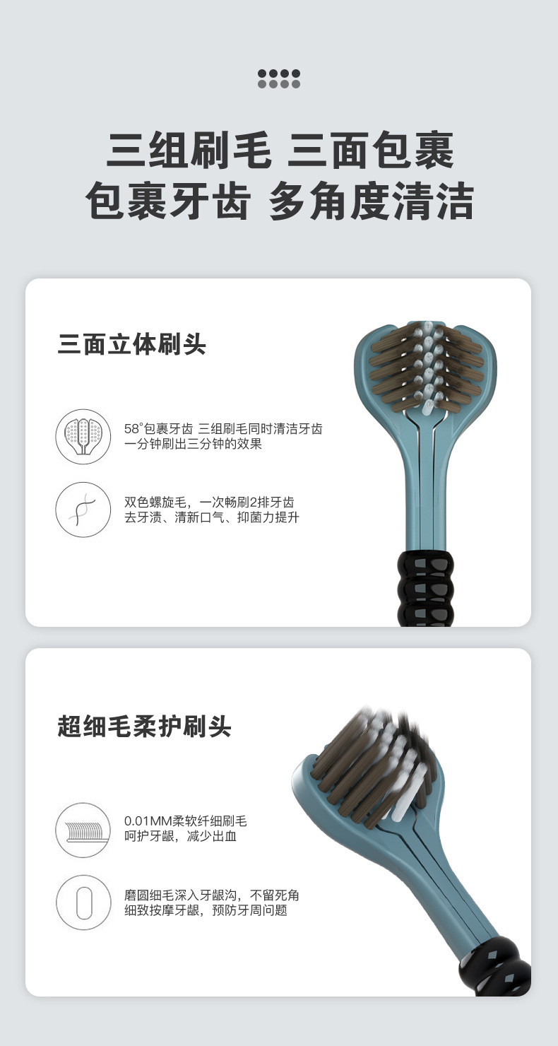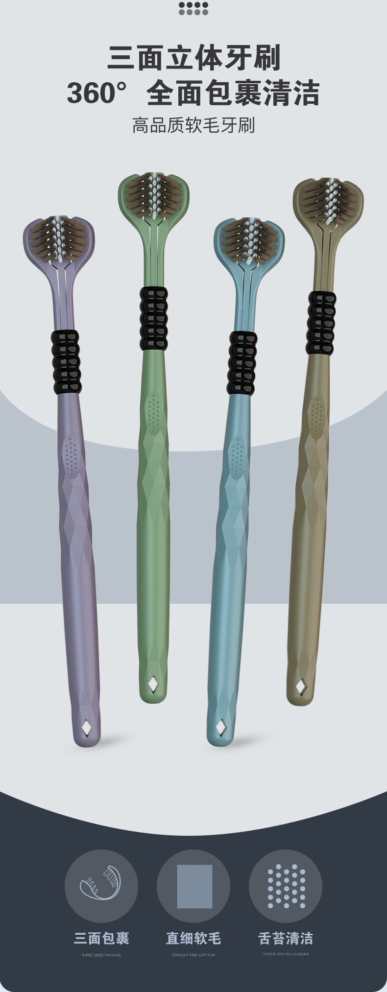 혀를 긁어내는 남녀공용 부드러운 모를 가진 성인용 삼면칫솔 3D 입체 어린이용 삼면칫솔 가정용 공장 도매스토어 가기