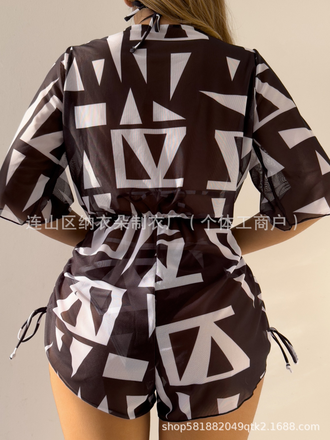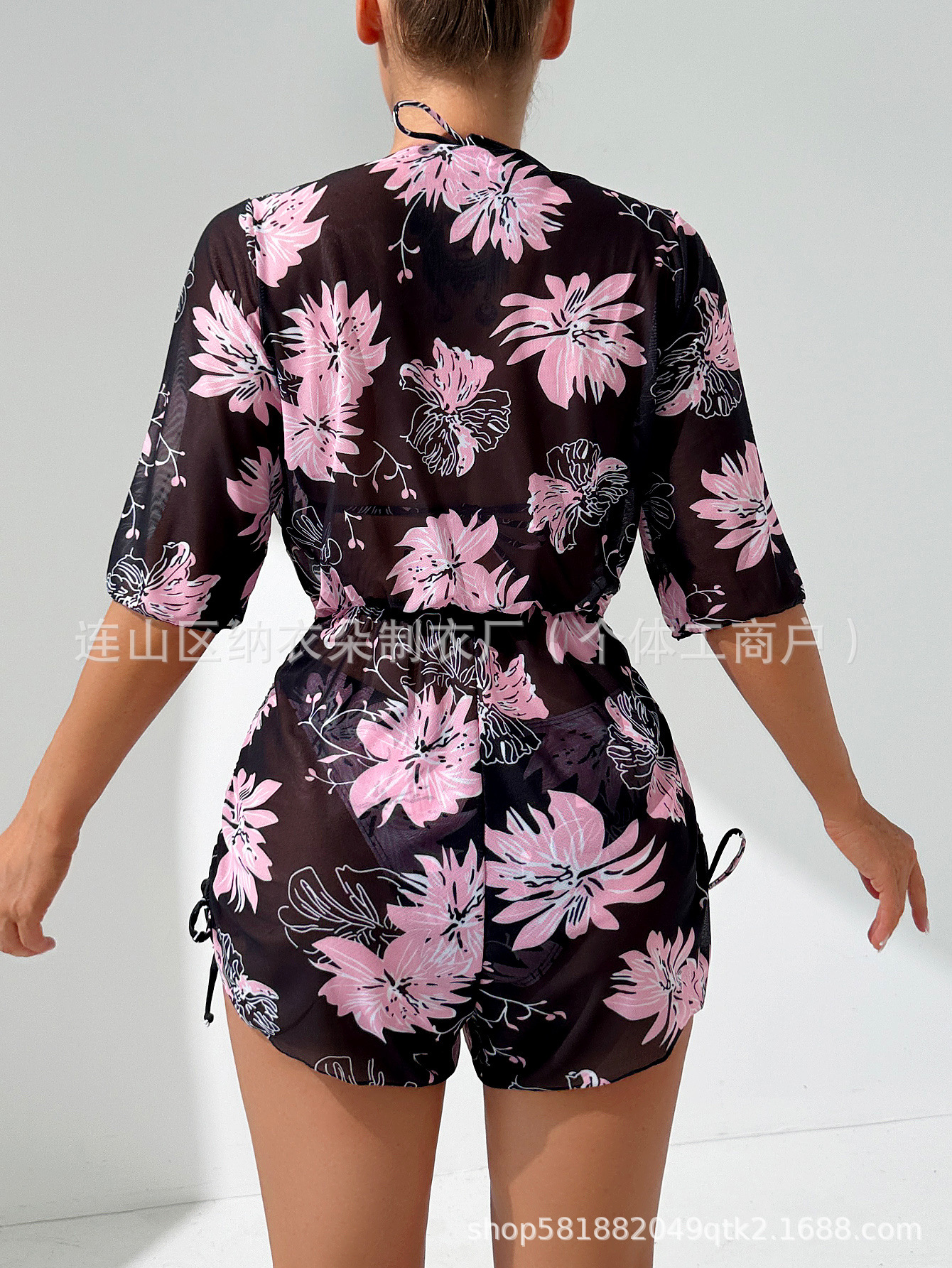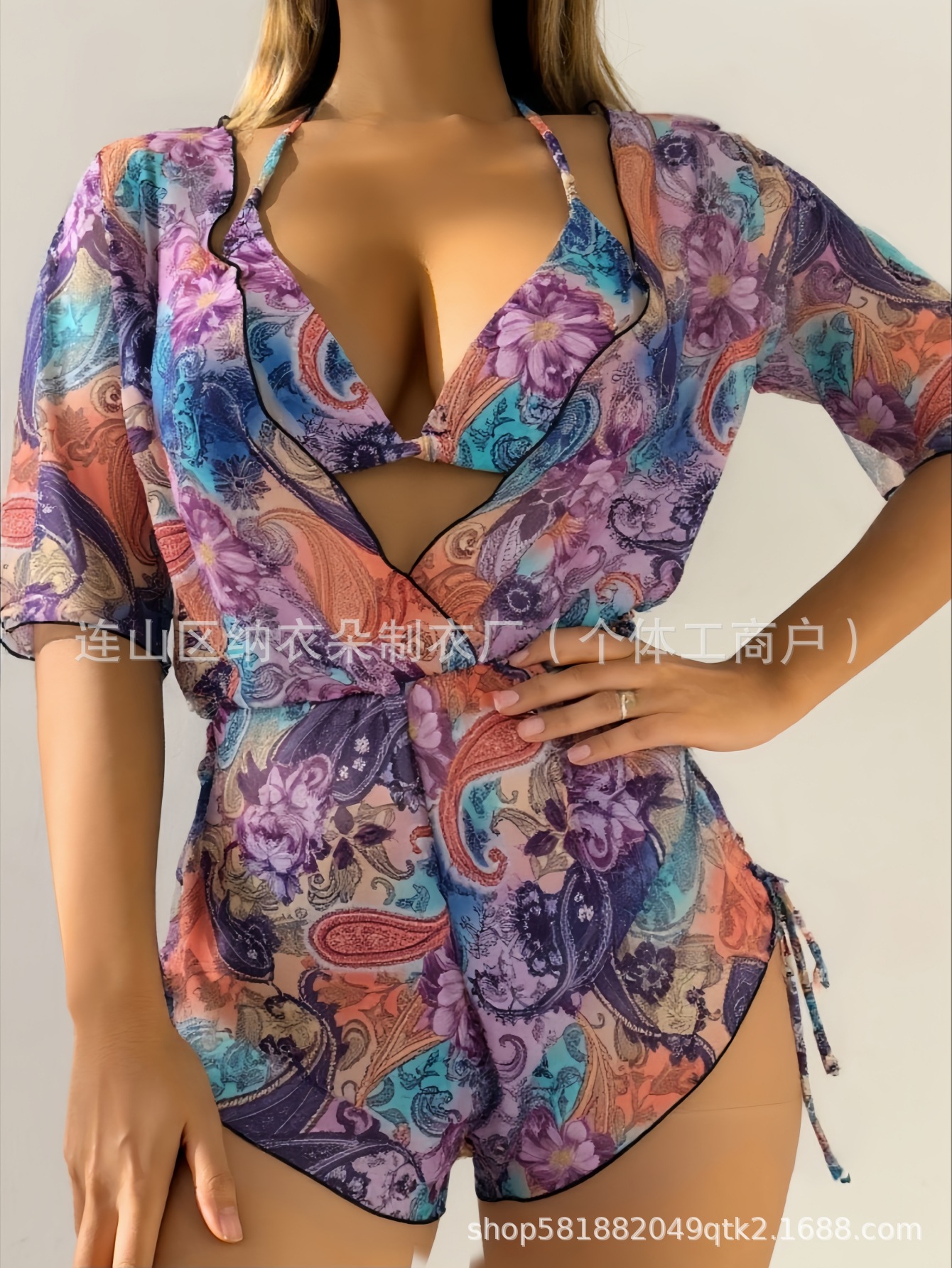수영복 해변 선 스크린 열대 식물 인쇄 블라우스 수영복 여성 유럽 및 미국 국경 3 종 목 비키니