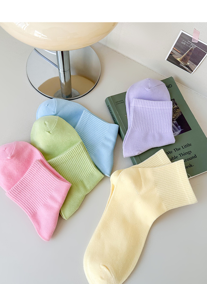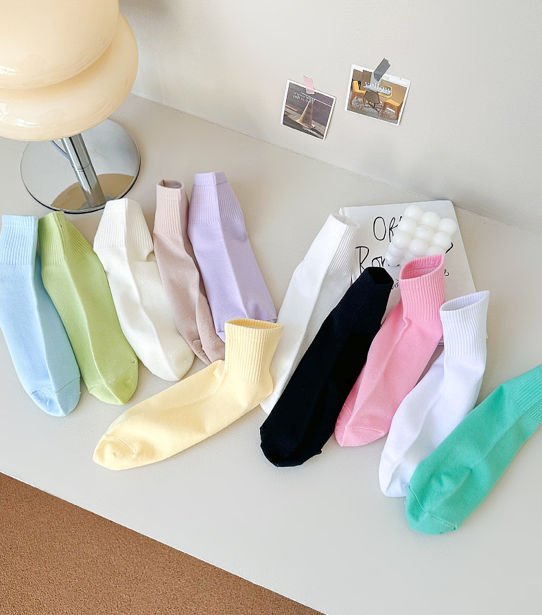 양말 소녀 단색 짧은 양말 스포츠 양말 봄과 여름 짧은 양말 Zhuji 양말 여성 양말 얇은 캔디 컬러 중간 튜브 도매