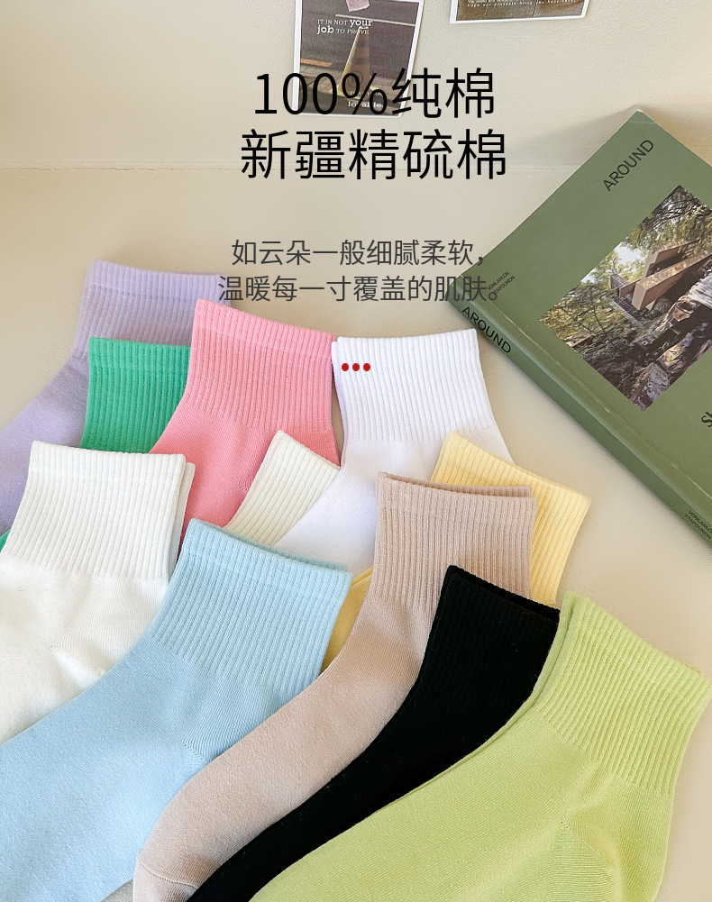양말 소녀 단색 짧은 양말 스포츠 양말 봄과 여름 짧은 양말 Zhuji 양말 여성 양말 얇은 캔디 컬러 중간 튜브 도매스토어 가기