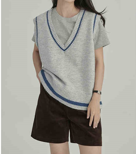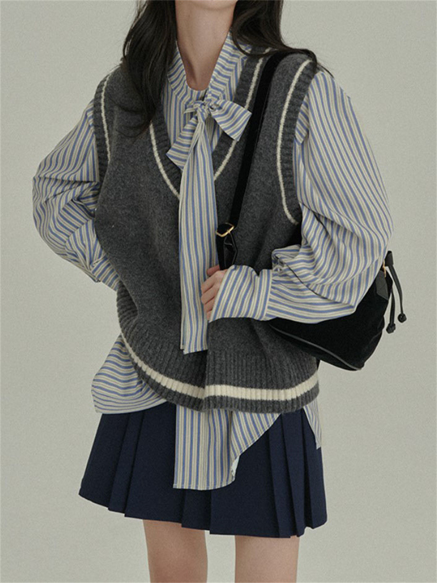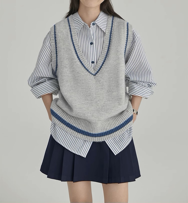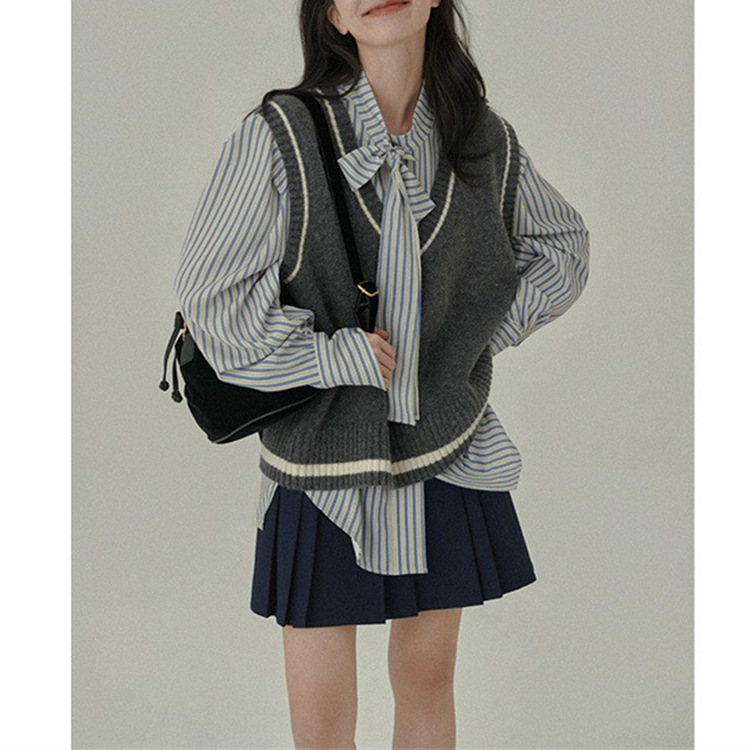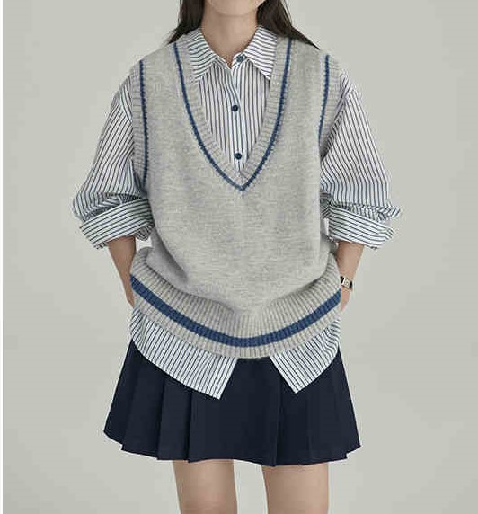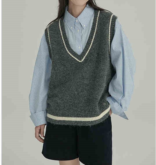 HAVERICE 레스토랑 칼리지 소녀의 멋진 예술적 레트로 긴 양모 블렌드 니트 조끼