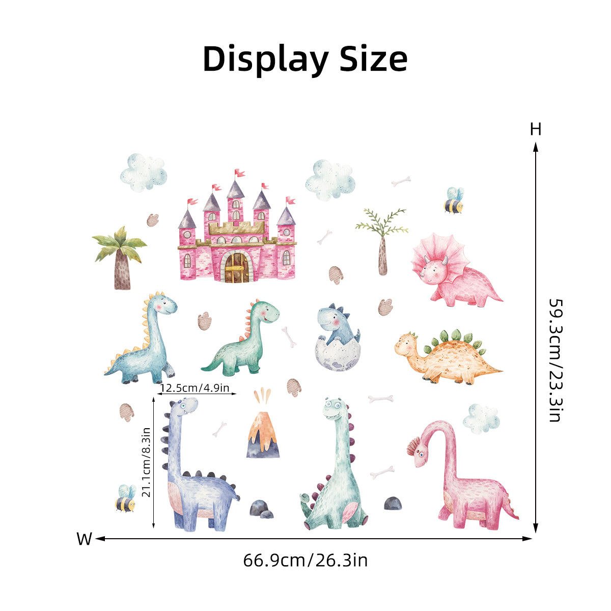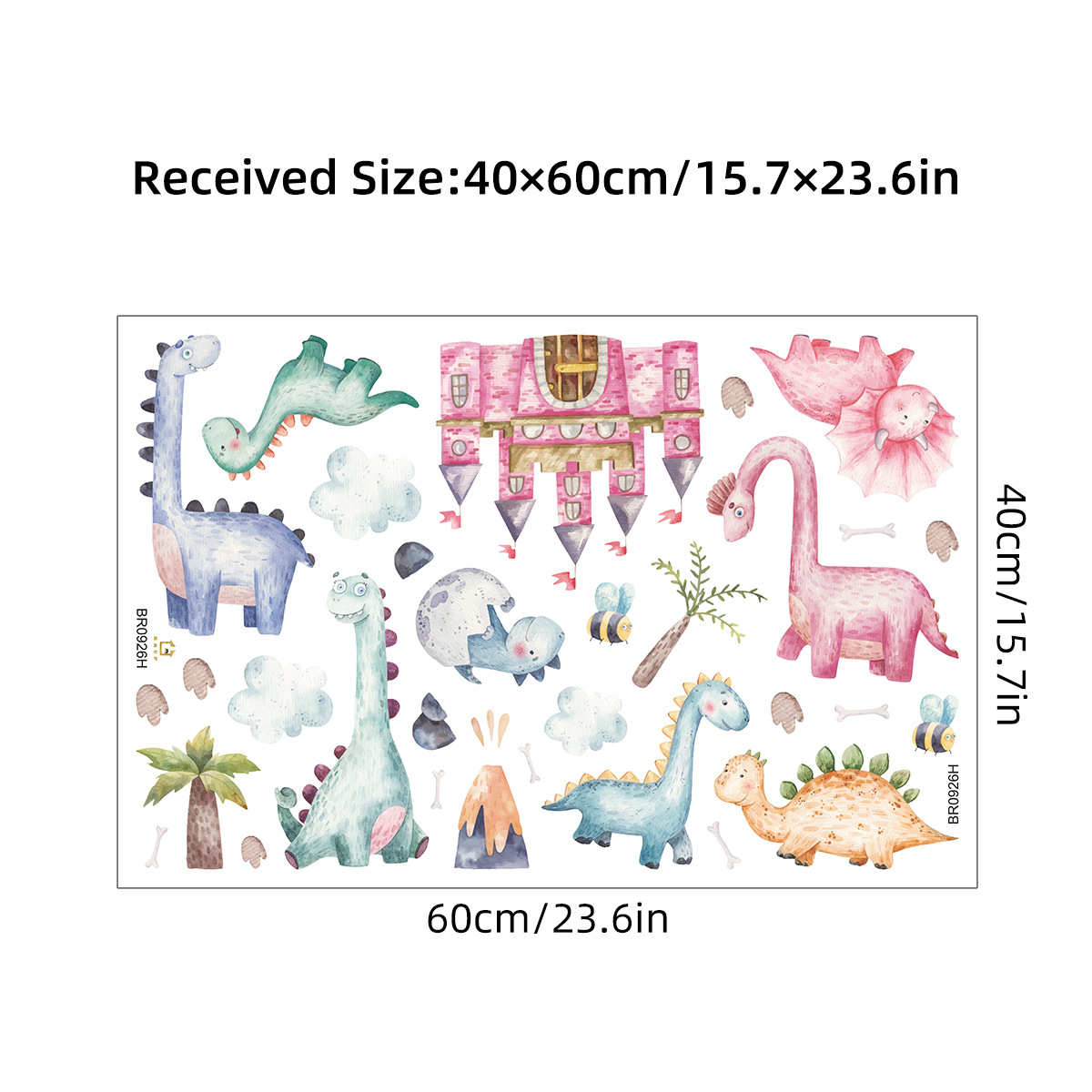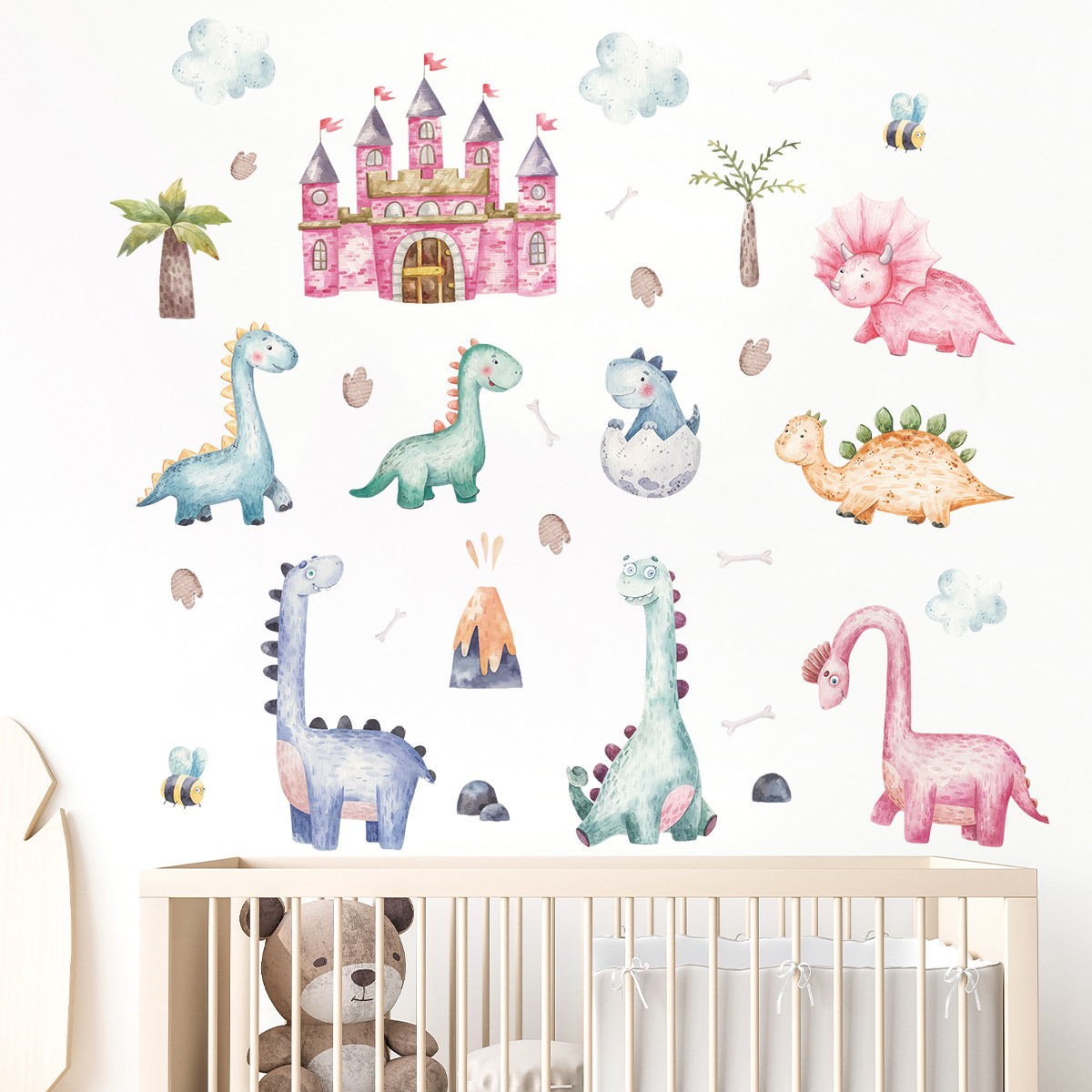 만화 핑크 성 귀여운 작은 공룡 자기 접착 벽 스티커 Ins 어린이 방 침실 장식 스티커 BR0926H스토어 가기