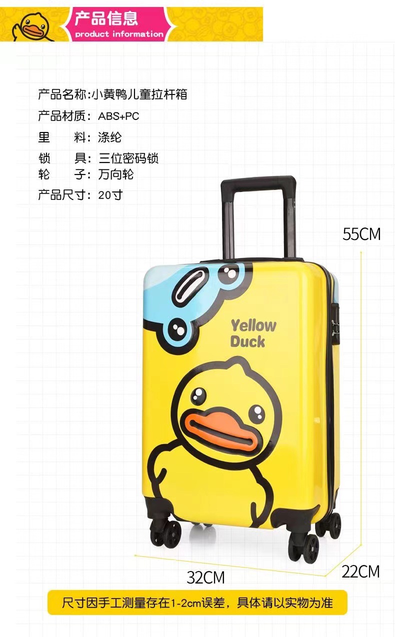 귀여운 노란 오리 어린이용 여행가방, 클래식 비밀번호 잠금장치, 캐주얼 여행 선물용 가방, 트롤리 박스, 부드러운 회전 바퀴스토어 가기