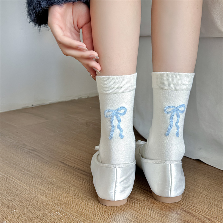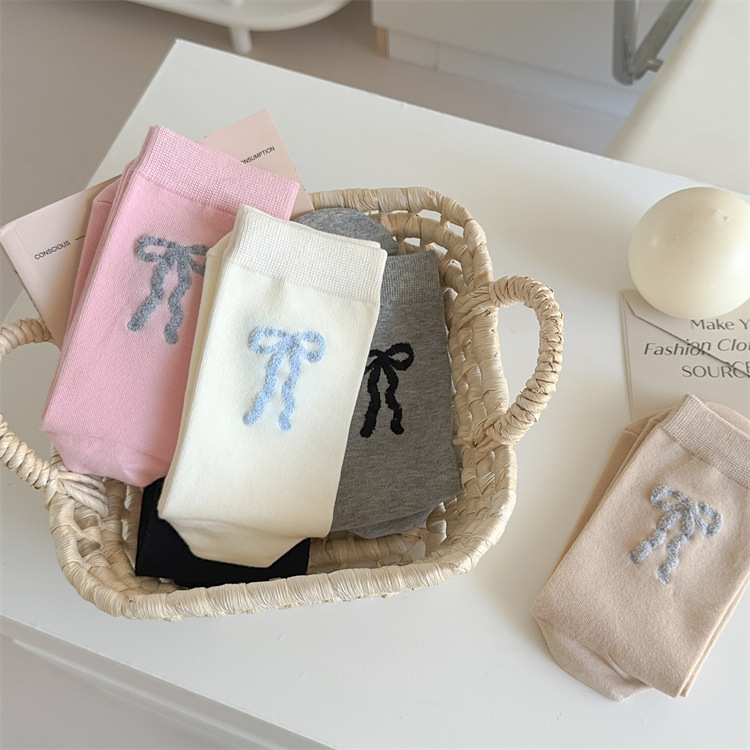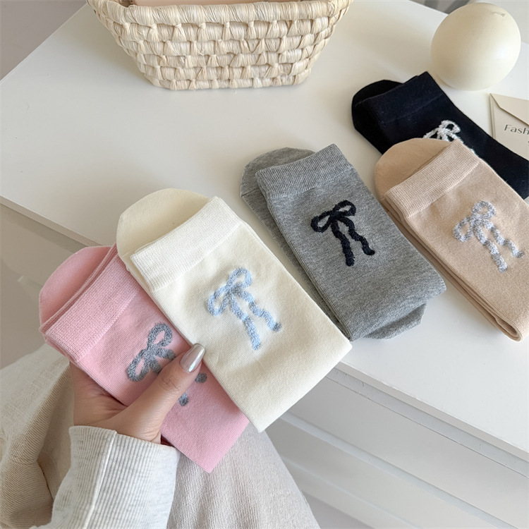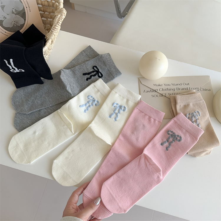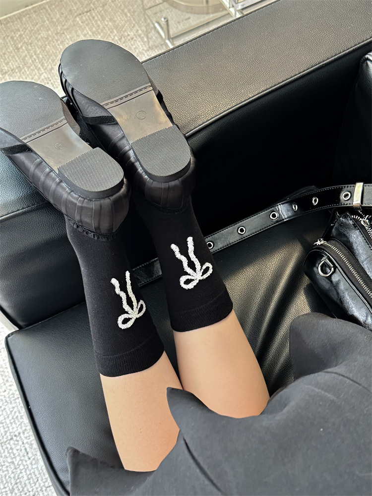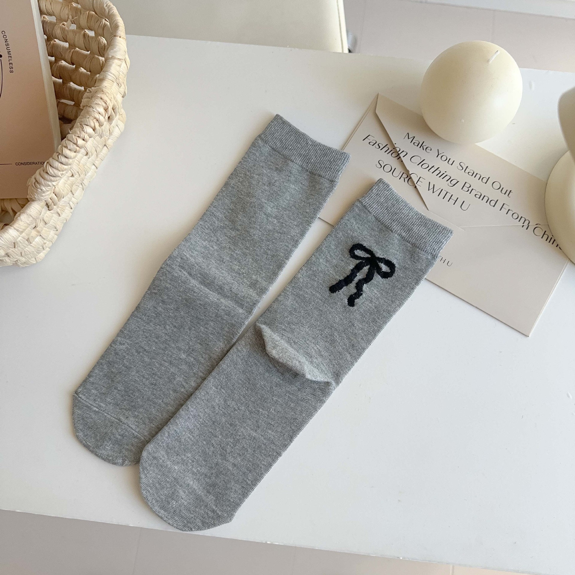 잃어버릴 수 없는 양말, 여성용 리본매듭 종아리 양말, 트렌디한 여름 그레이 발레 스타일 봄, 가을 스타킹스토어 가기