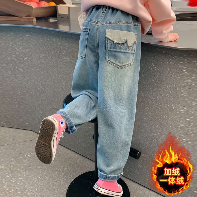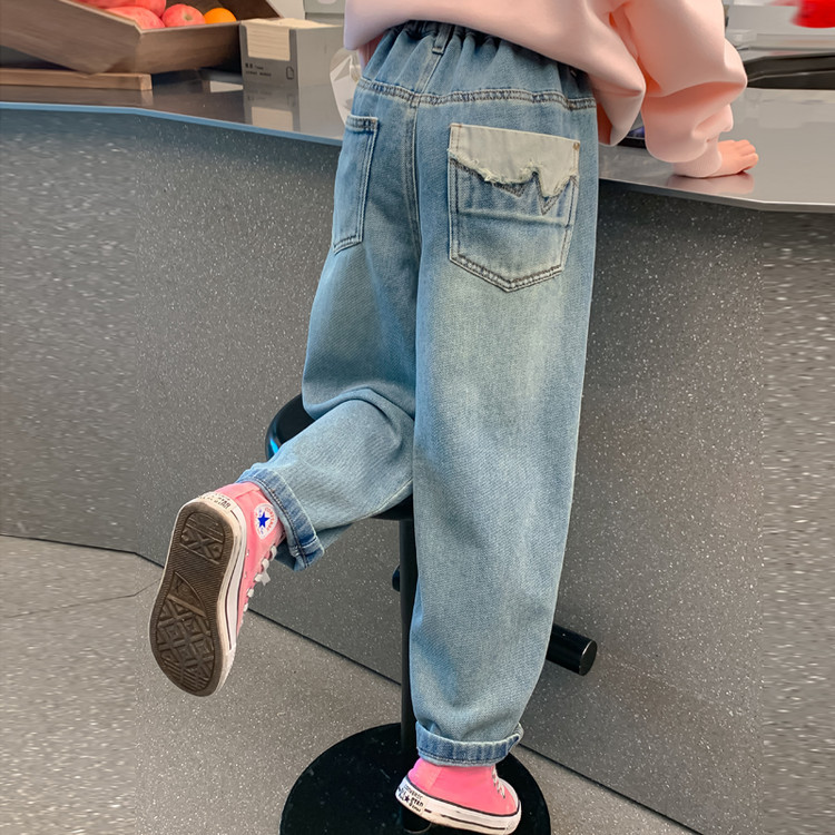 여아 봄 데님 팬츠 2025 신상 아동용 세련된 한국 스타일 패셔너블한 여아 봄 가을 바지 봄 캐주얼 팬츠