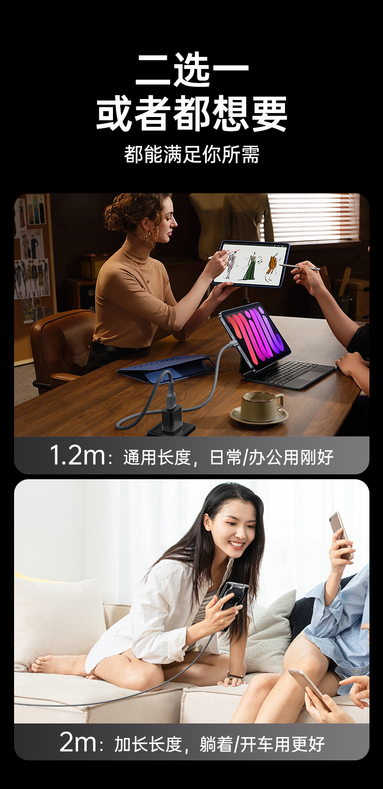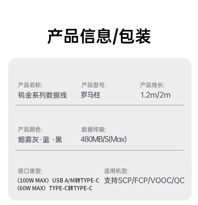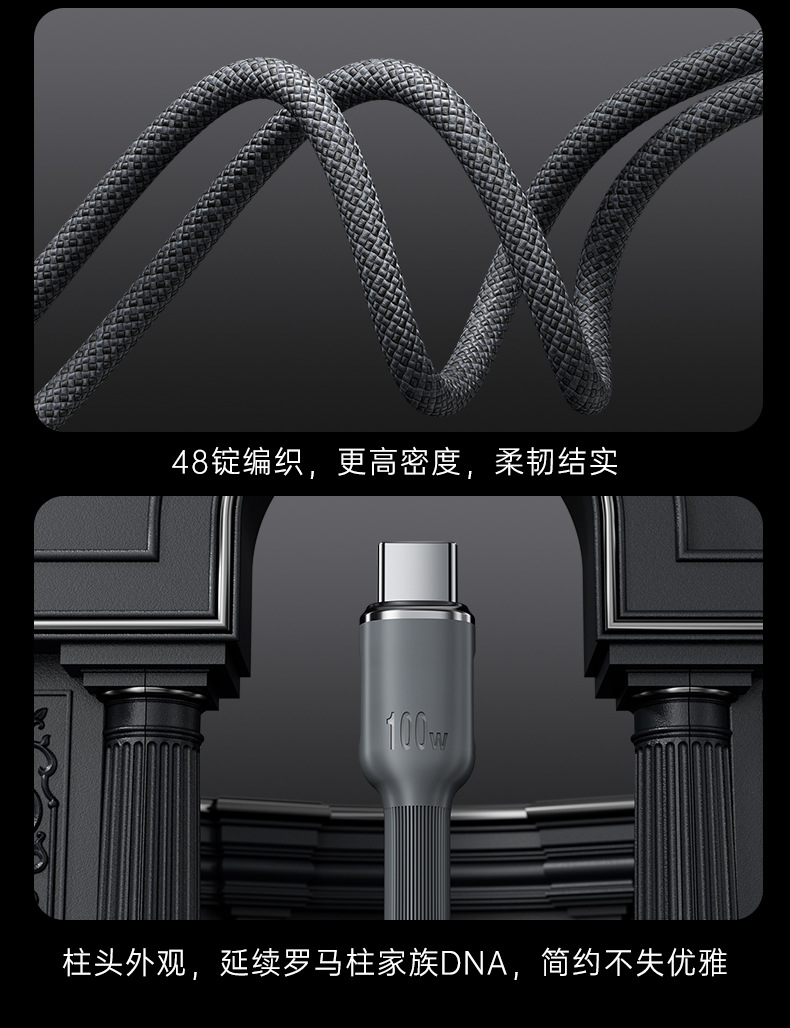 로마 컬럼 100w 초고속 충전 데이터 케이블 USB 차량용 듀얼 타입C 브레이드 케이블 애플 화웨이 안드로이드 호환