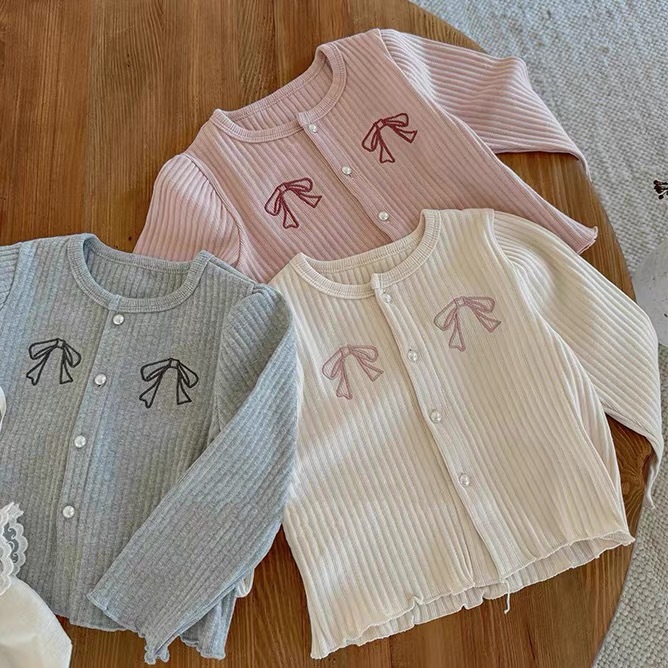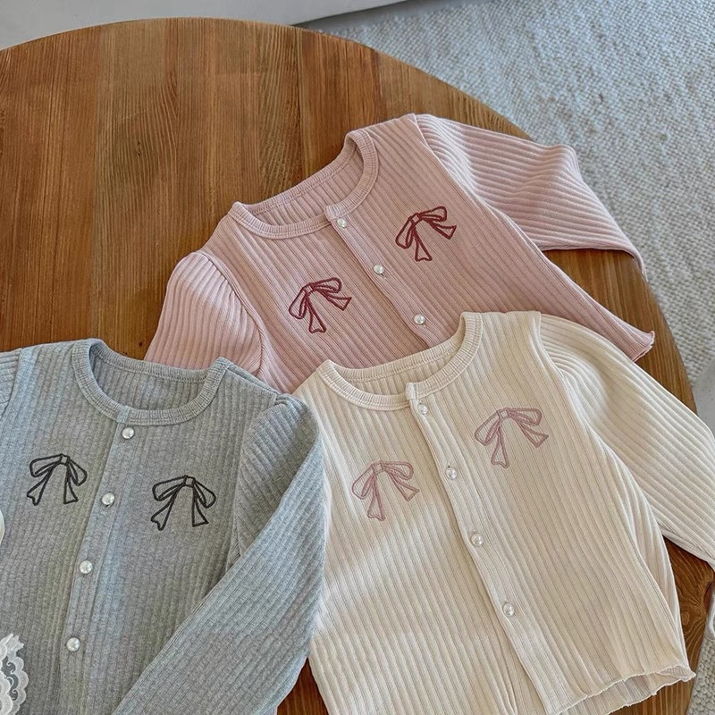 여아용 2025년 신상 가을 니트 가디건, 세련된 아기 프린트 무지 다용도 긴팔 코트 상의스토어 가기
