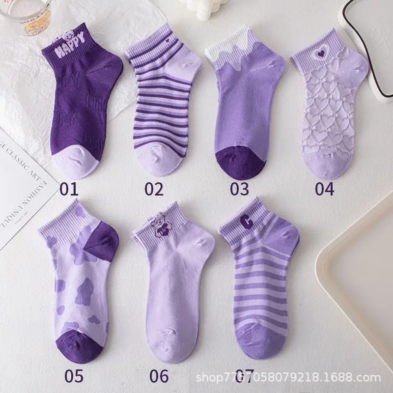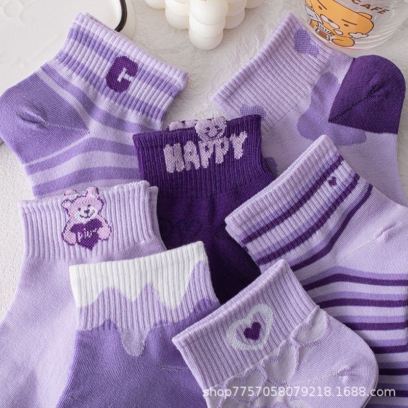 보라색 양말 여성의 봄과 여름 얕은 입이 트렌디 한 귀여운 3 차원 곰 일본 스타일 얇은 올 매치 통기성 양말 짧은 양말스토어 가기