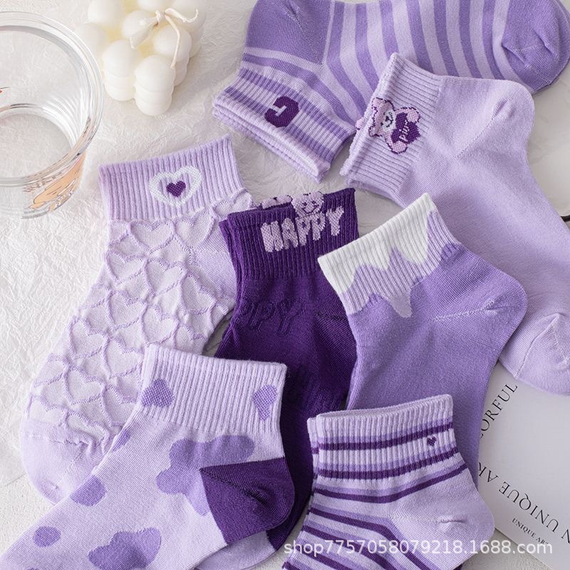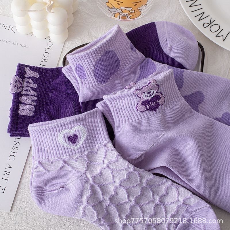 보라색 양말 여성의 봄과 여름 얕은 입이 트렌디 한 귀여운 3 차원 곰 일본 스타일 얇은 올 매치 통기성 양말 짧은 양말