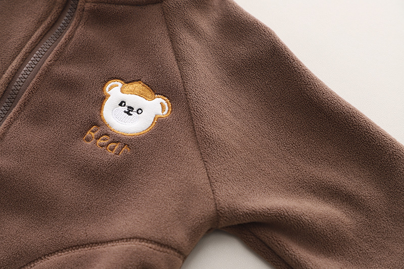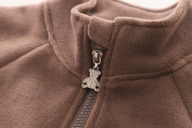 2024 가을과 겨울 한국 아동복 기모 투피스 곰 지퍼 가을 긴소매 남녀 세트 세대 헤어