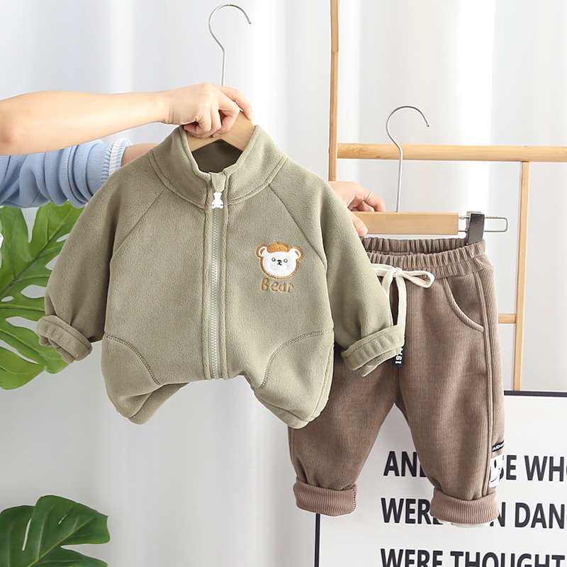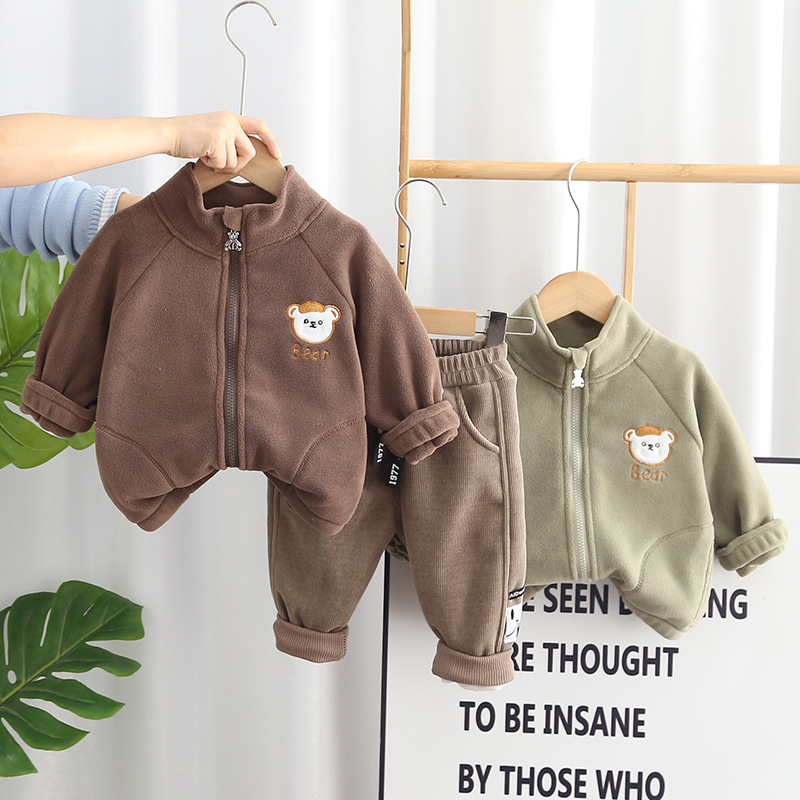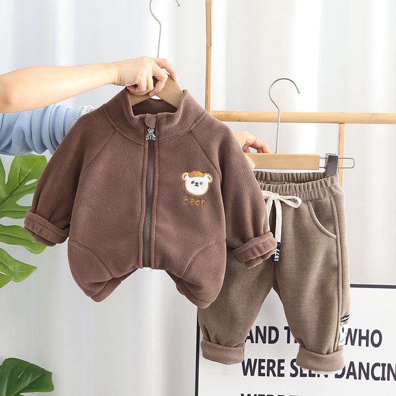 2024 가을과 겨울 한국 아동복 기모 투피스 곰 지퍼 가을 긴소매 남녀 세트 세대 헤어스토어 가기