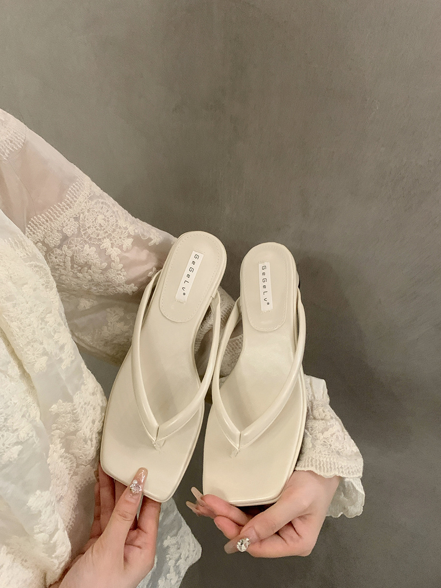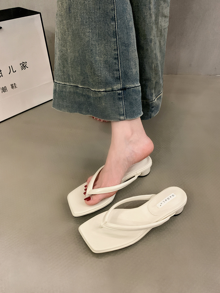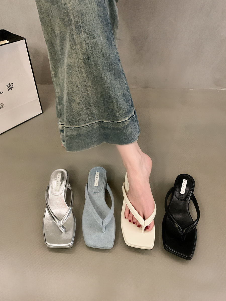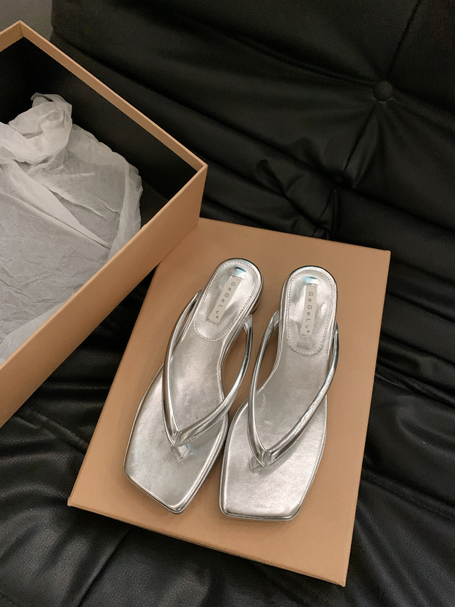 두꺼운 힐 실버 플립 플롭 여성 여름 아우터웨어 2024 새로운 유행 프랑스 스타일 작은 샌들 플립 플롭스토어 가기